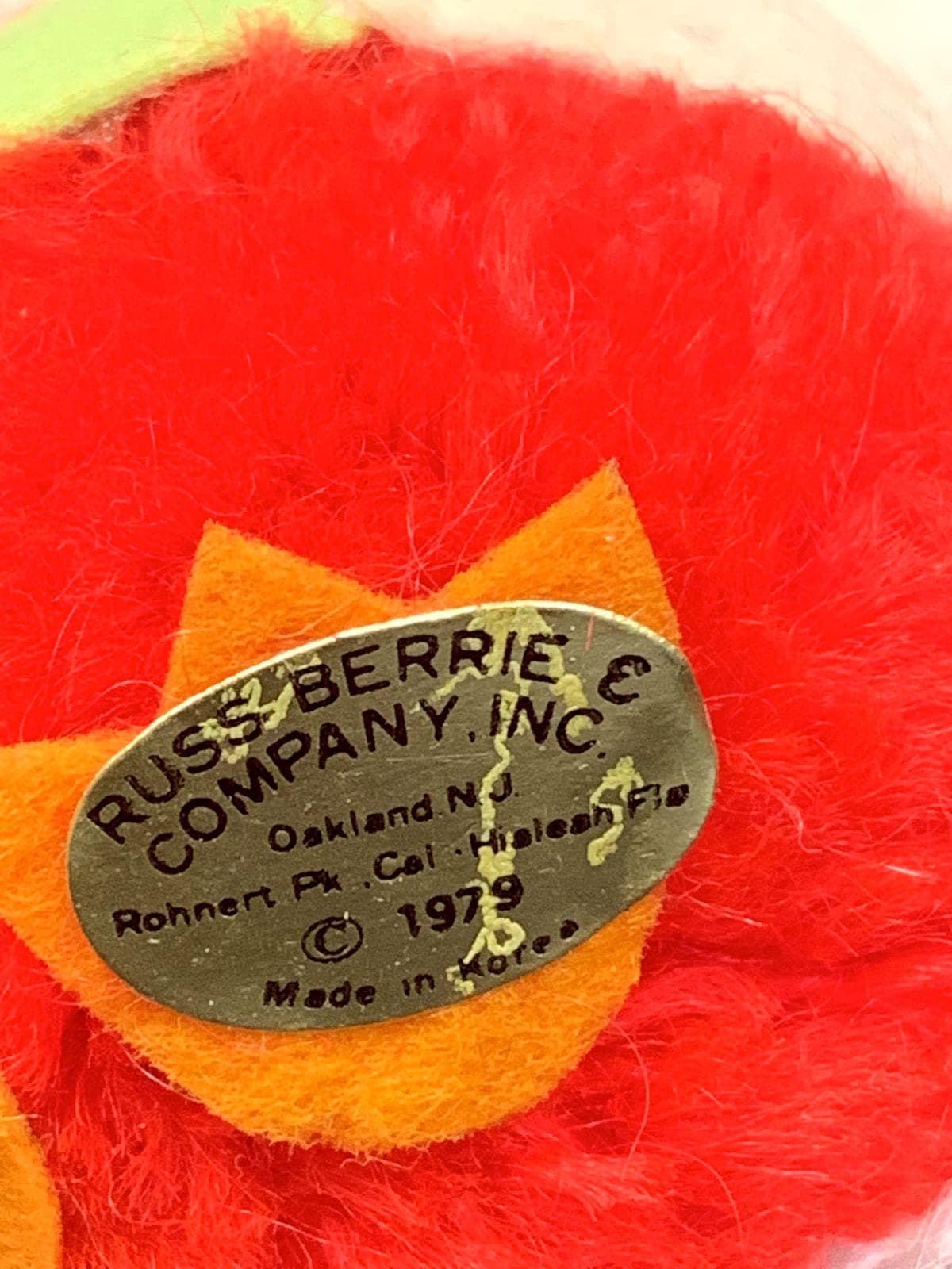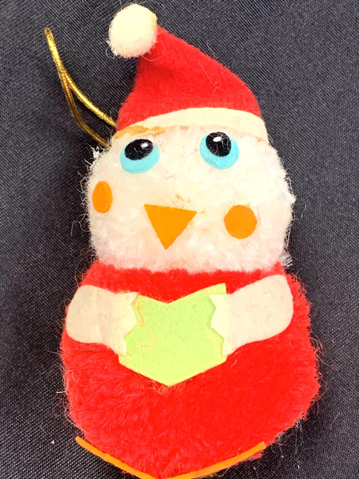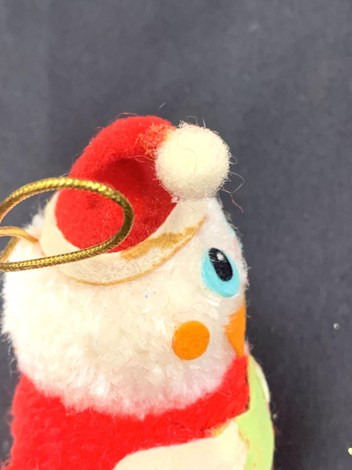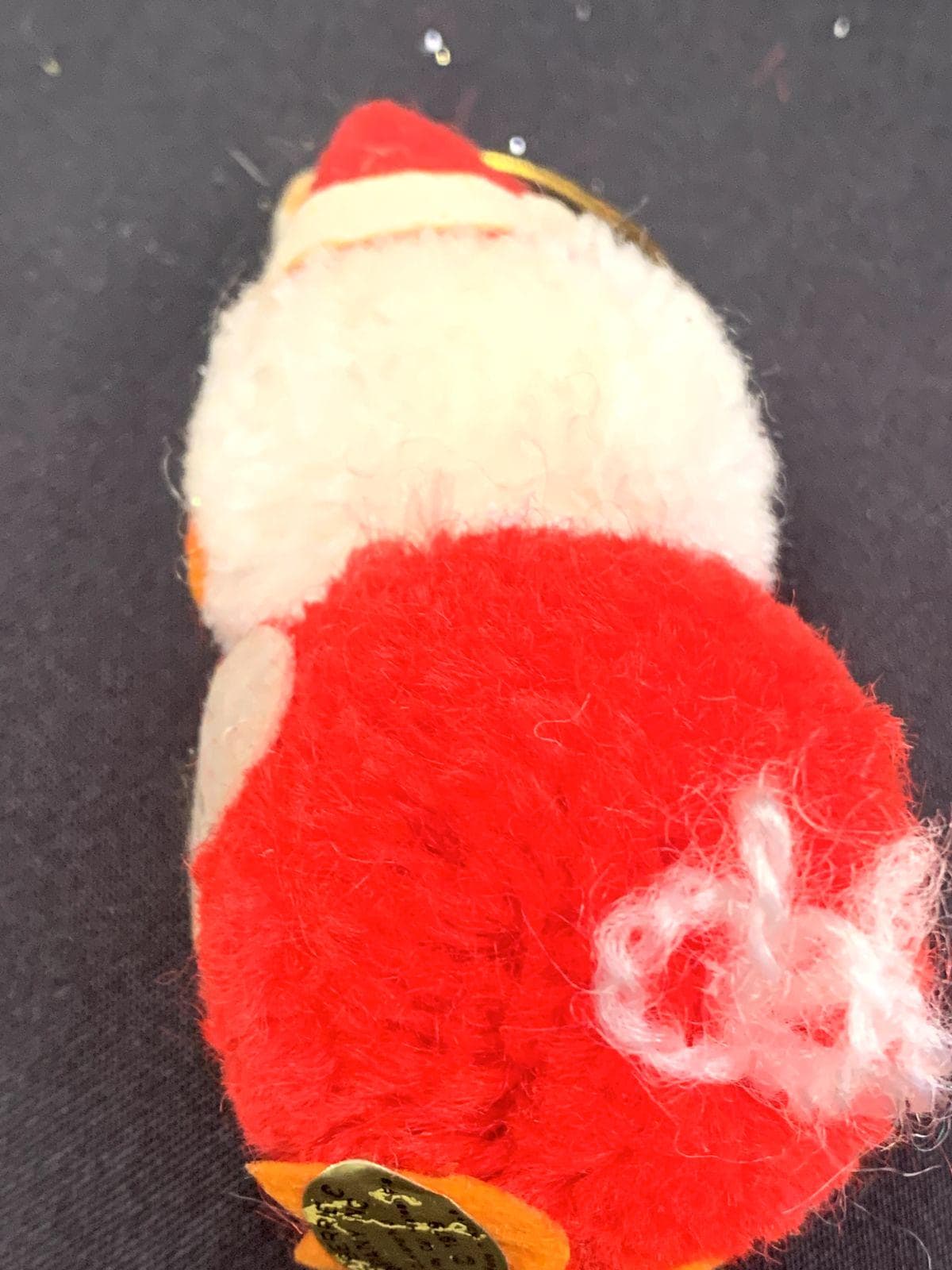 Vintage Russ and Berrie Whimsical Plus Pom Pom Bird Wearing a Santa Hit Christmas Tree Ornament From 1979