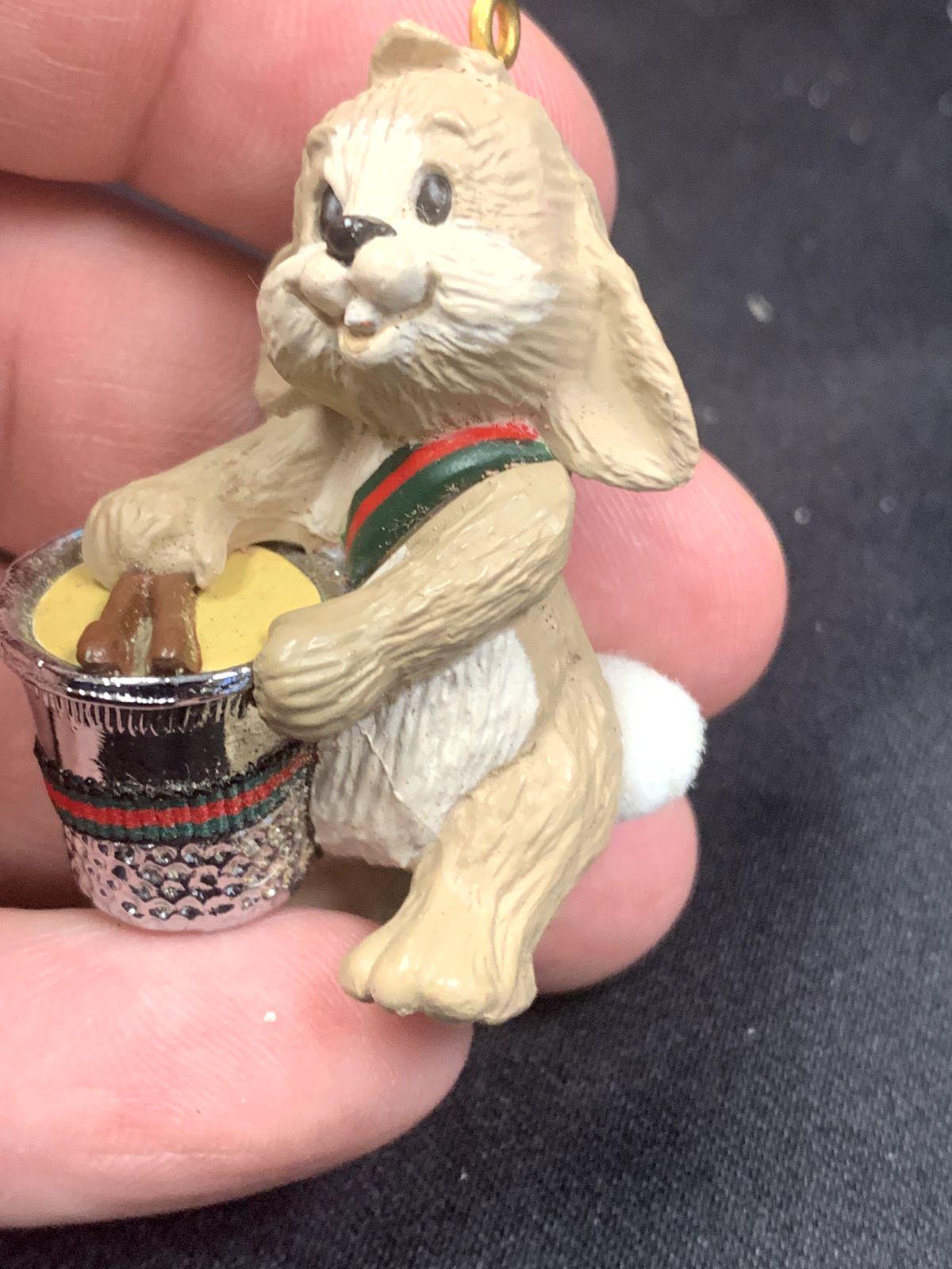 Vintage Hallmark Thimble Keepsake Christmas Ornament Drummer Bunny Rabbit #10 In Series