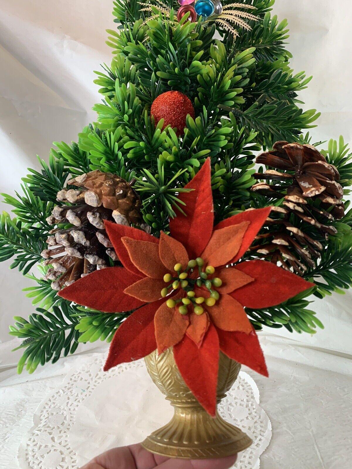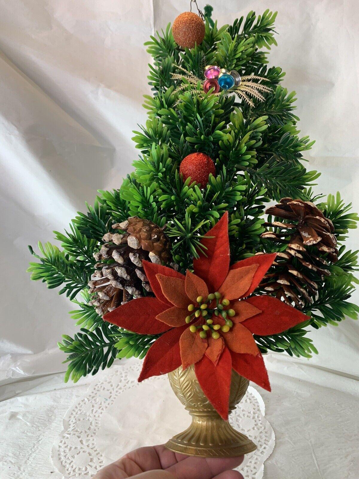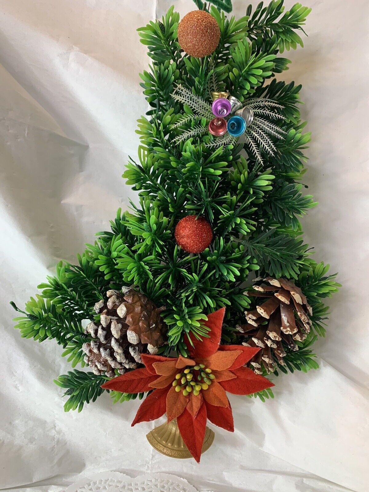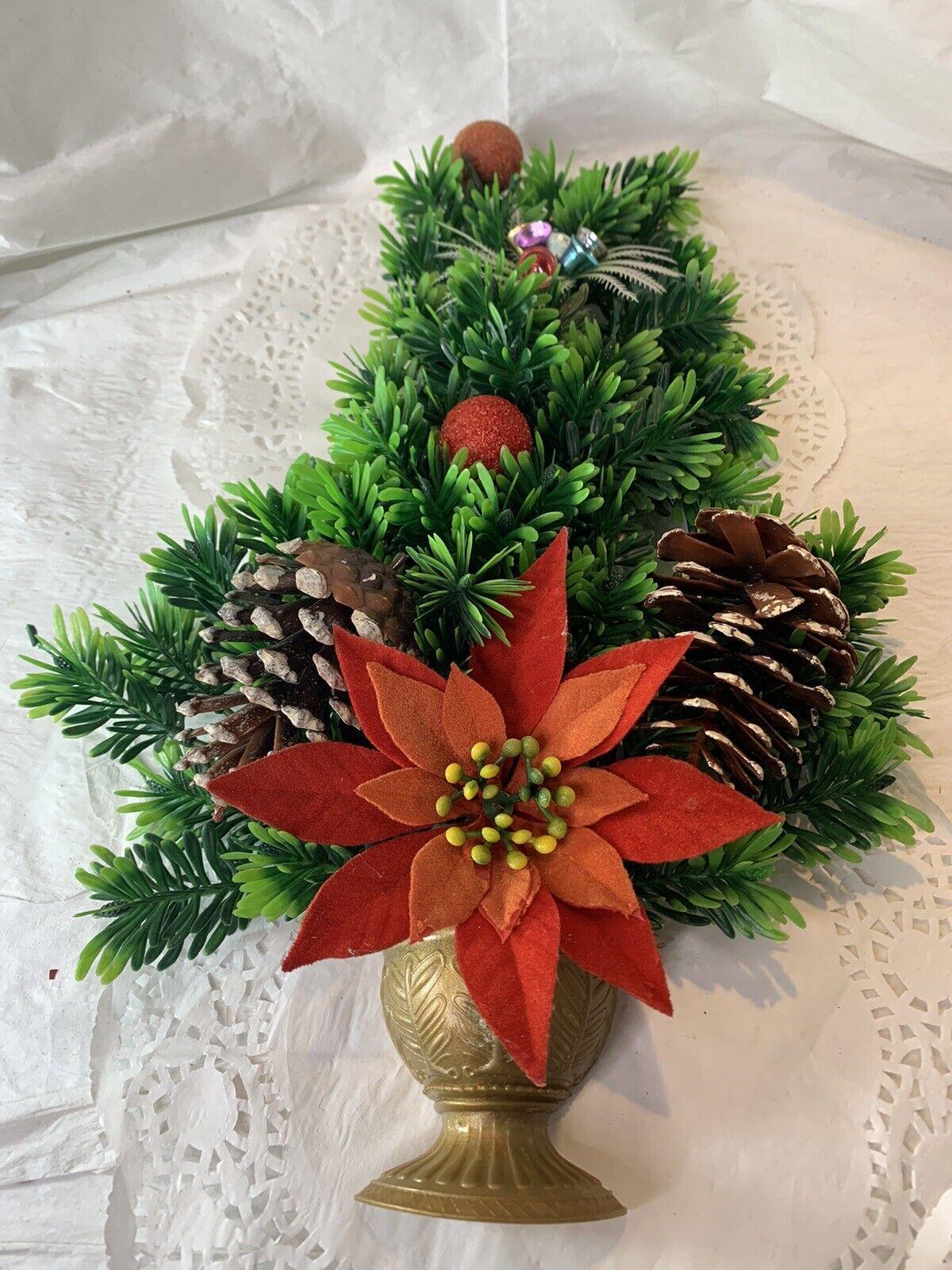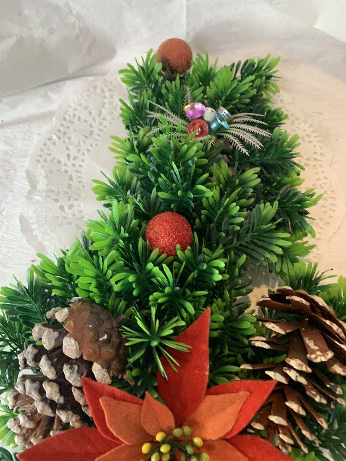 Vintage Handmade Christmas Greenery Wall or Door Wreath Holiday Decor With Pinecones and Poinsettia Flower 18 Inches Tall