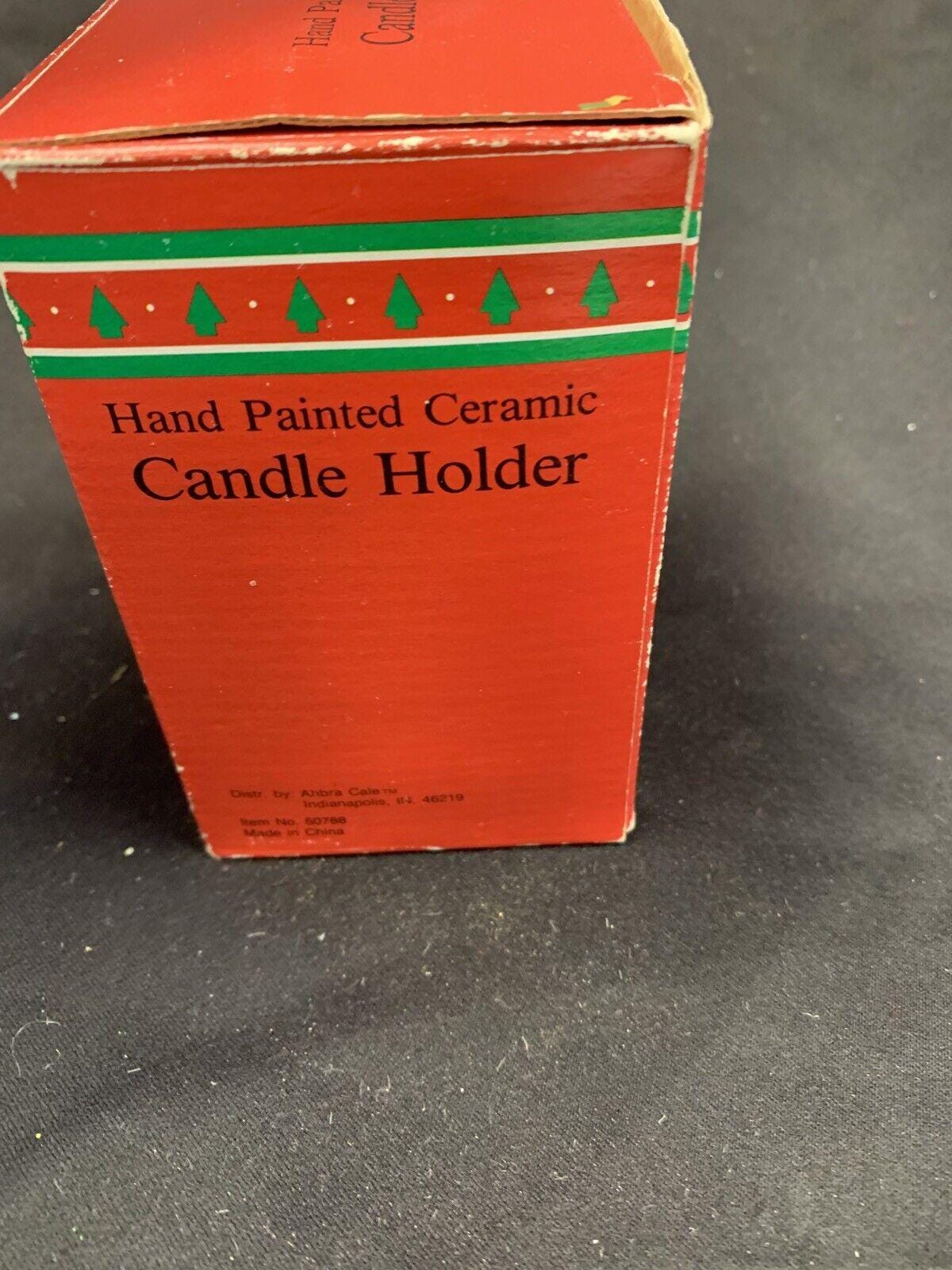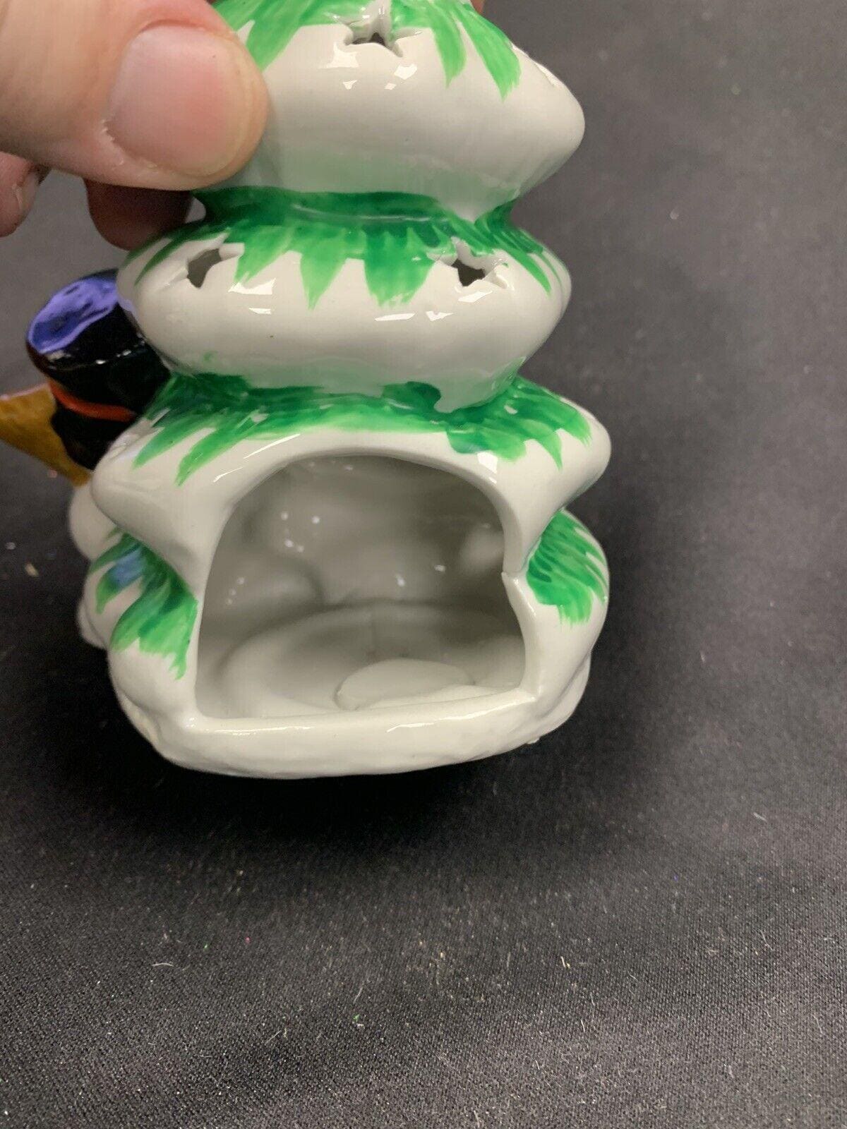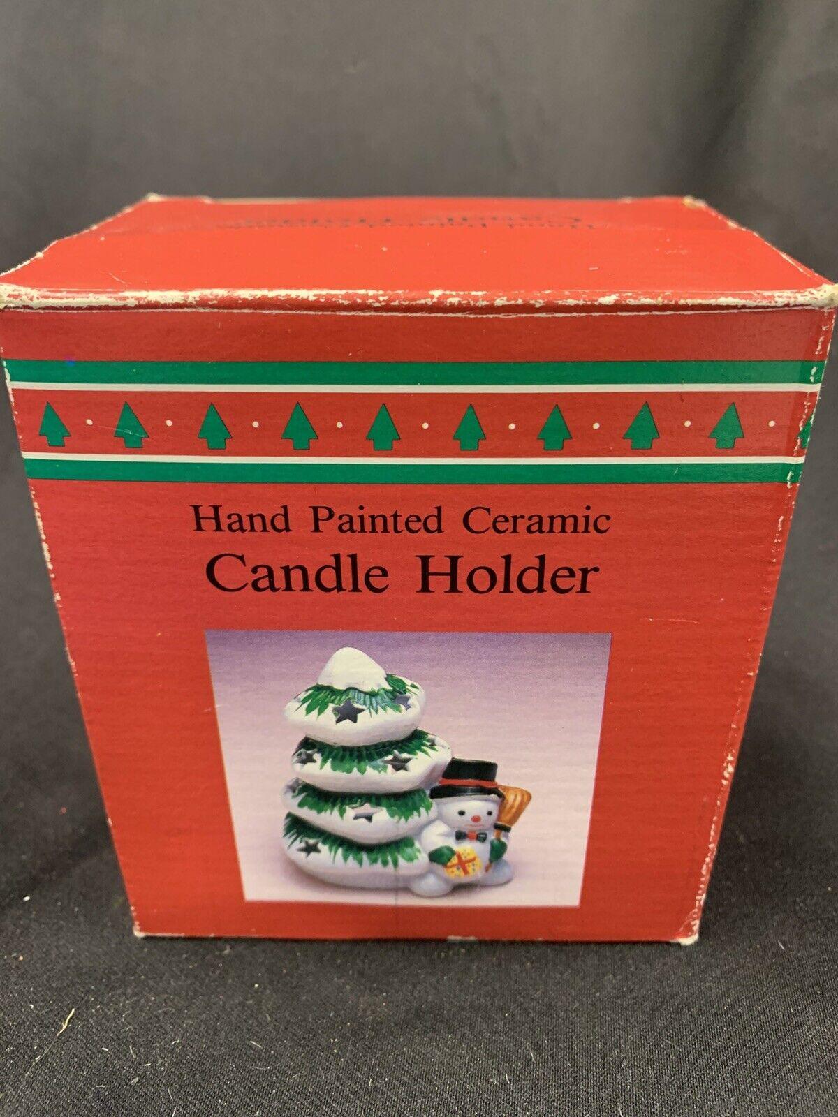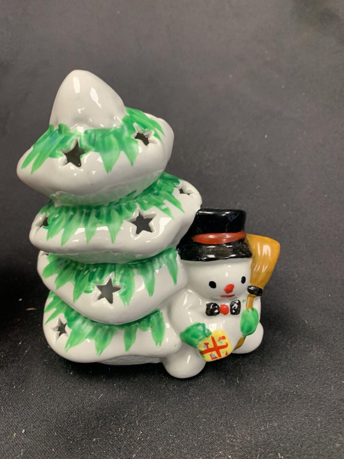 Vintage Hand Painted Ceramic Snowman Christmas Tree Tea Light Candleholder In Original Box