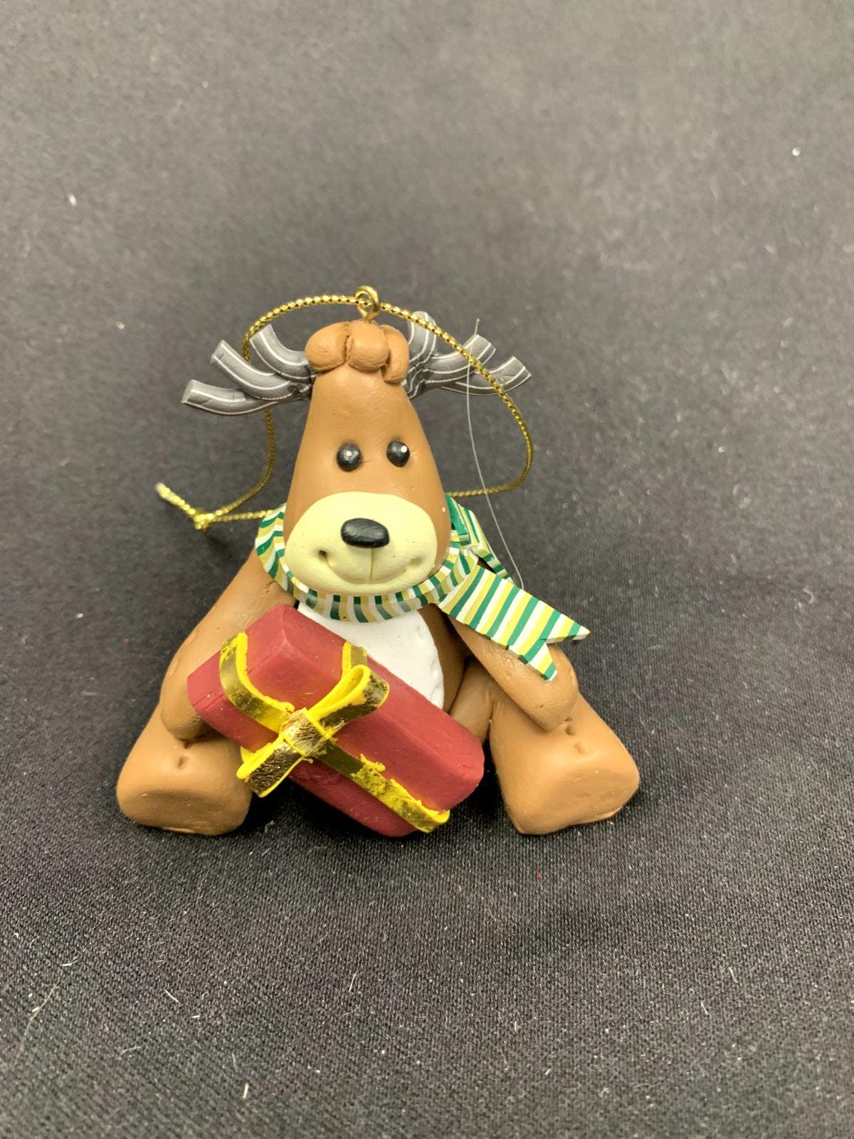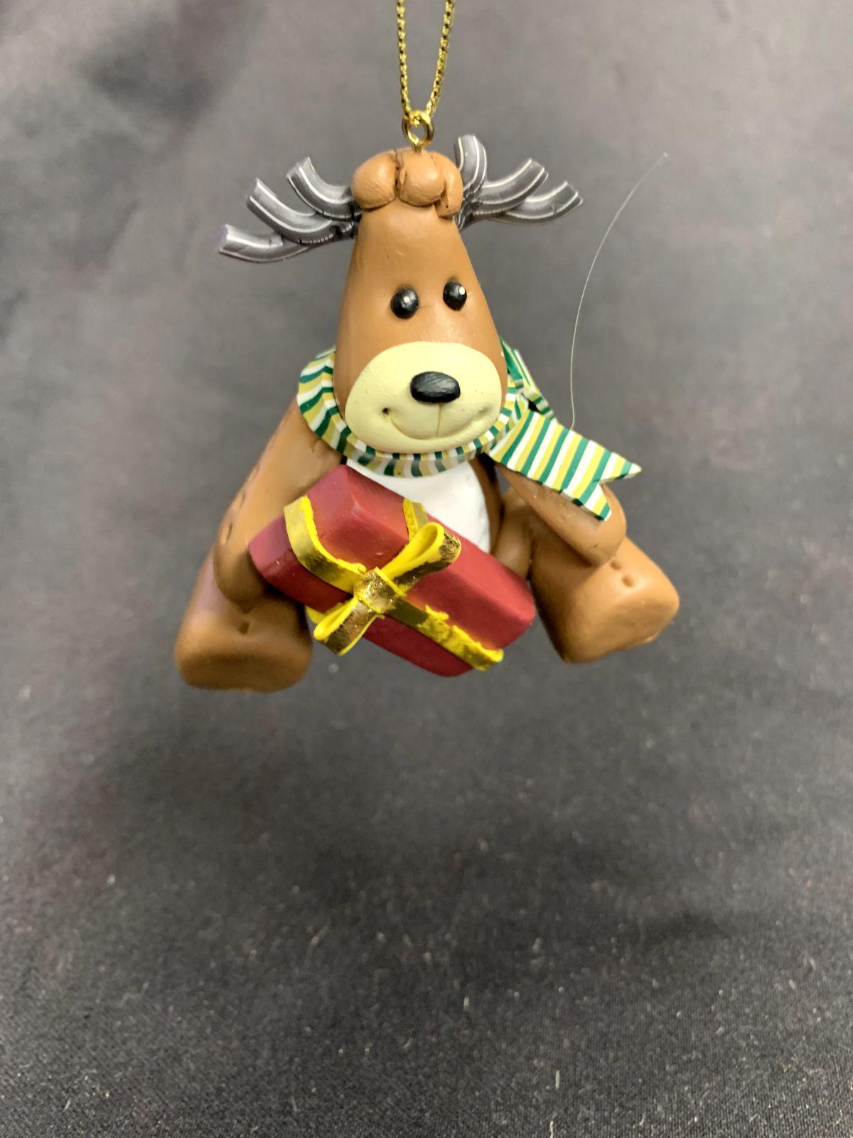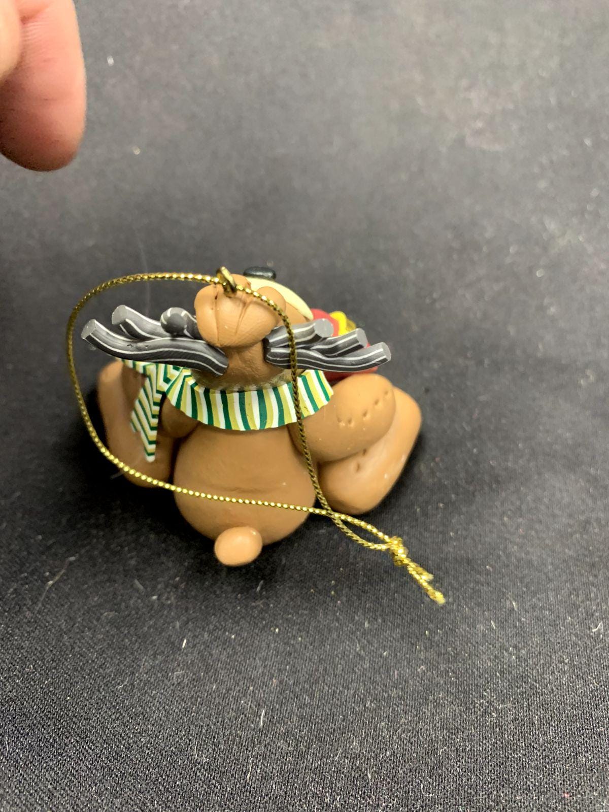 Vintage Resin Animal Christmas Tree Ornaments Whimsical Reindeer and Bear