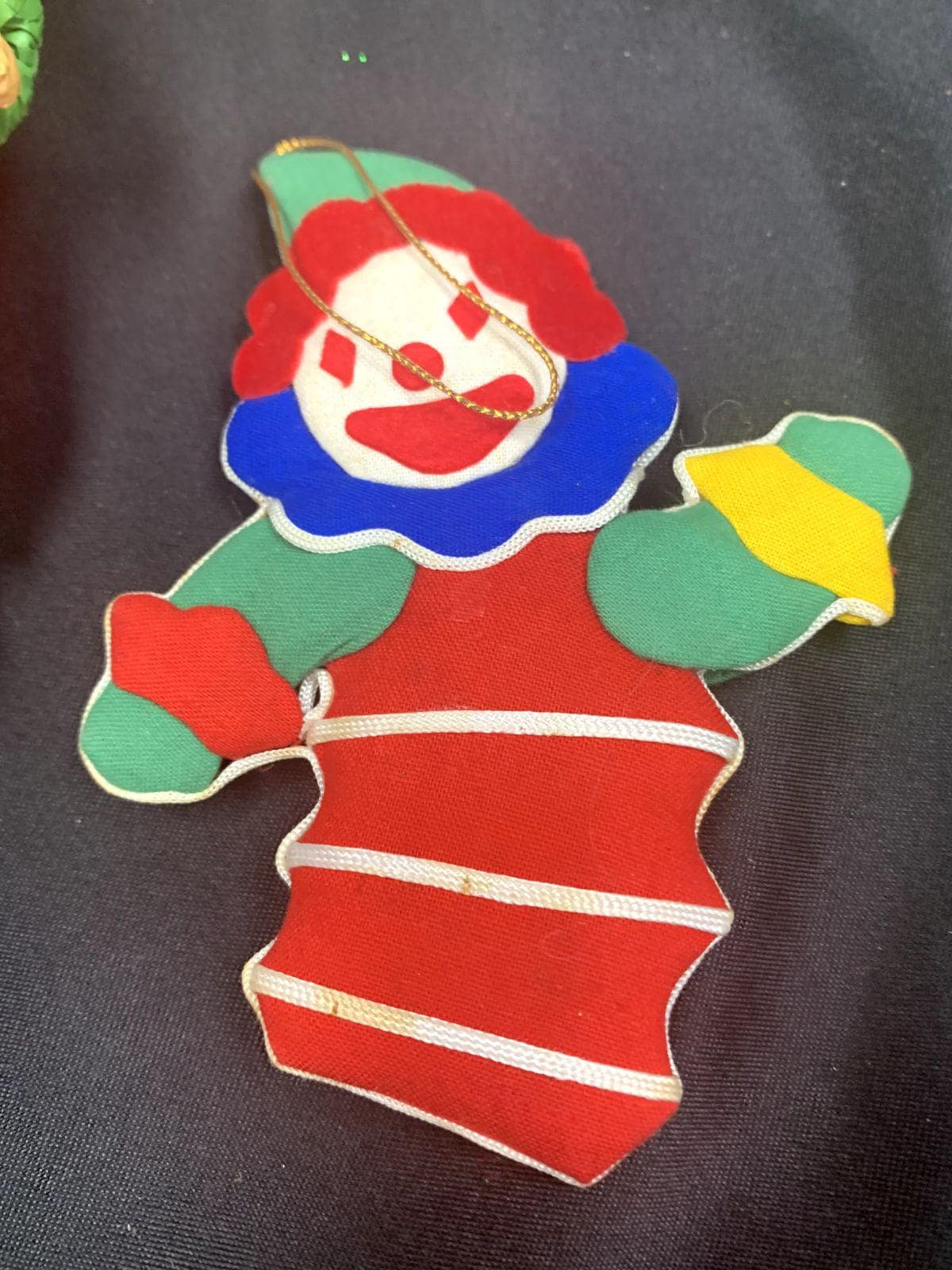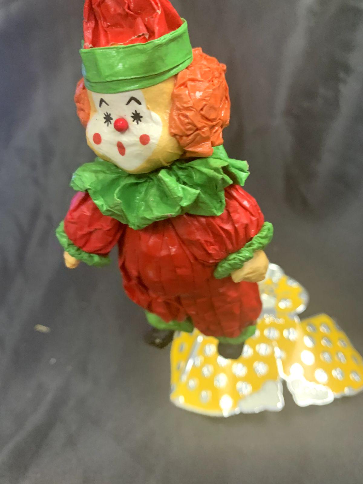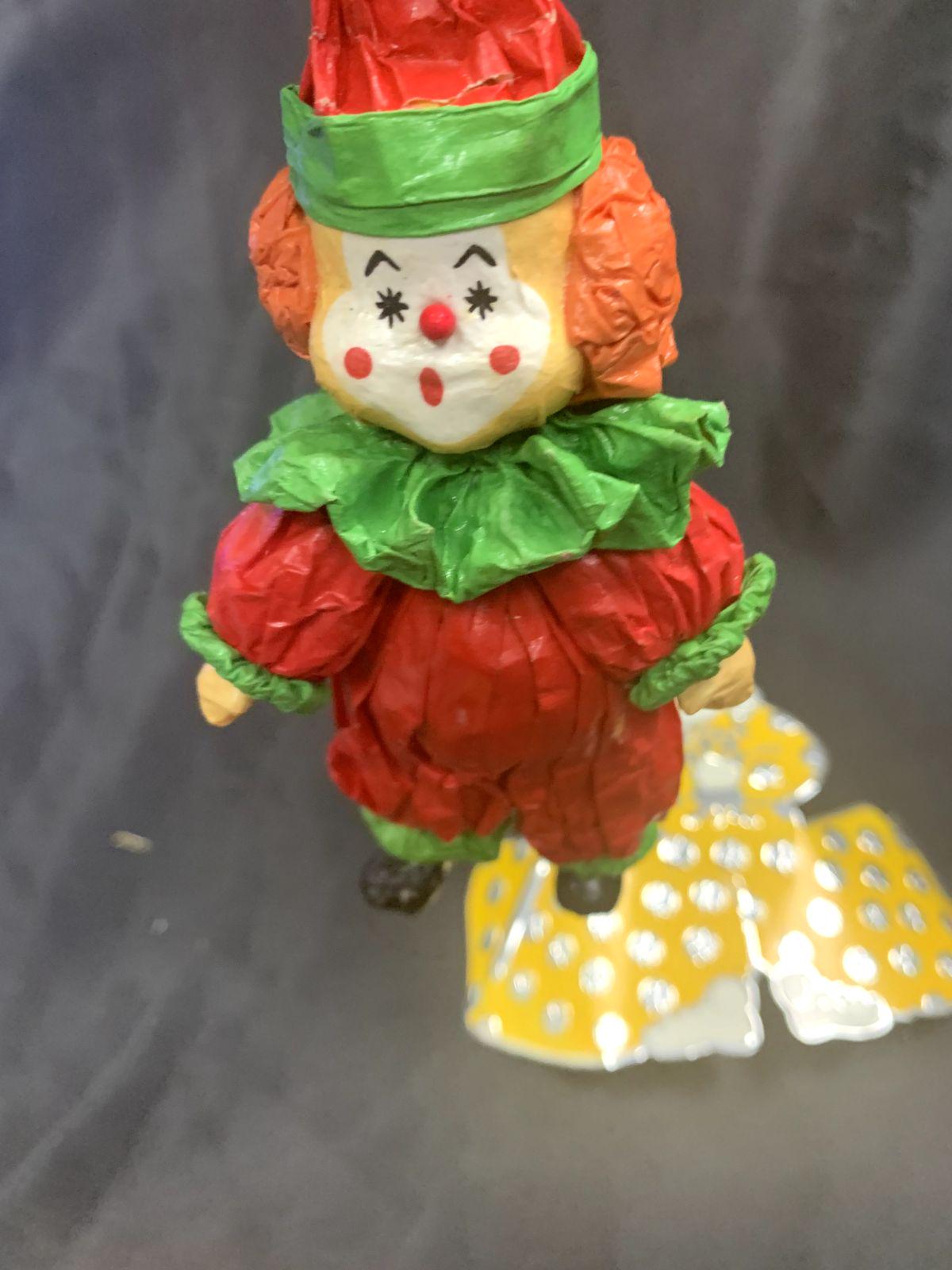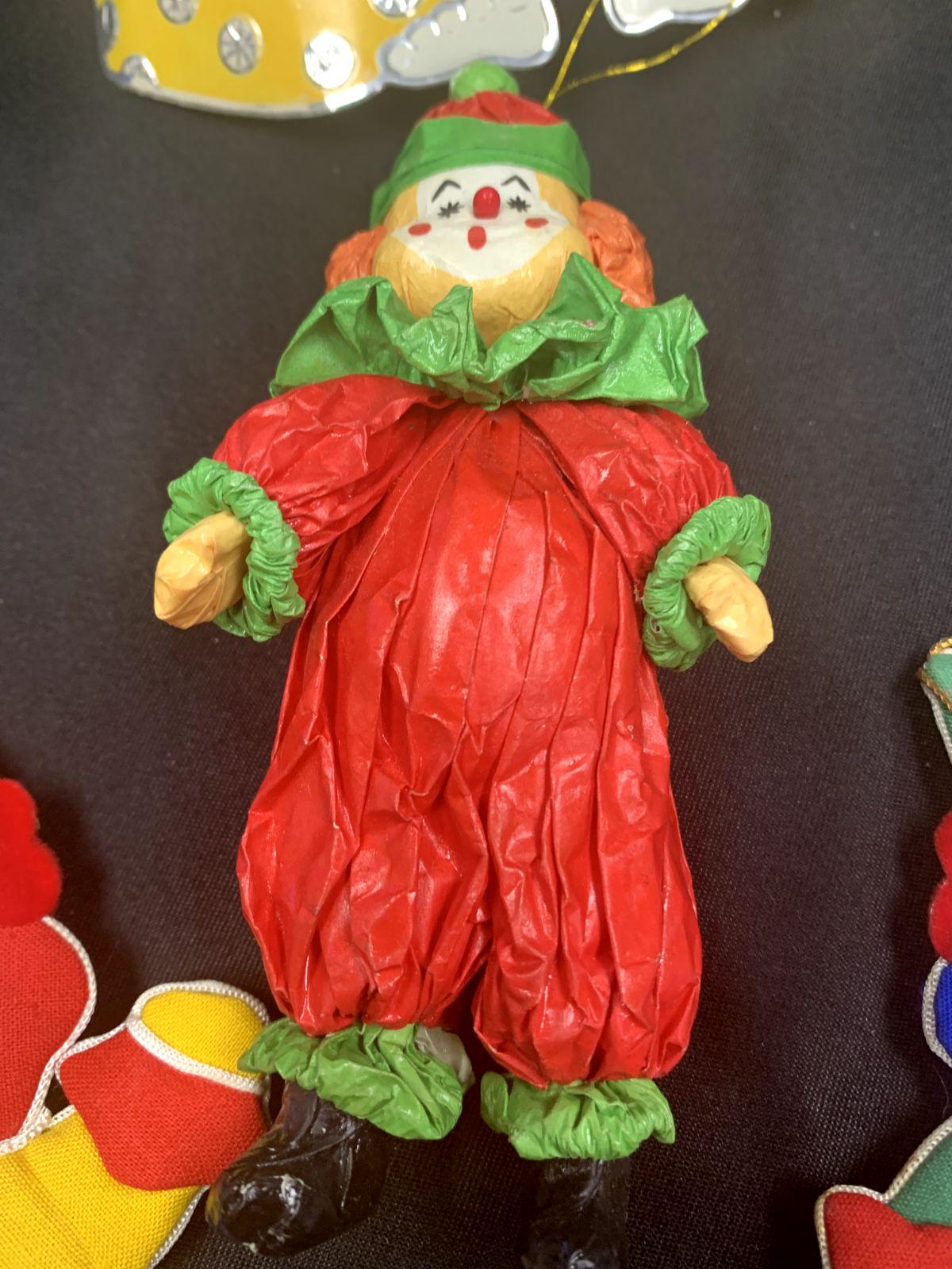 Vintage Colorful Paper Mache Fabric and Metal Circus Clown Christmas Tree Ornaments Set of 4