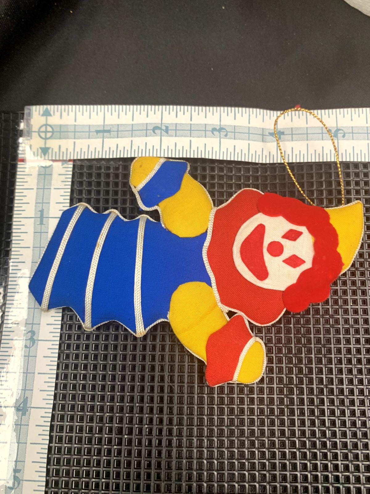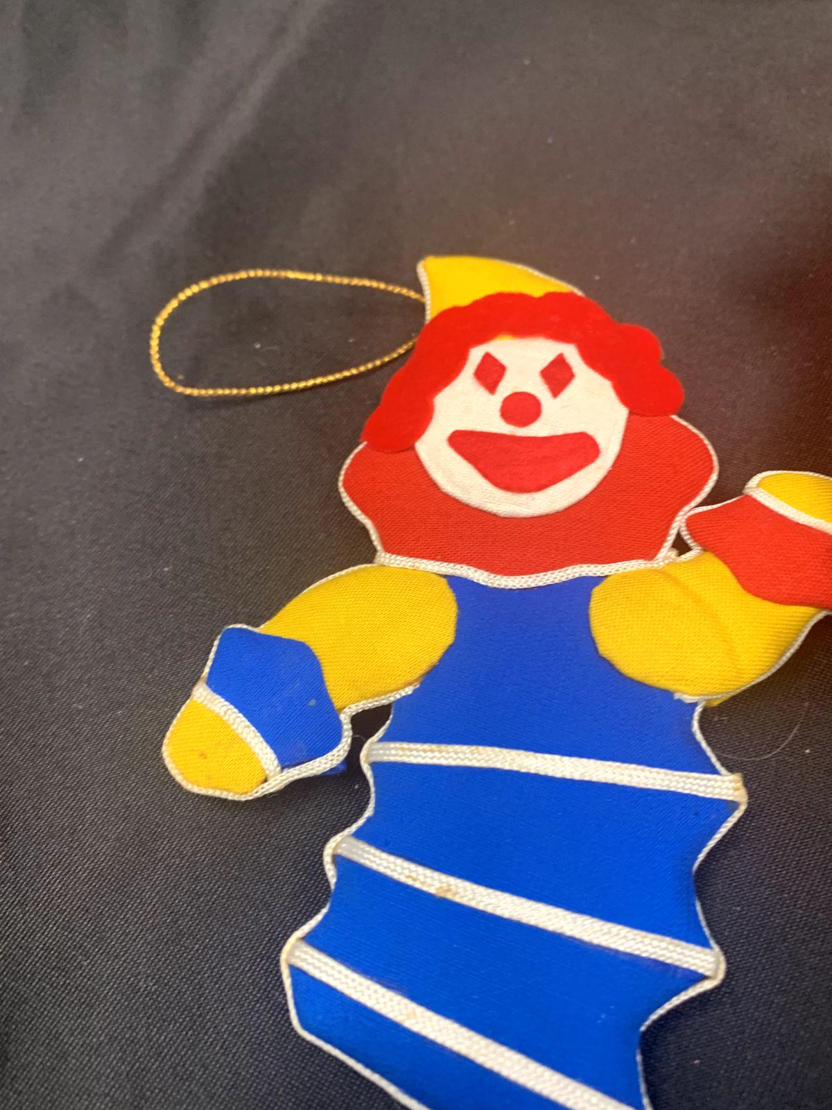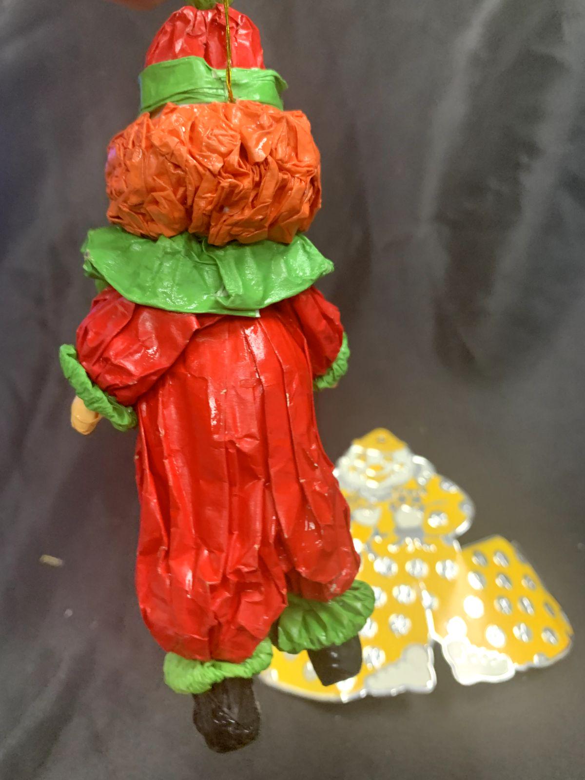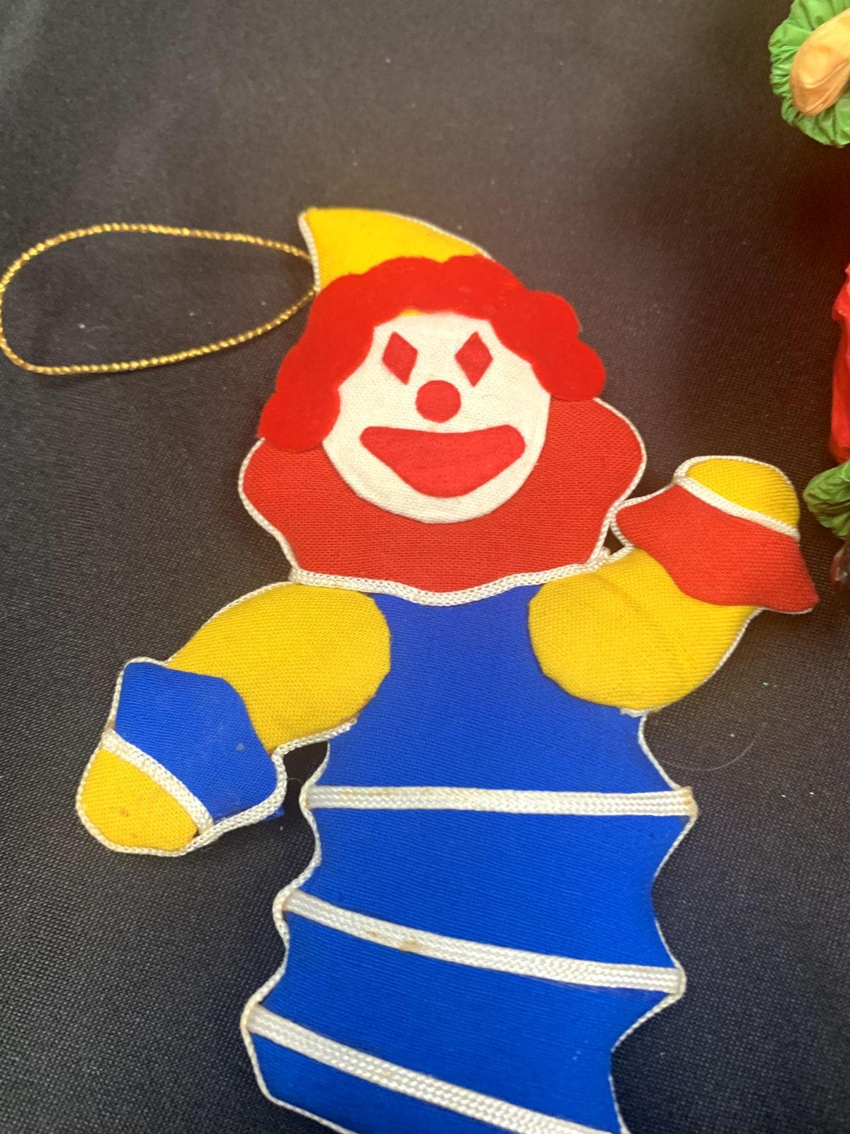 Vintage Colorful Paper Mache Fabric and Metal Circus Clown Christmas Tree Ornaments Set of 4