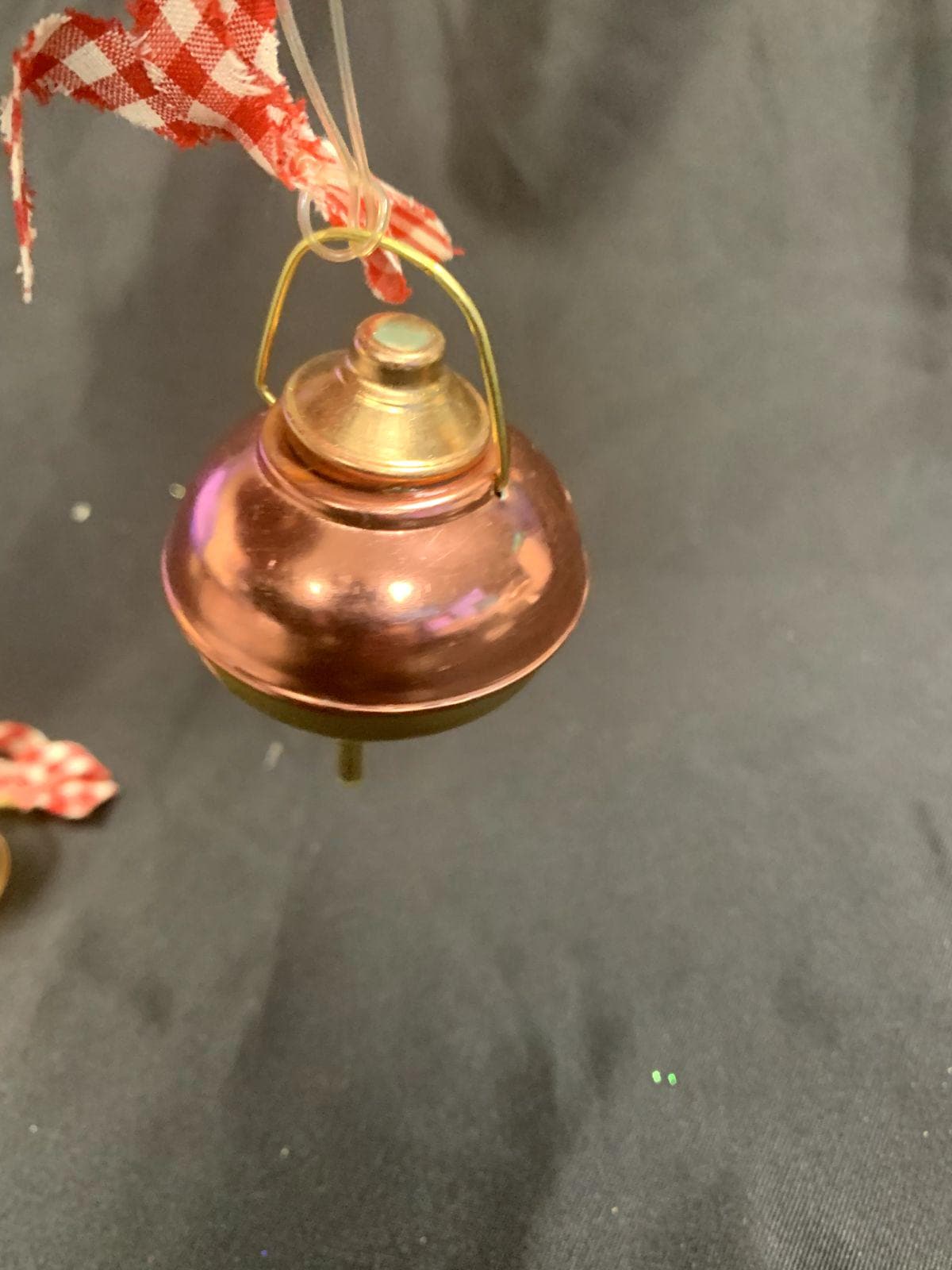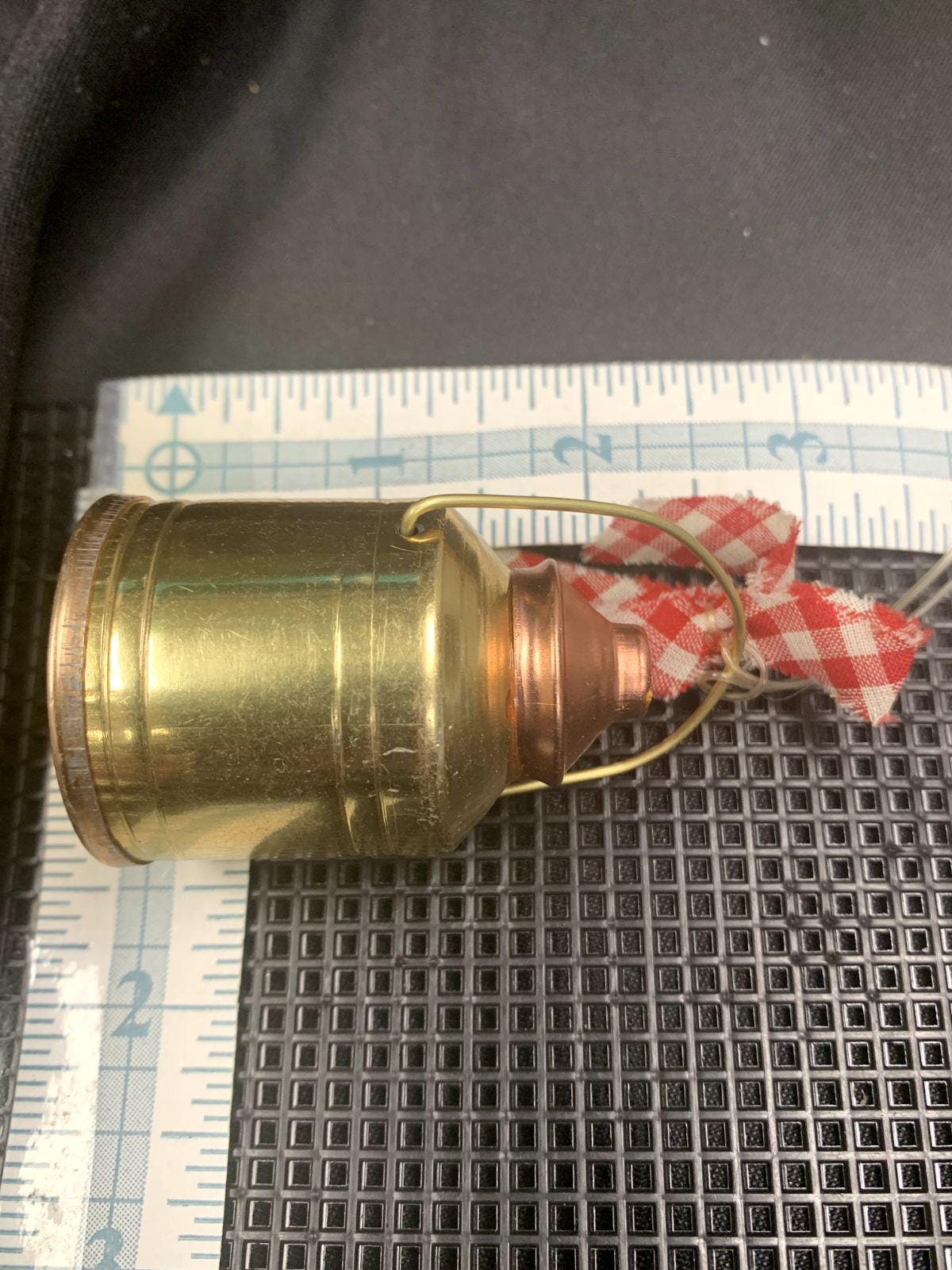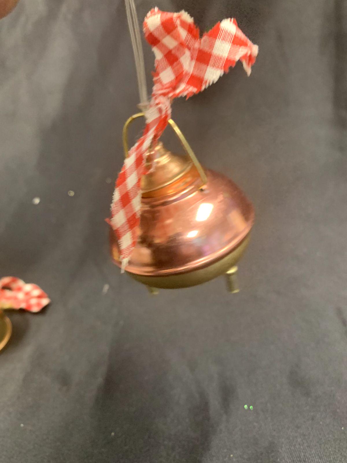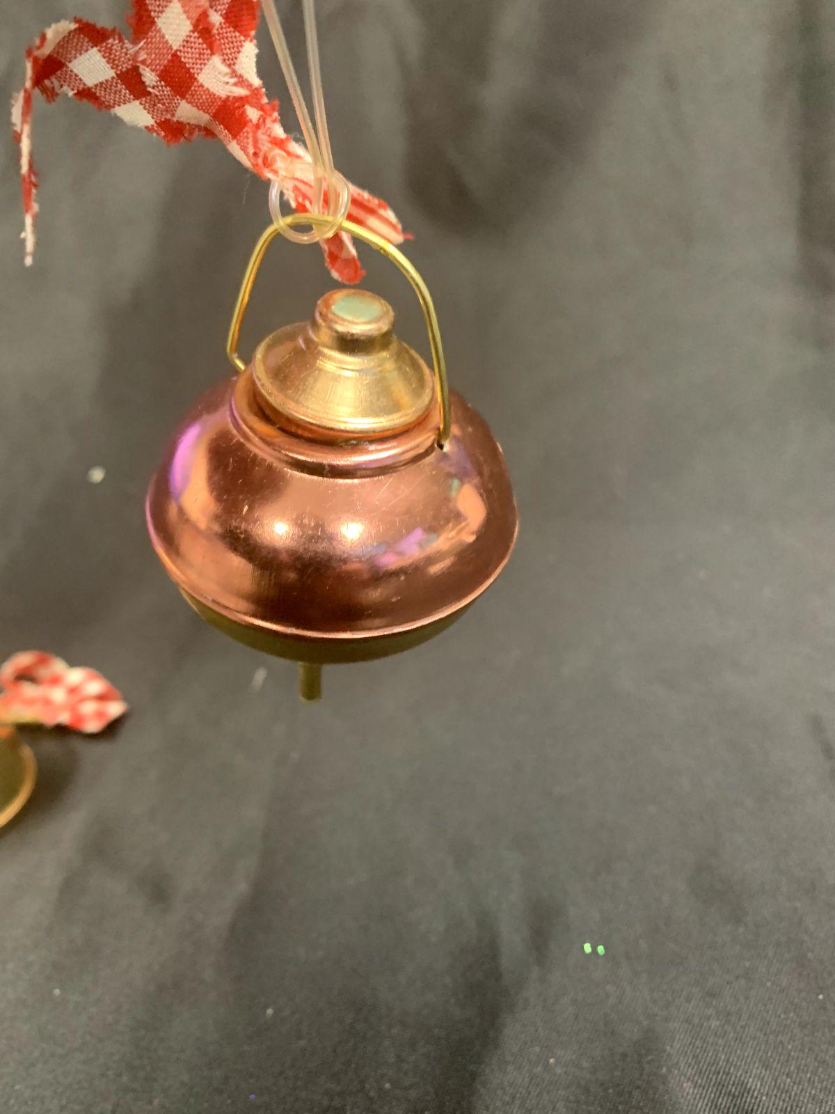 Vintage Rustic Farmhouse Gold/Copper Metal Milk Cans With Red Gingham Bows Christmas Tree Ornaments Set of 2