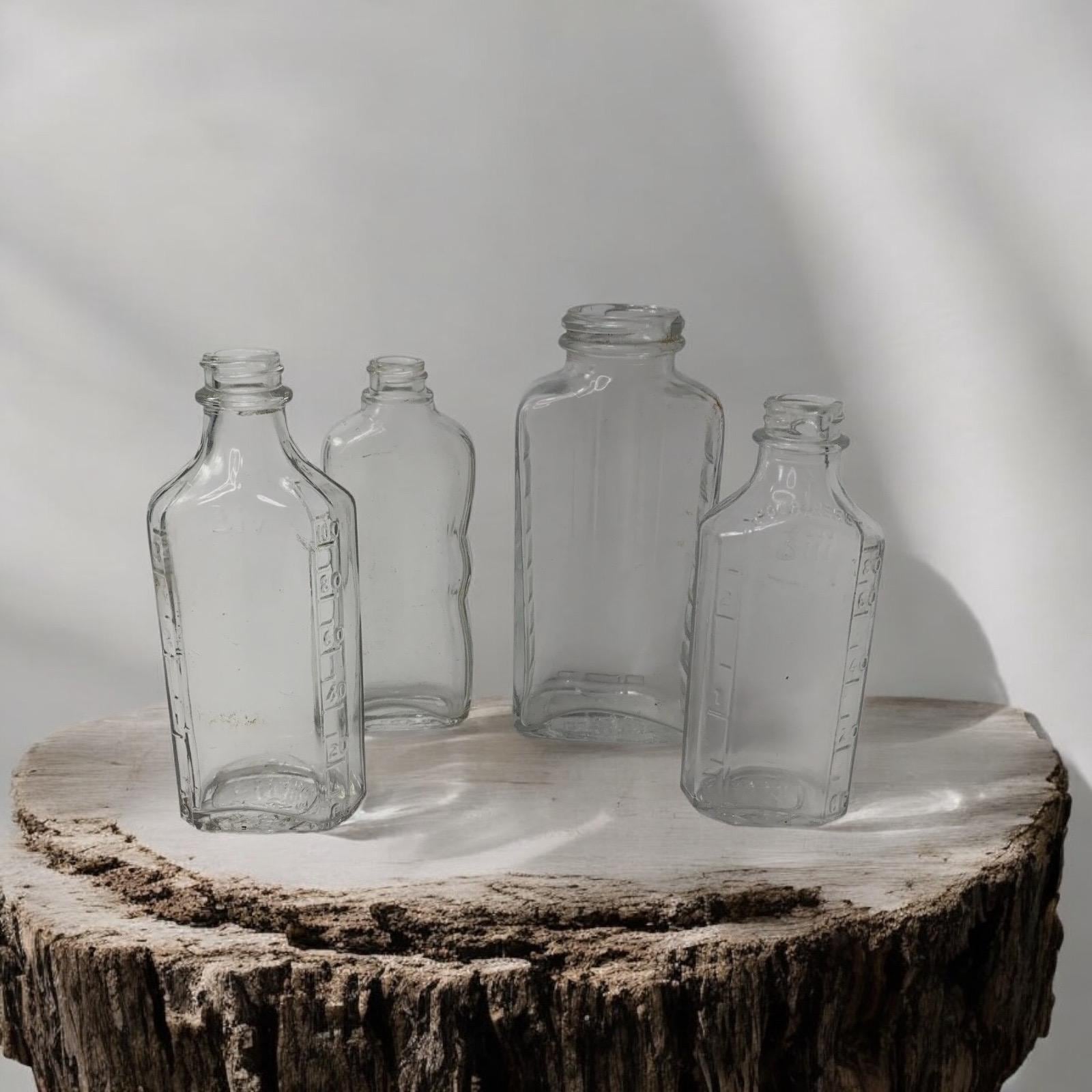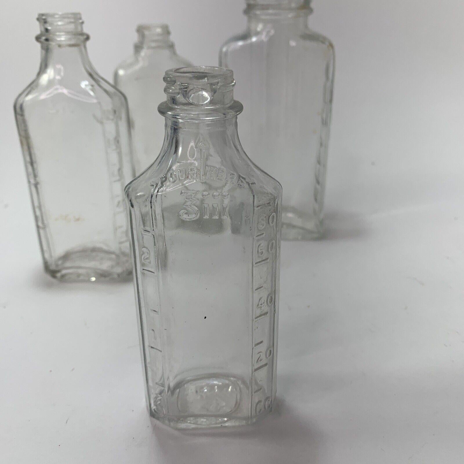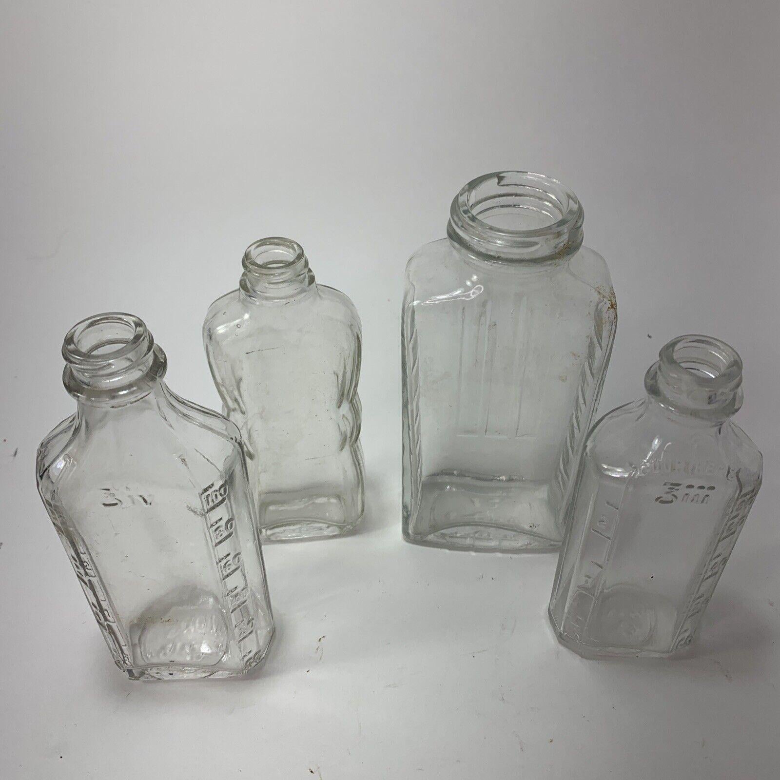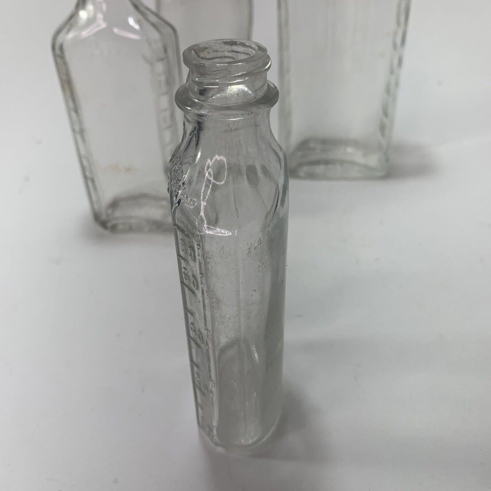 Vintage Owens Illinois Collectible or Crafting Clear Glass Medical Apothecary and Perfume Bottle Set of 4