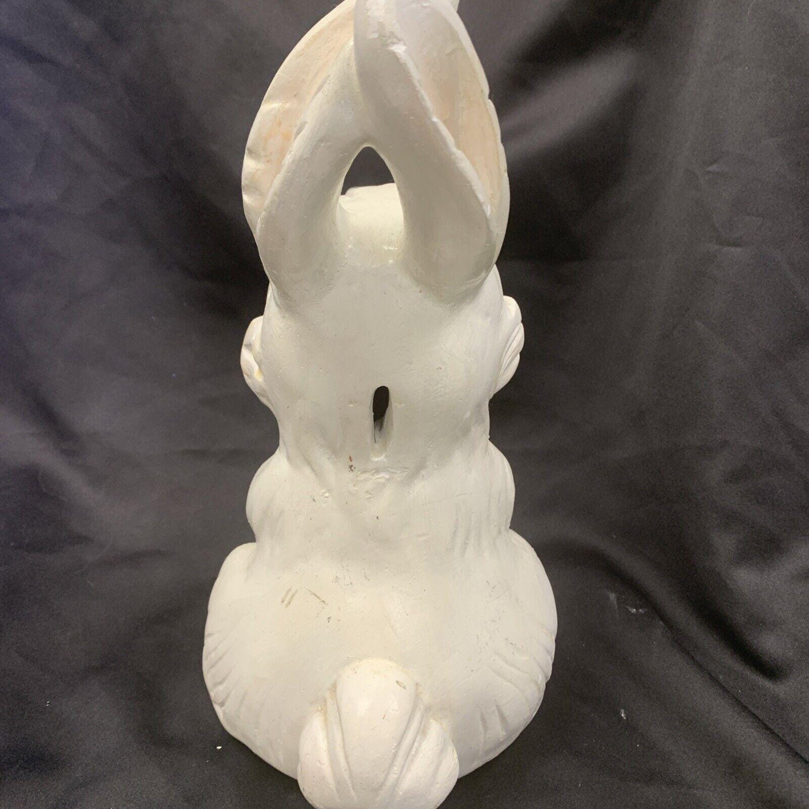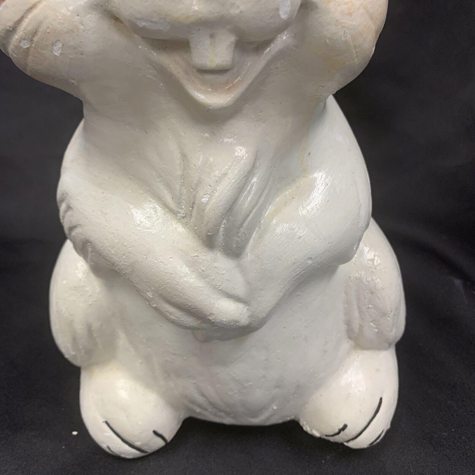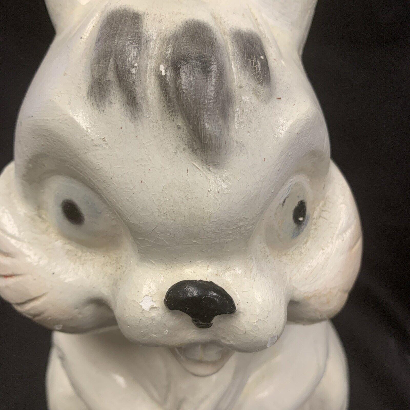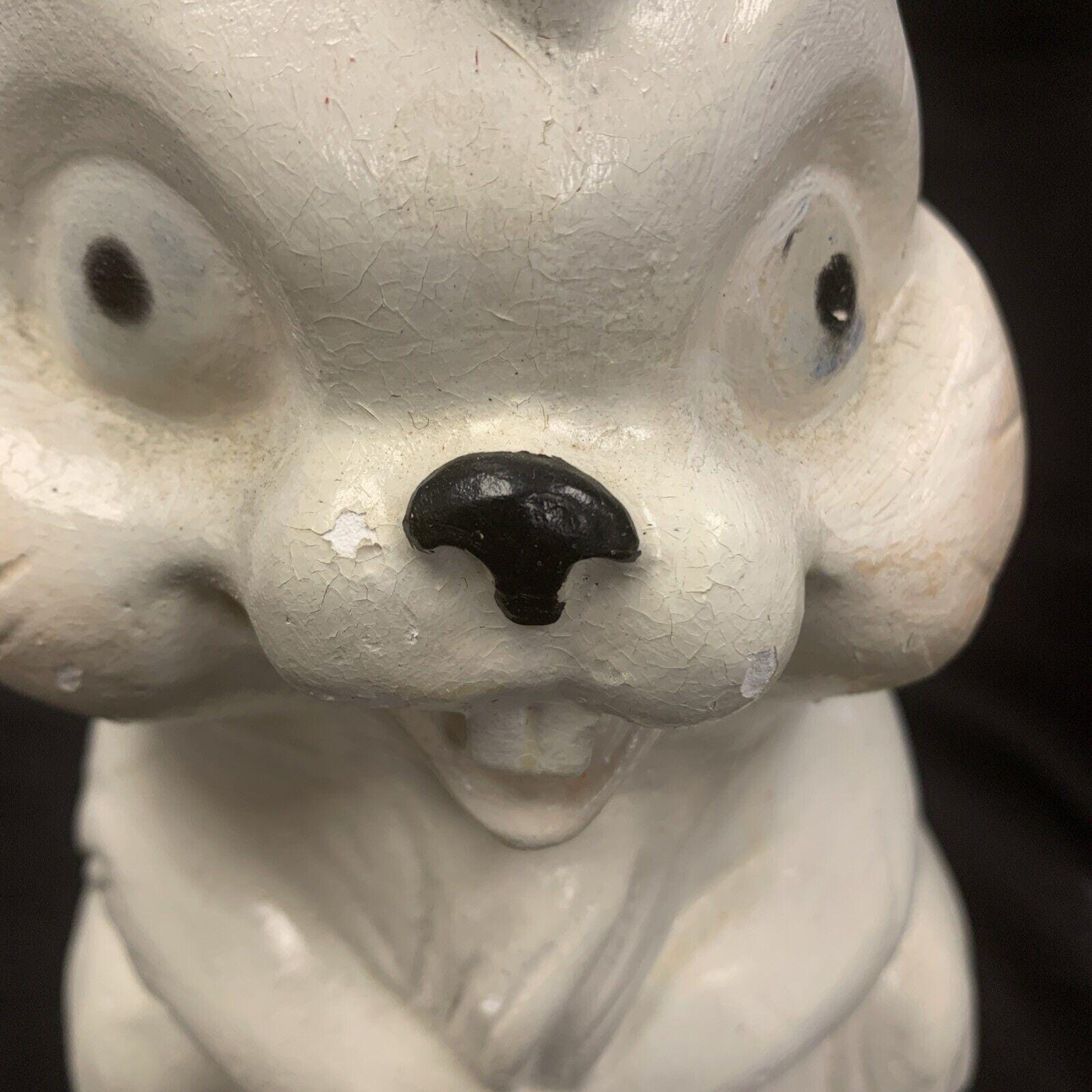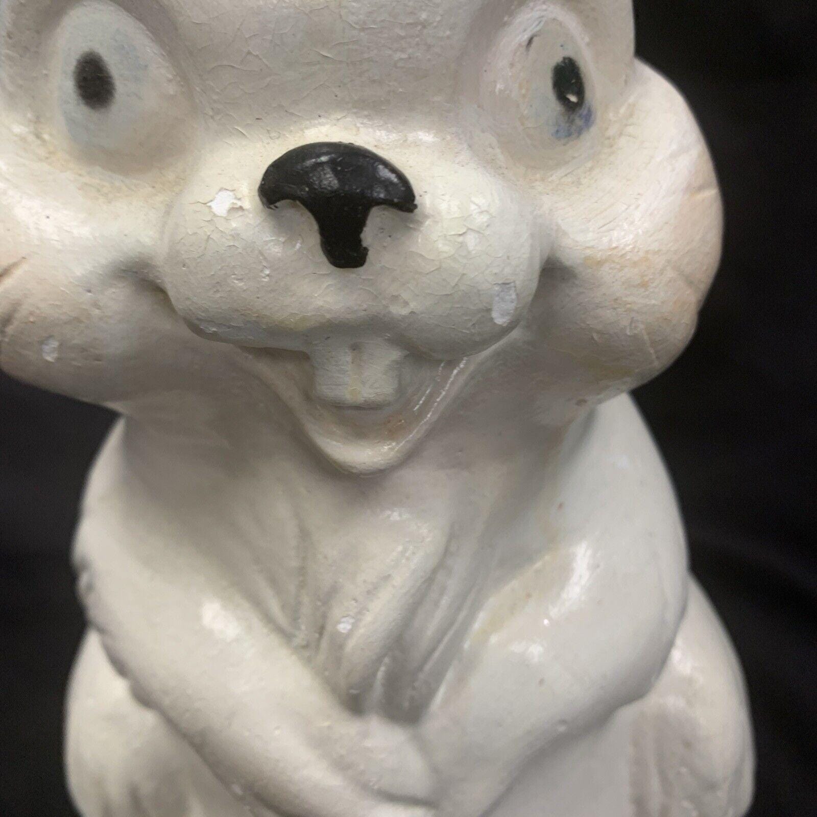 Vintage White Ceramic Hand-Painted Mischievous Bunny Rabbit Coin Bank Spring/Easter Decoration