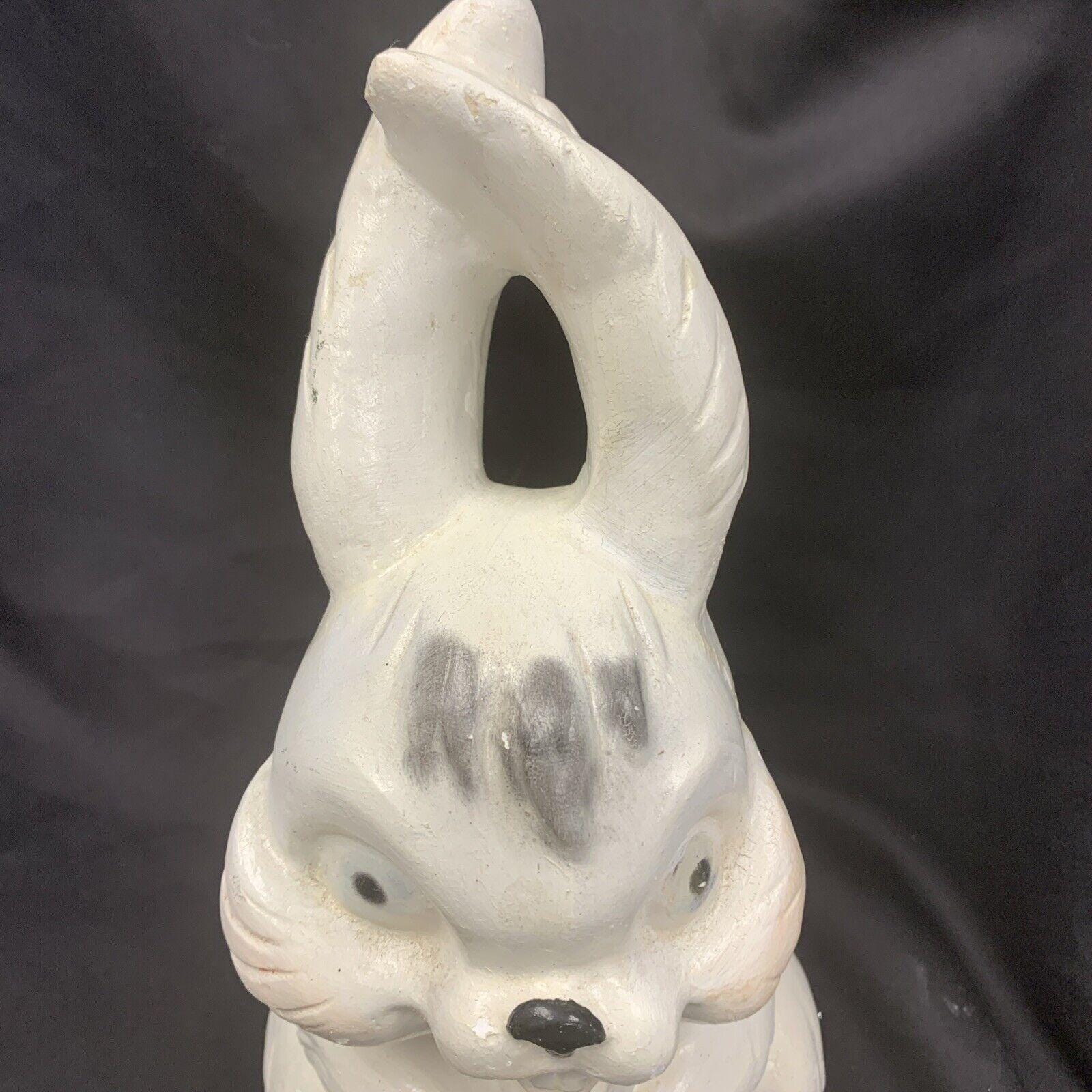 This vintage Easter decoration features a white rabbit and a coin bank. Great vintage decor for the holiday season!