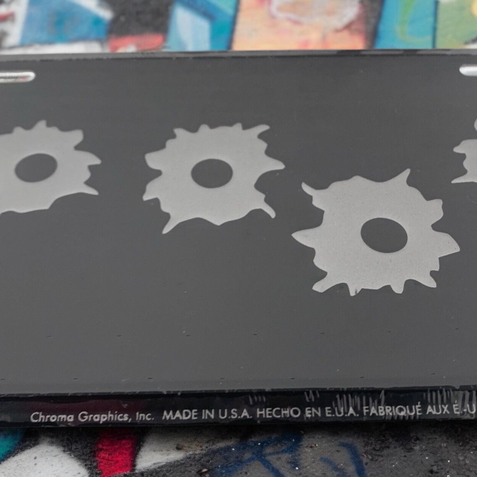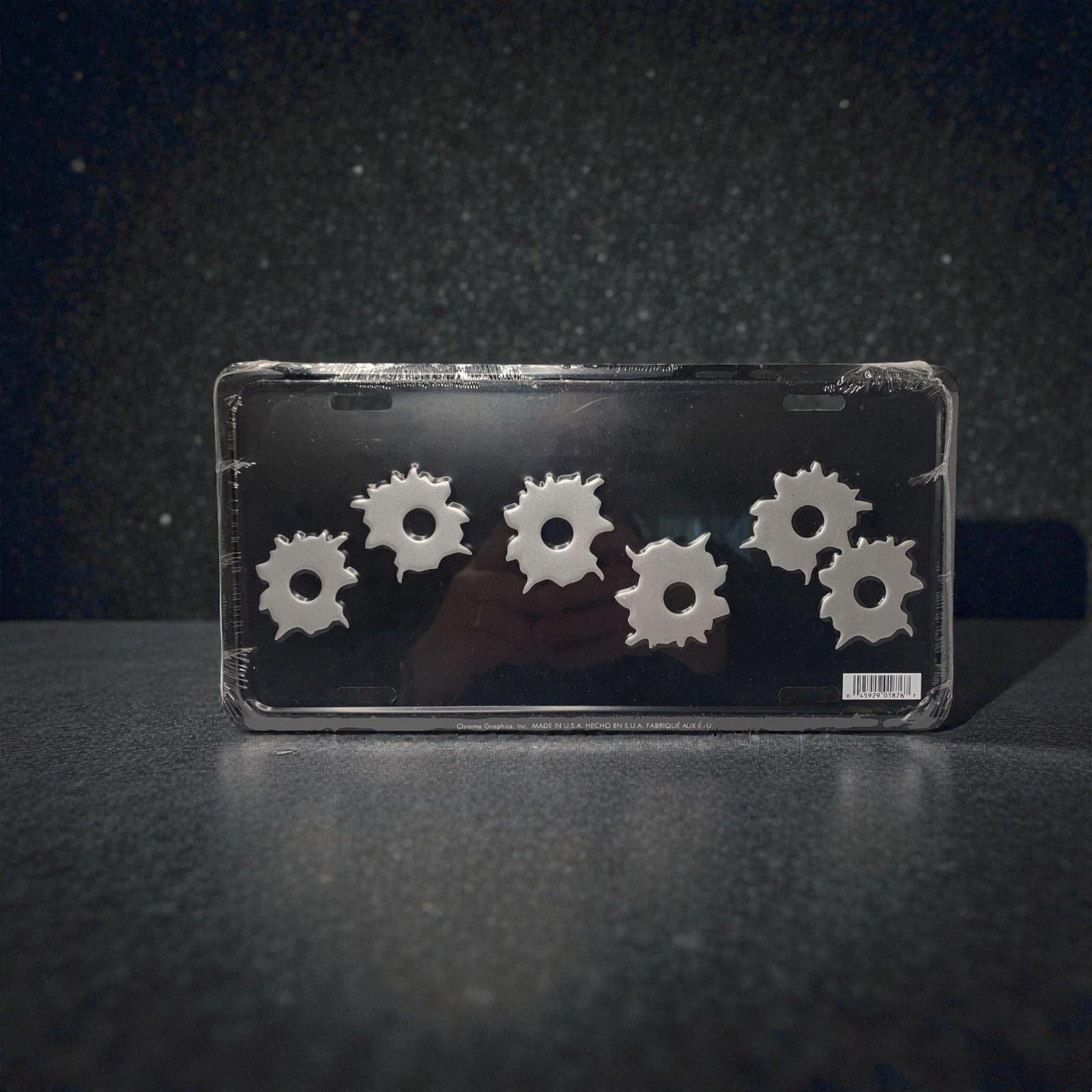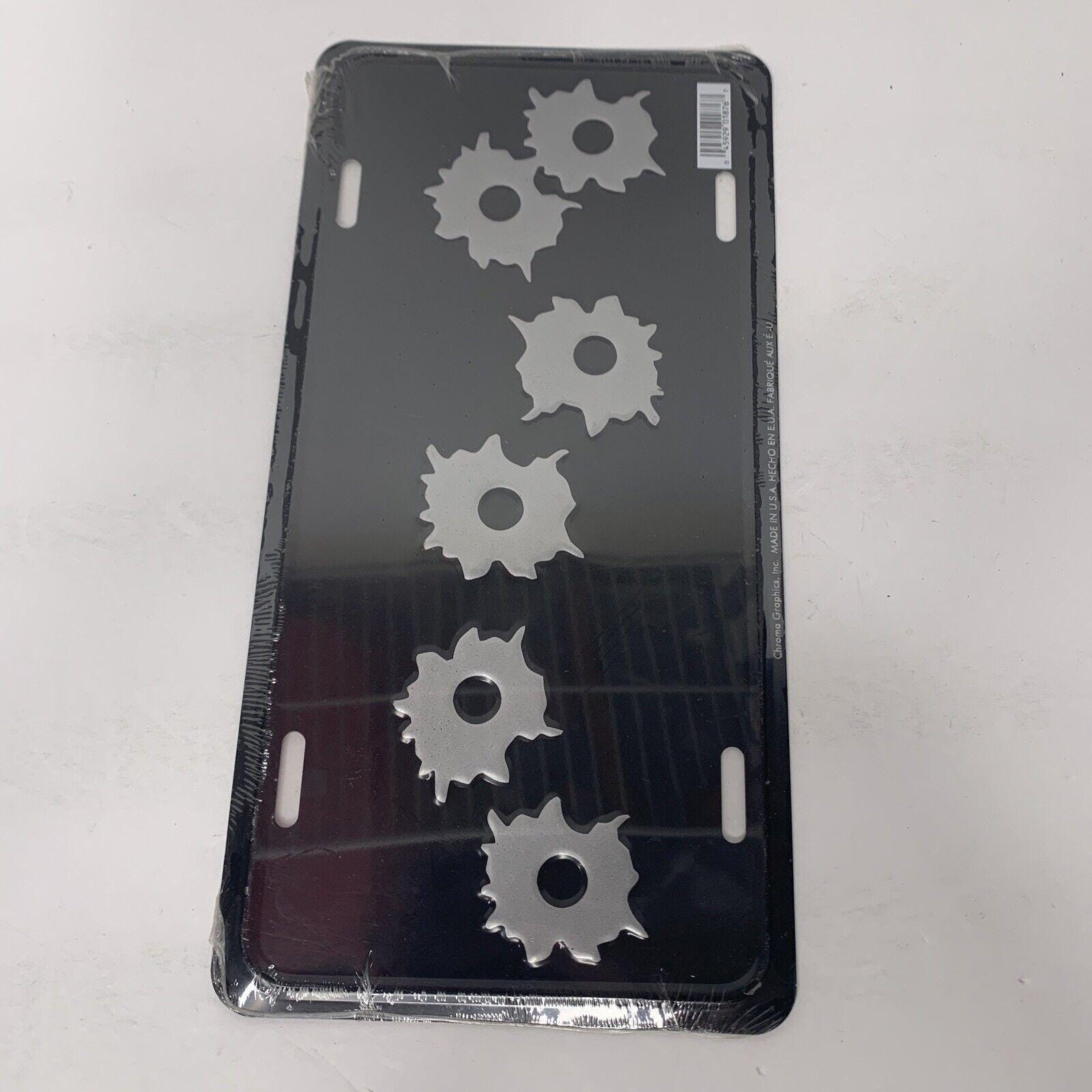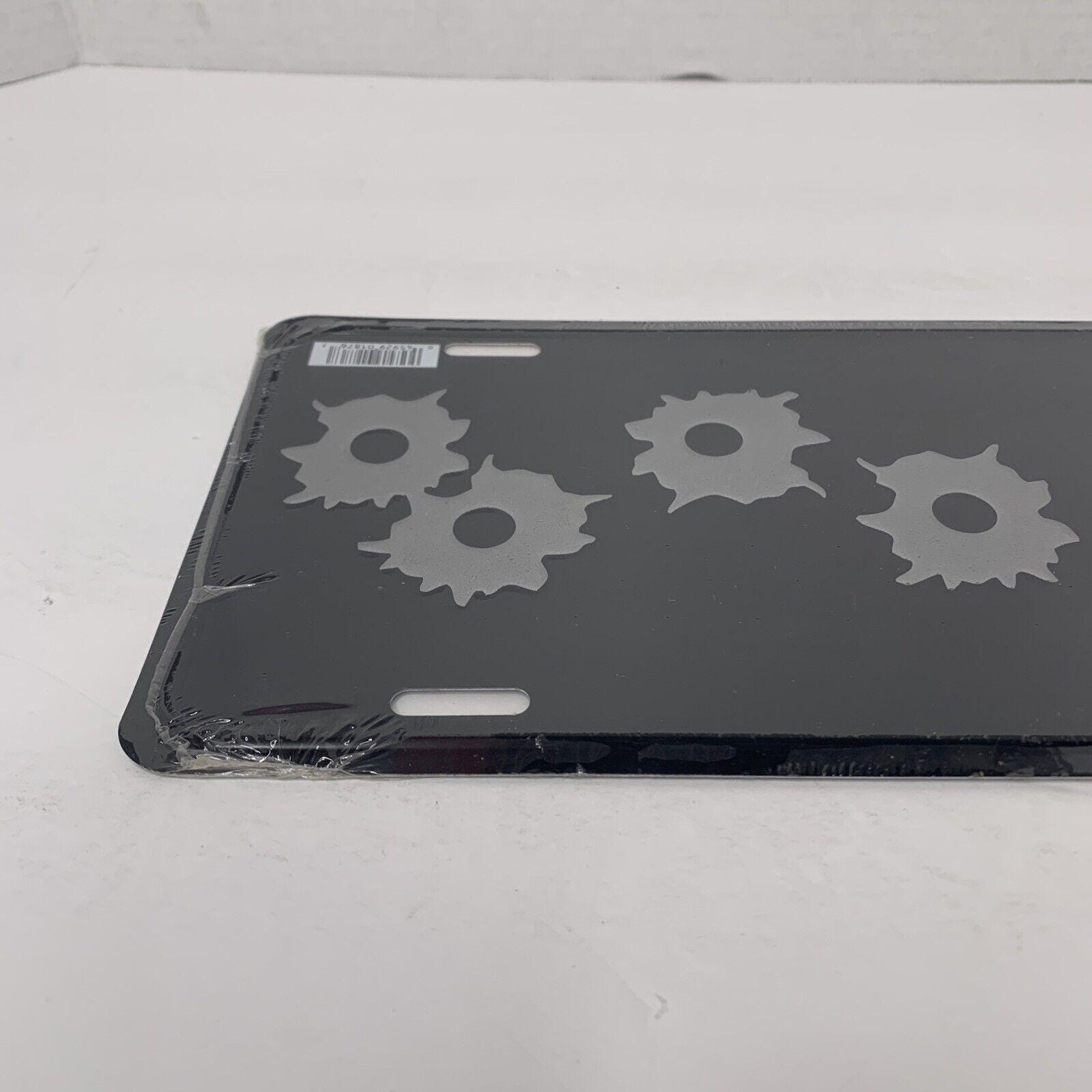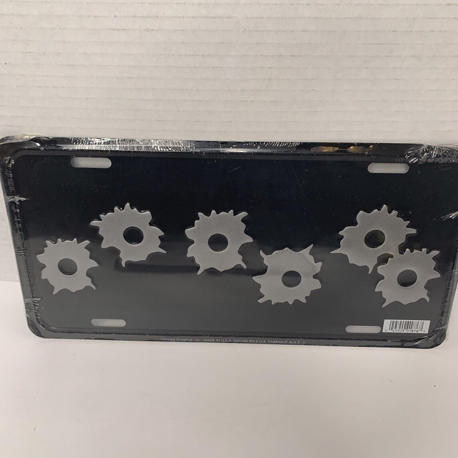 Vintage Stamped Metal Vanity License Plate Cover/Frame With Fake Bullet/Gunshot Holes New /Sealed Made In The USA