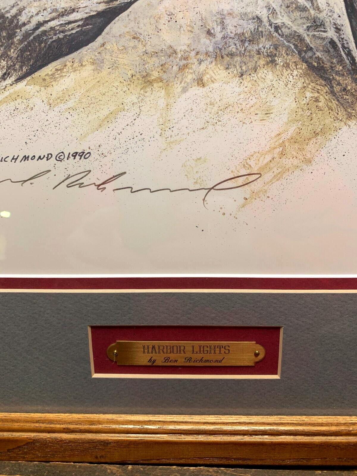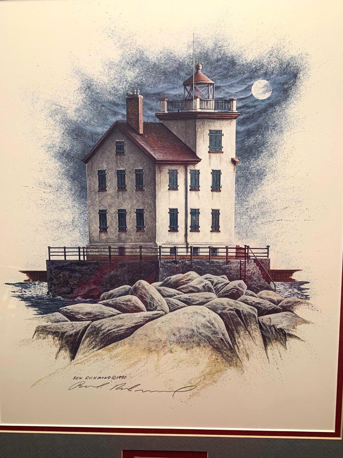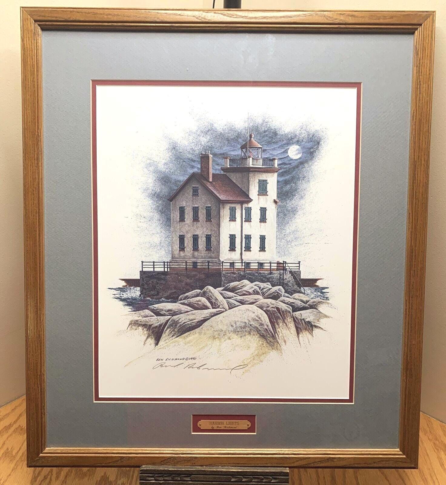Professionally Framed Ben Richmond Harbor Lights Lake Erie Lithograph Art LE to 600 Hand Signed Under Glass 24.75 X 21.75 Inch From 1990