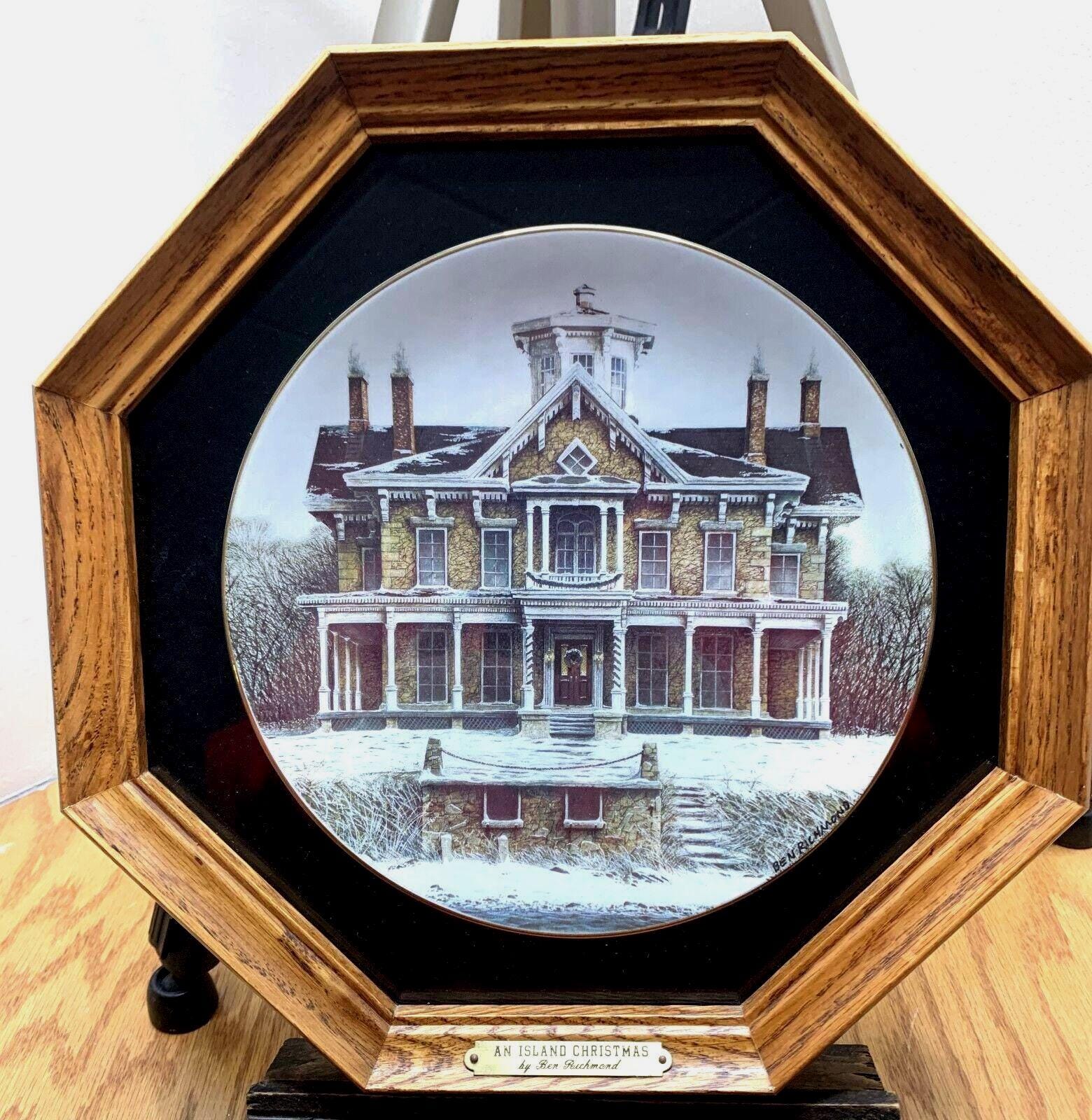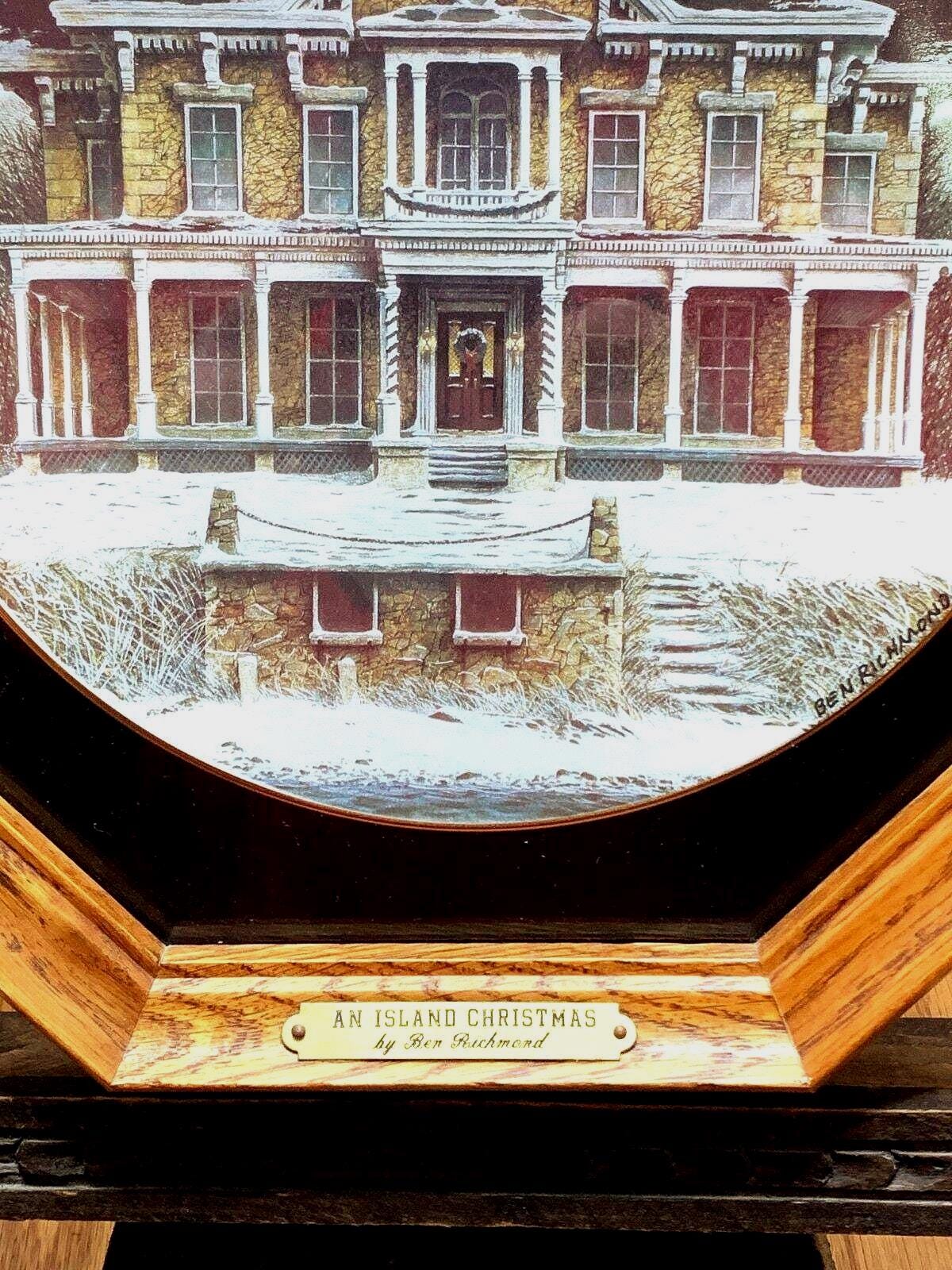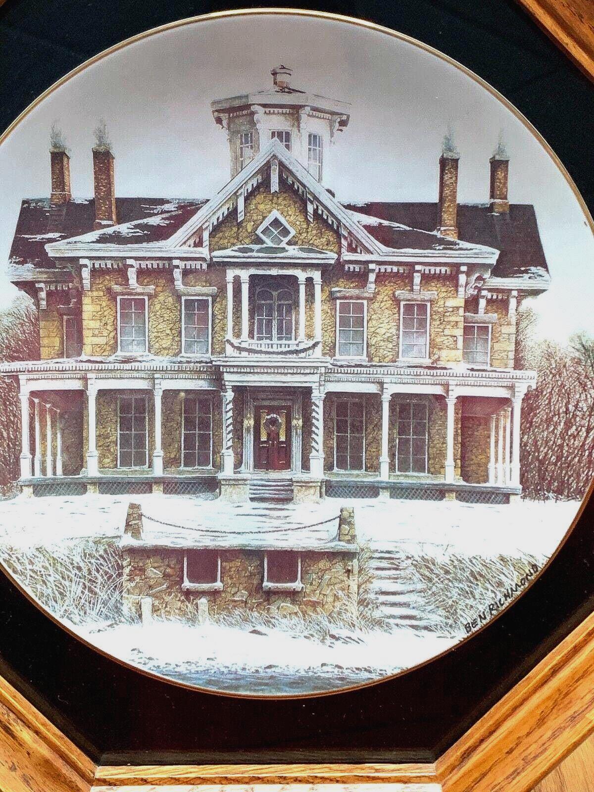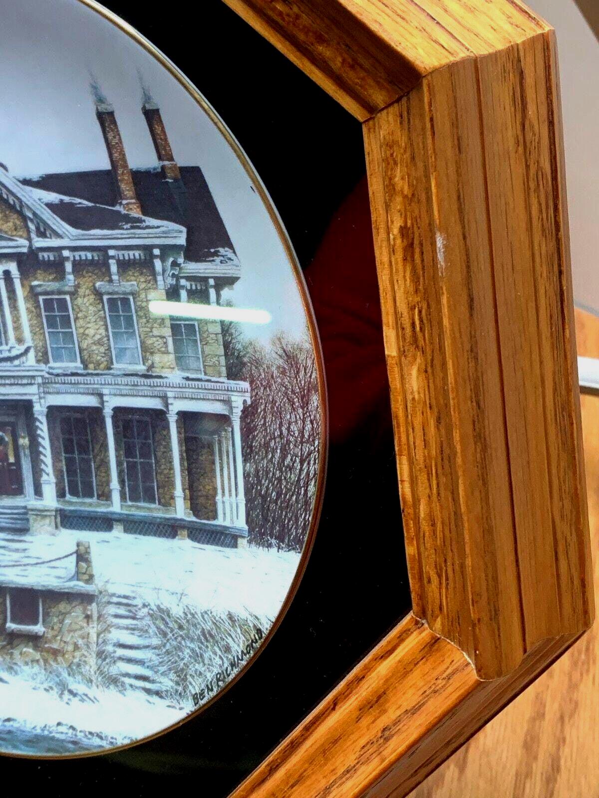 Ben Richmond Oak Framed Country Christmas Porcelain Collector Plate "Island Christmas" Kelly's Island Mansion In Ohio Lake Erie
