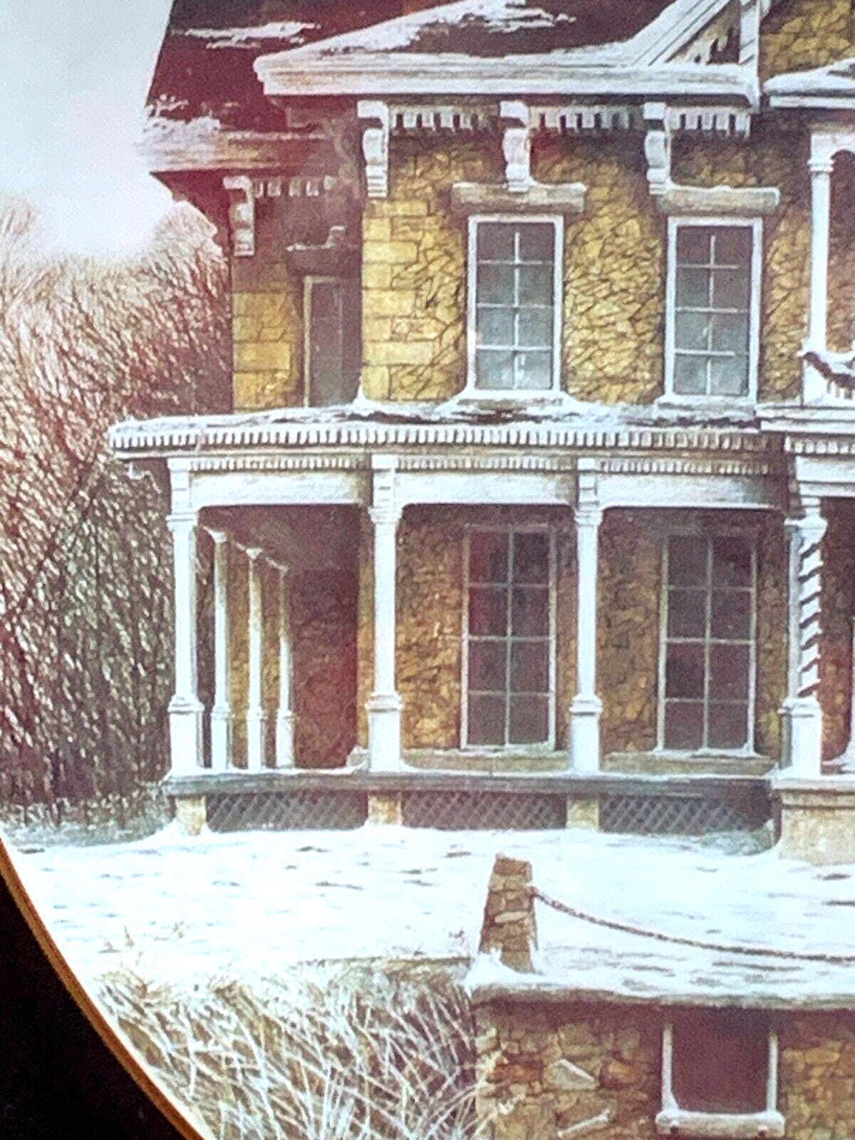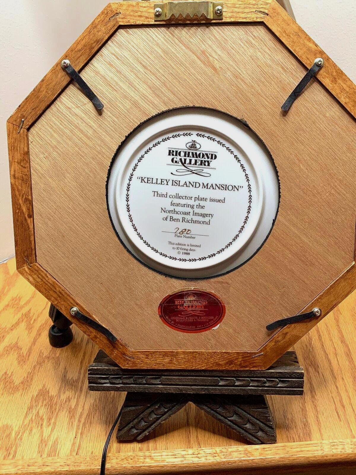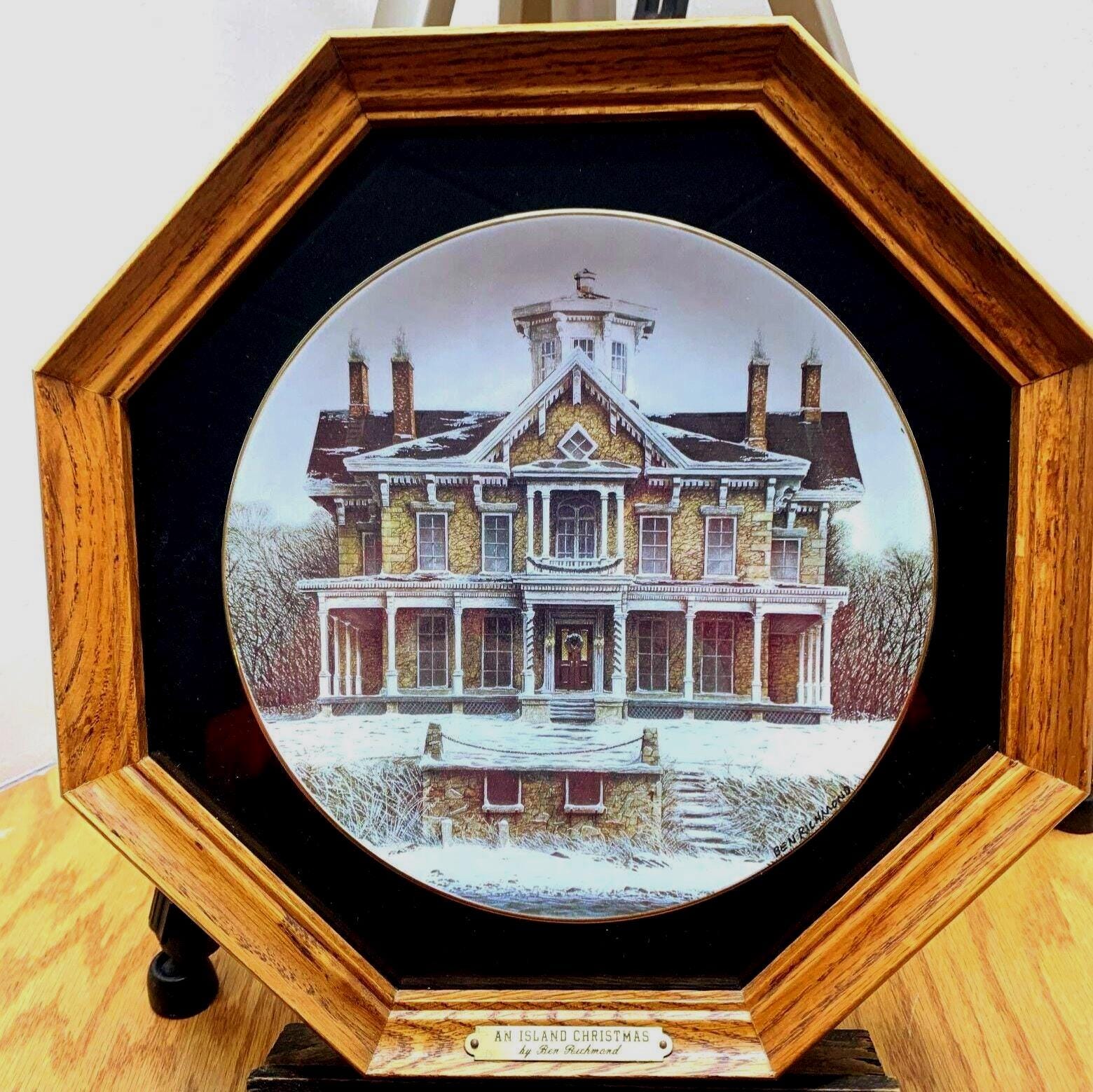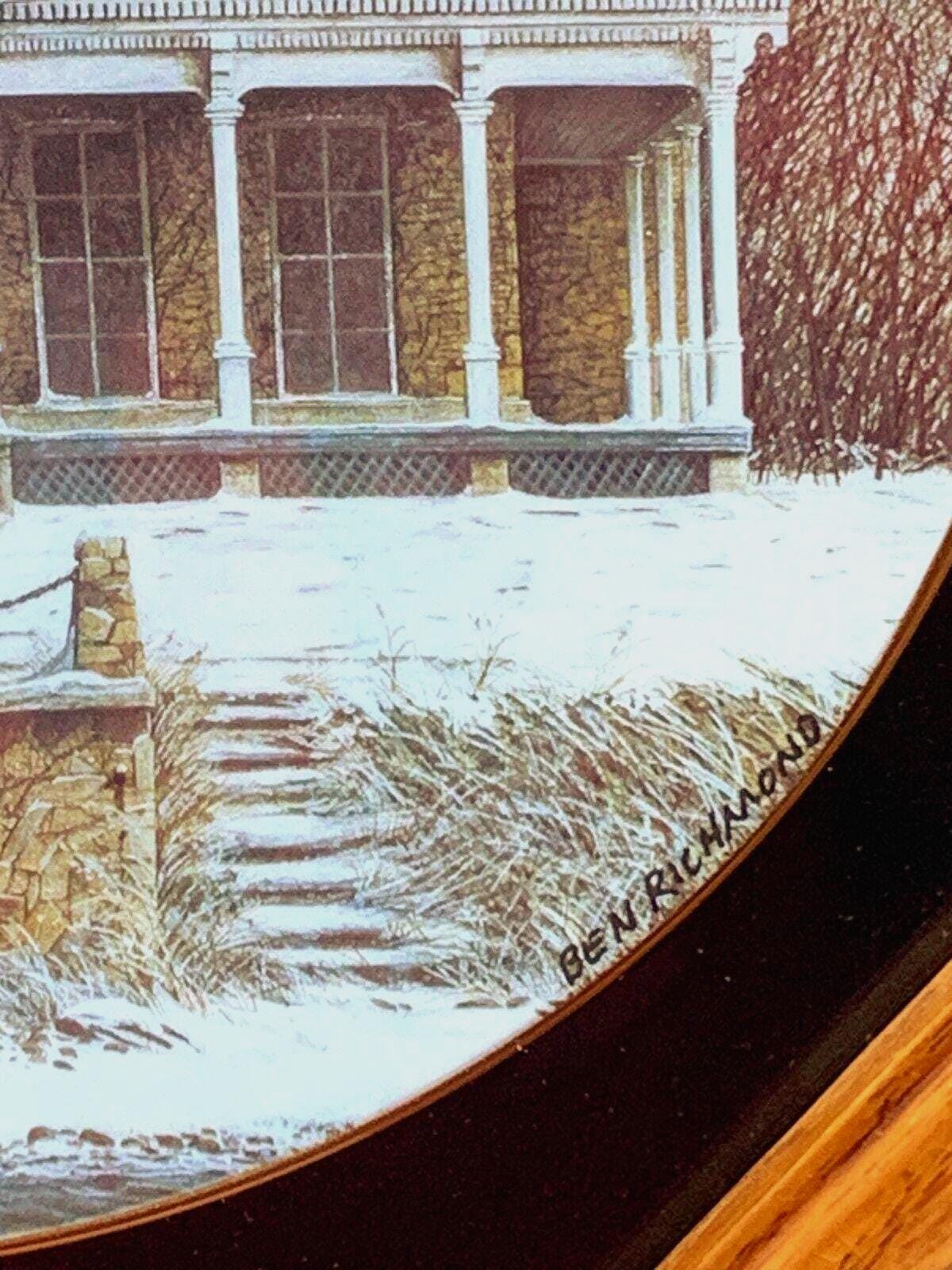 Ben Richmond Oak Framed Country Christmas Porcelain Collector Plate "Island Christmas" Kelly's Island Mansion In Ohio Lake Erie