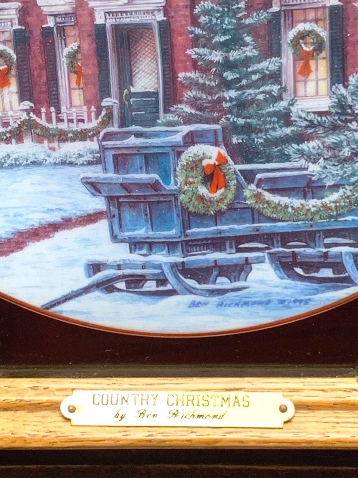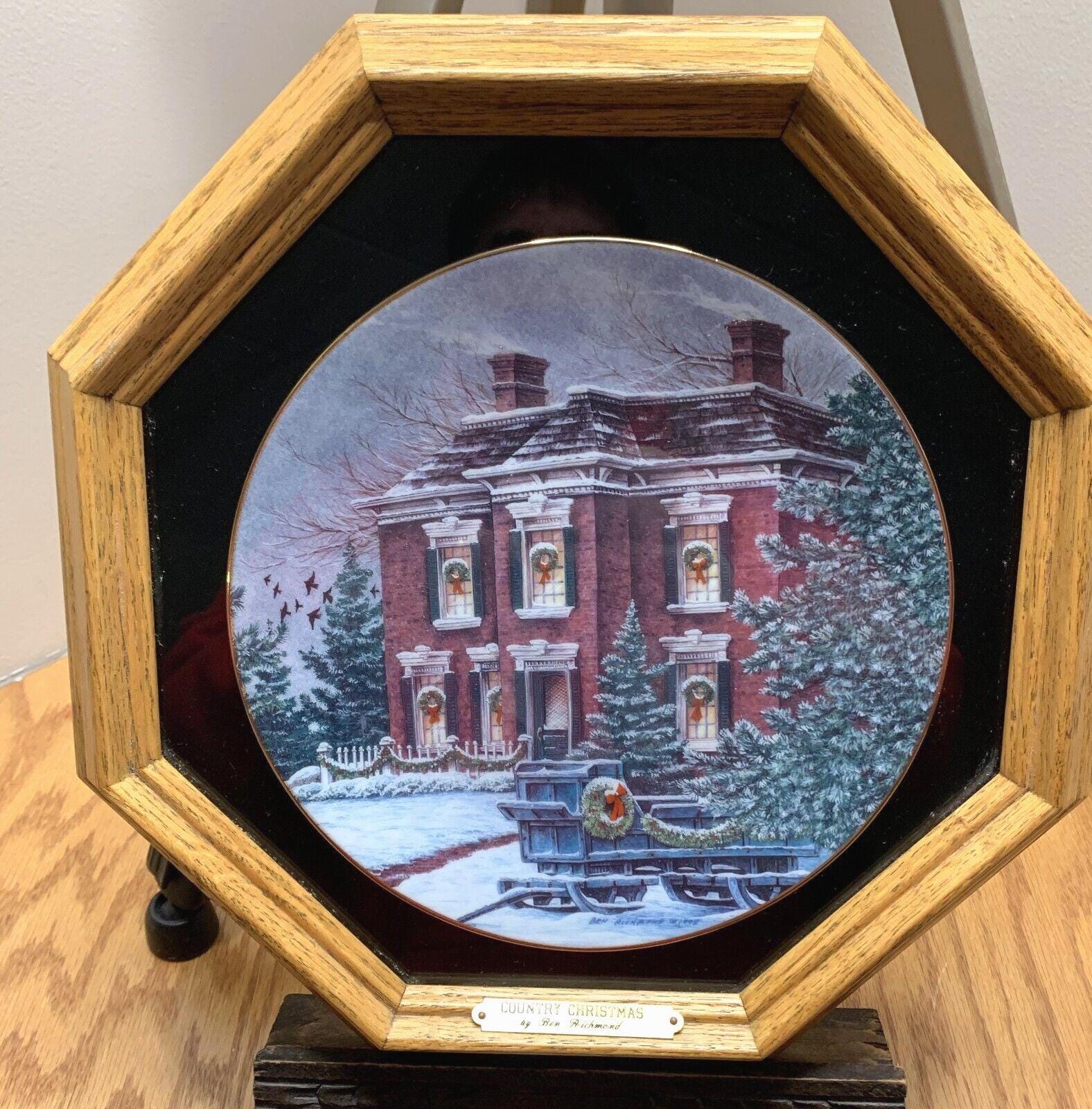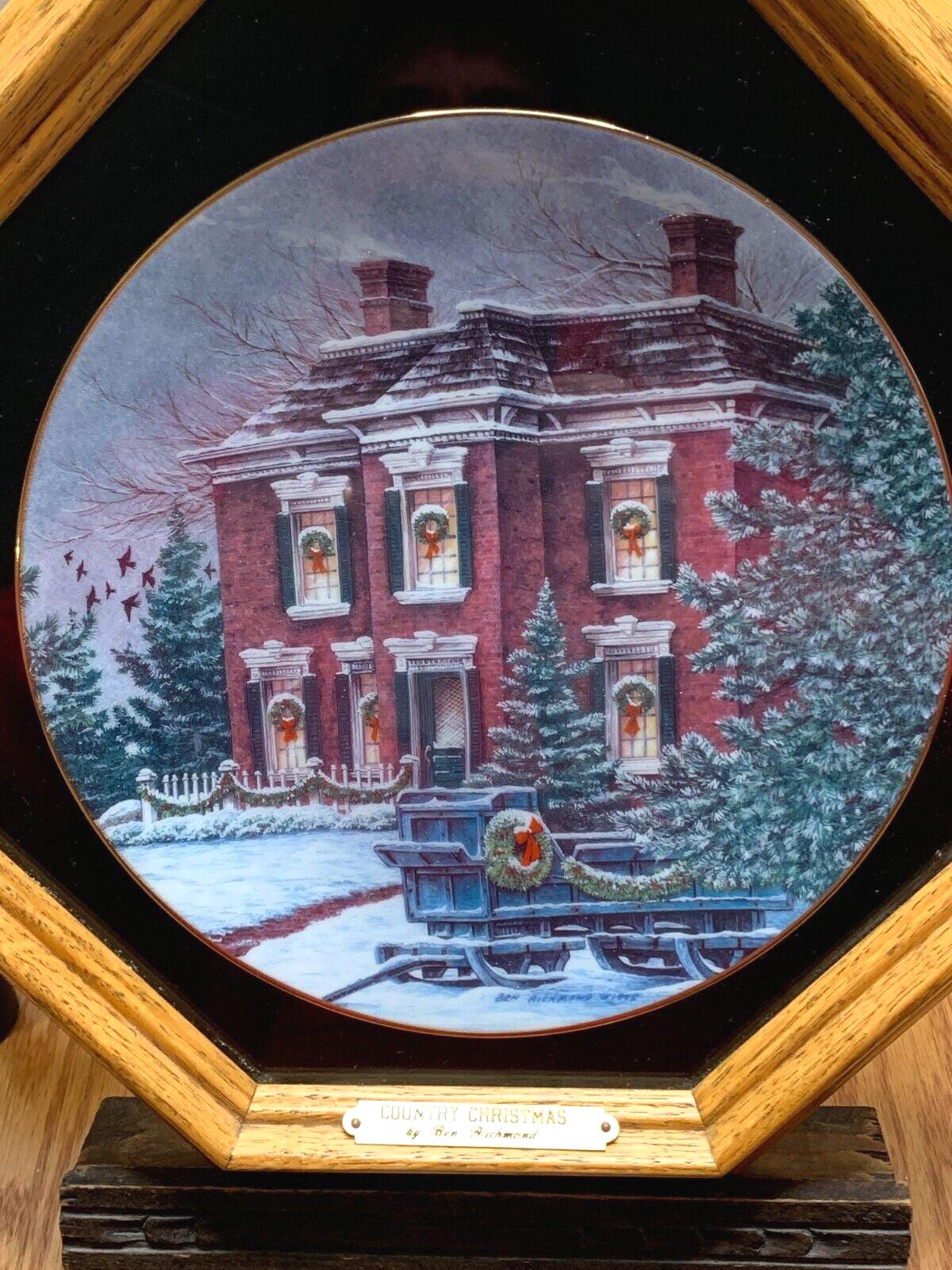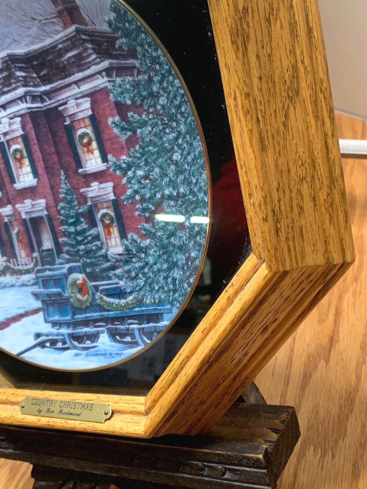 Ben Richmond Oak Framed Collector Plate "Country Christmas" Vintage Farmhouse