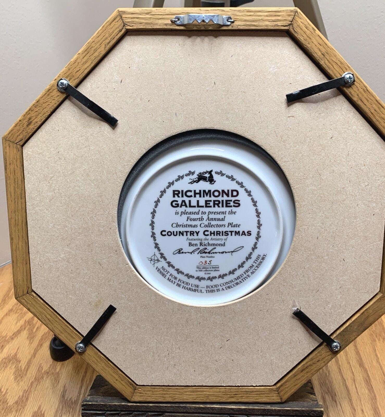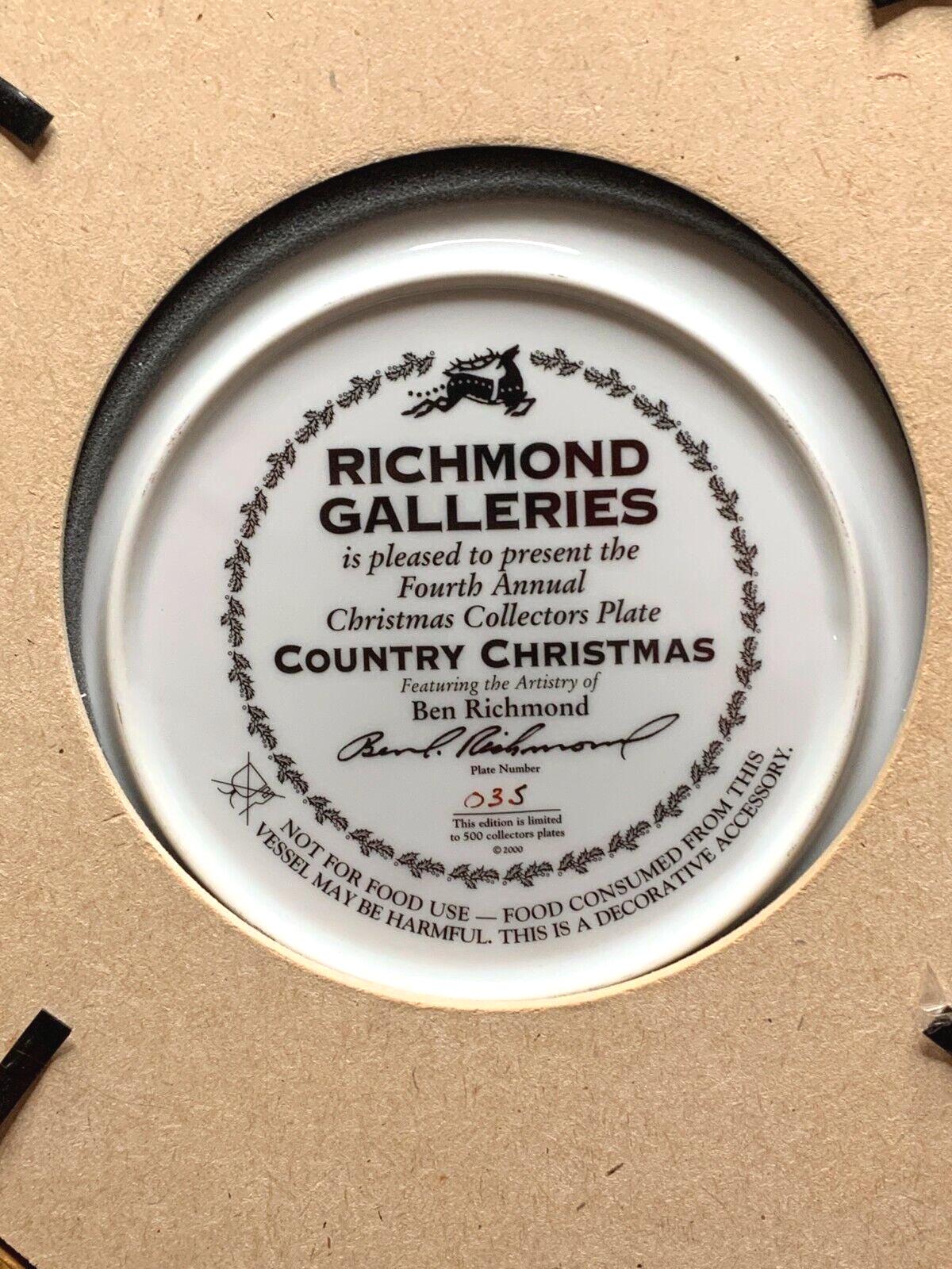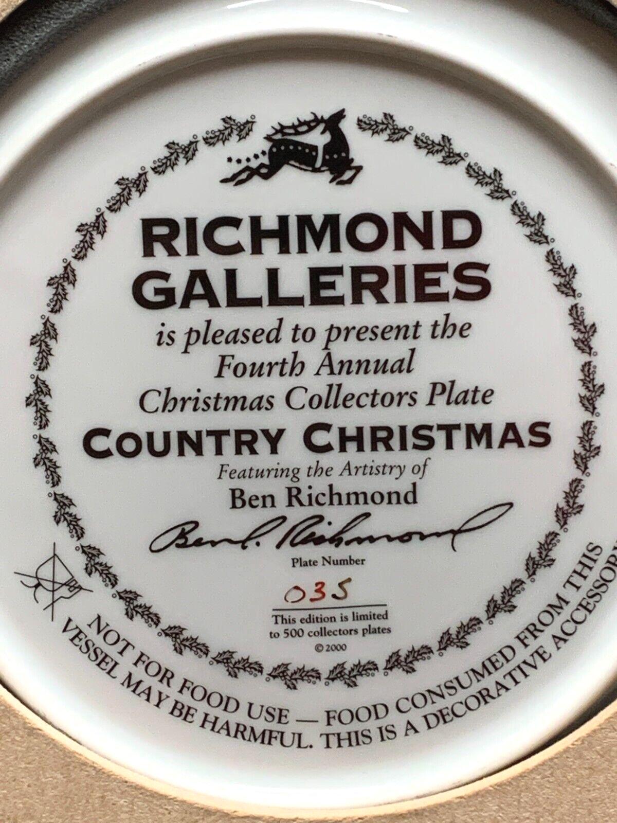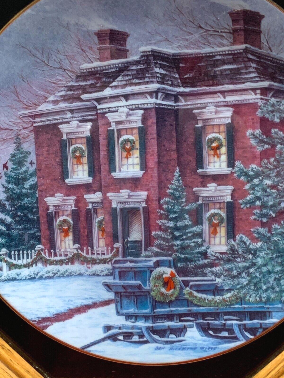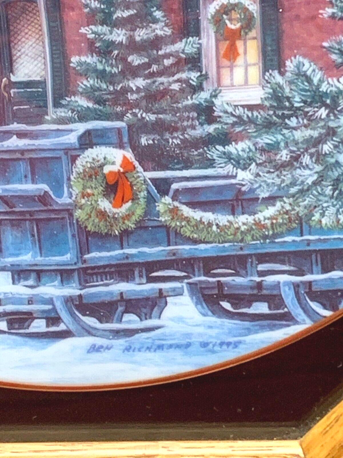 Ben Richmond Oak Framed Collector Plate "Country Christmas" Vintage Farmhouse