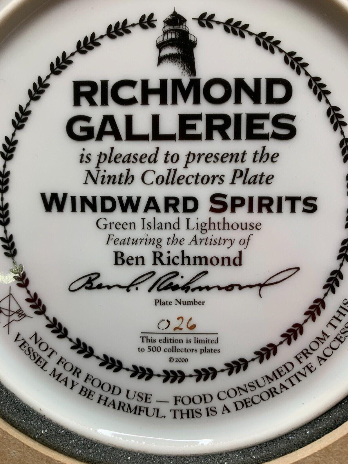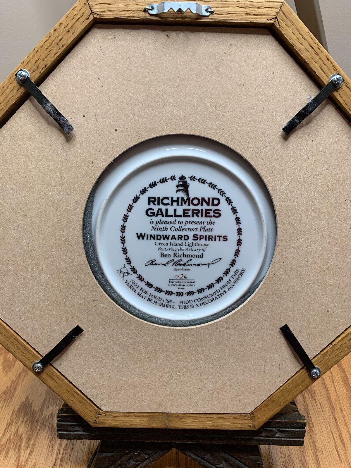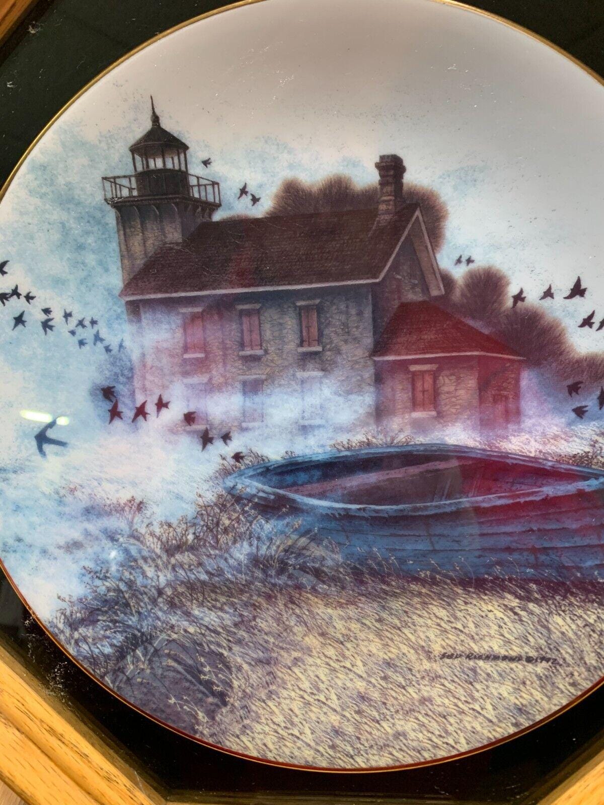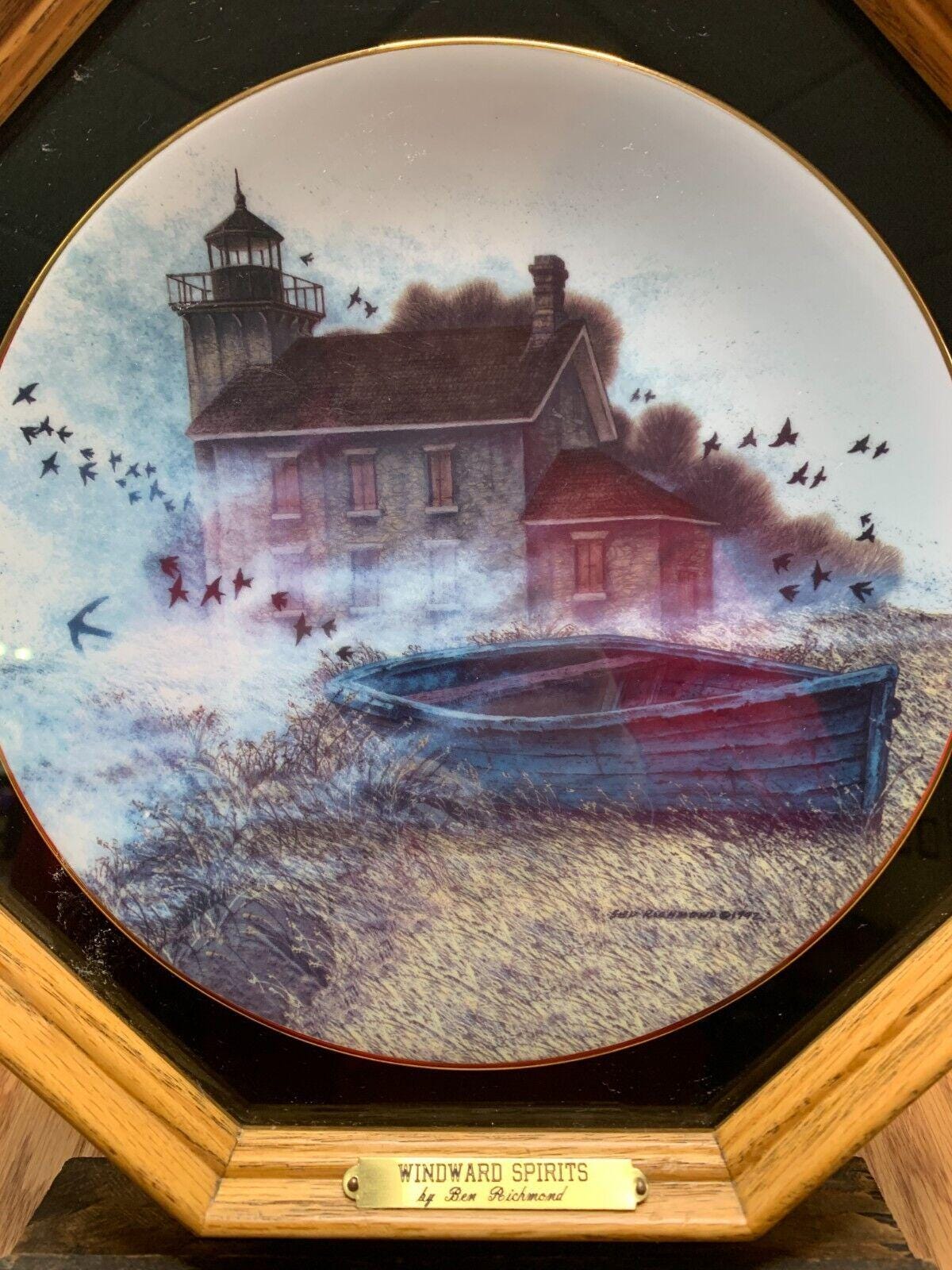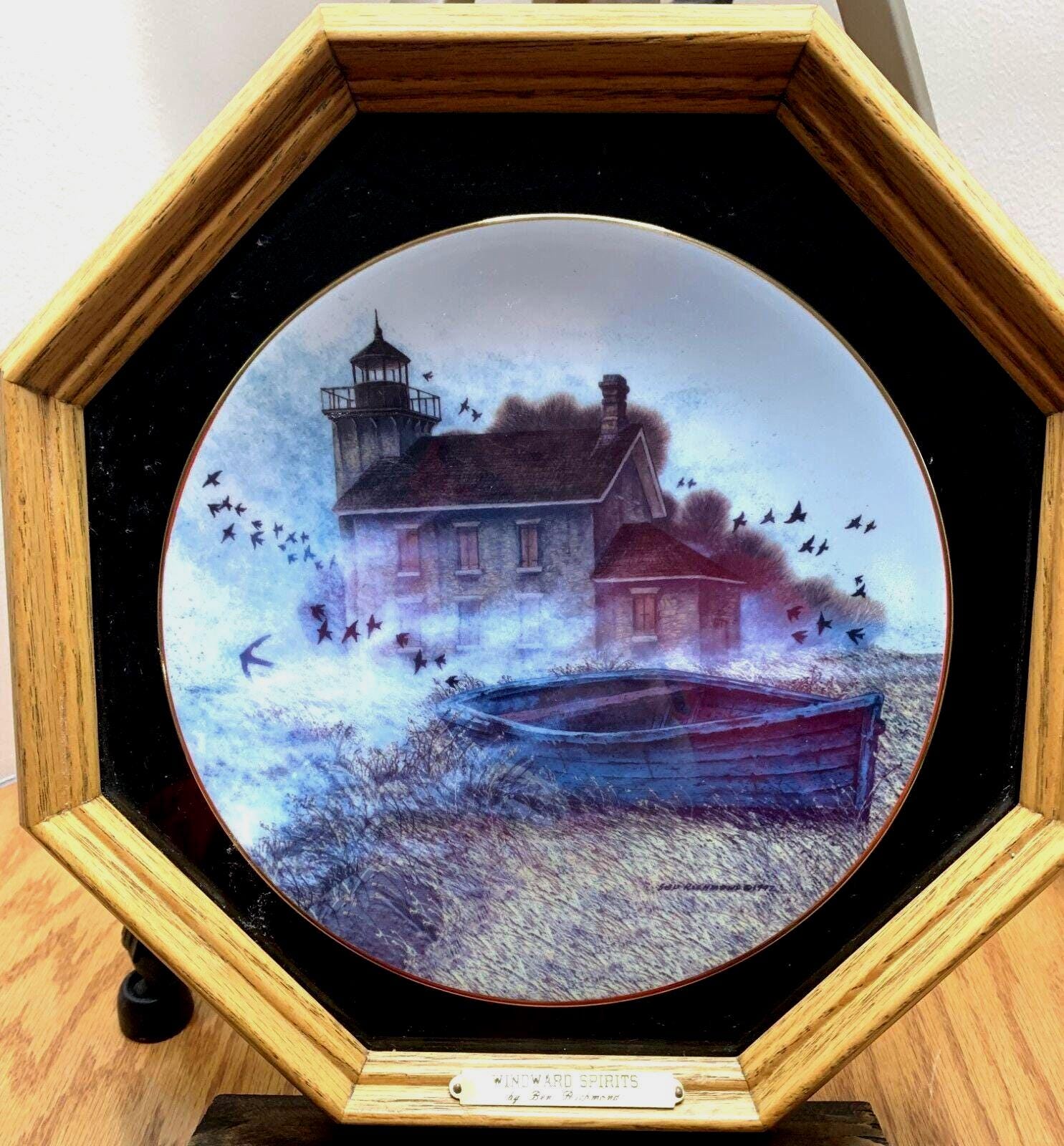 Ben Richmond Oak Framed Porcelain Collector Plate "Winward Spirit" Lighthouse Limited Edition 26 of 500 Nautical Lake Erie Ohio Landscape Art