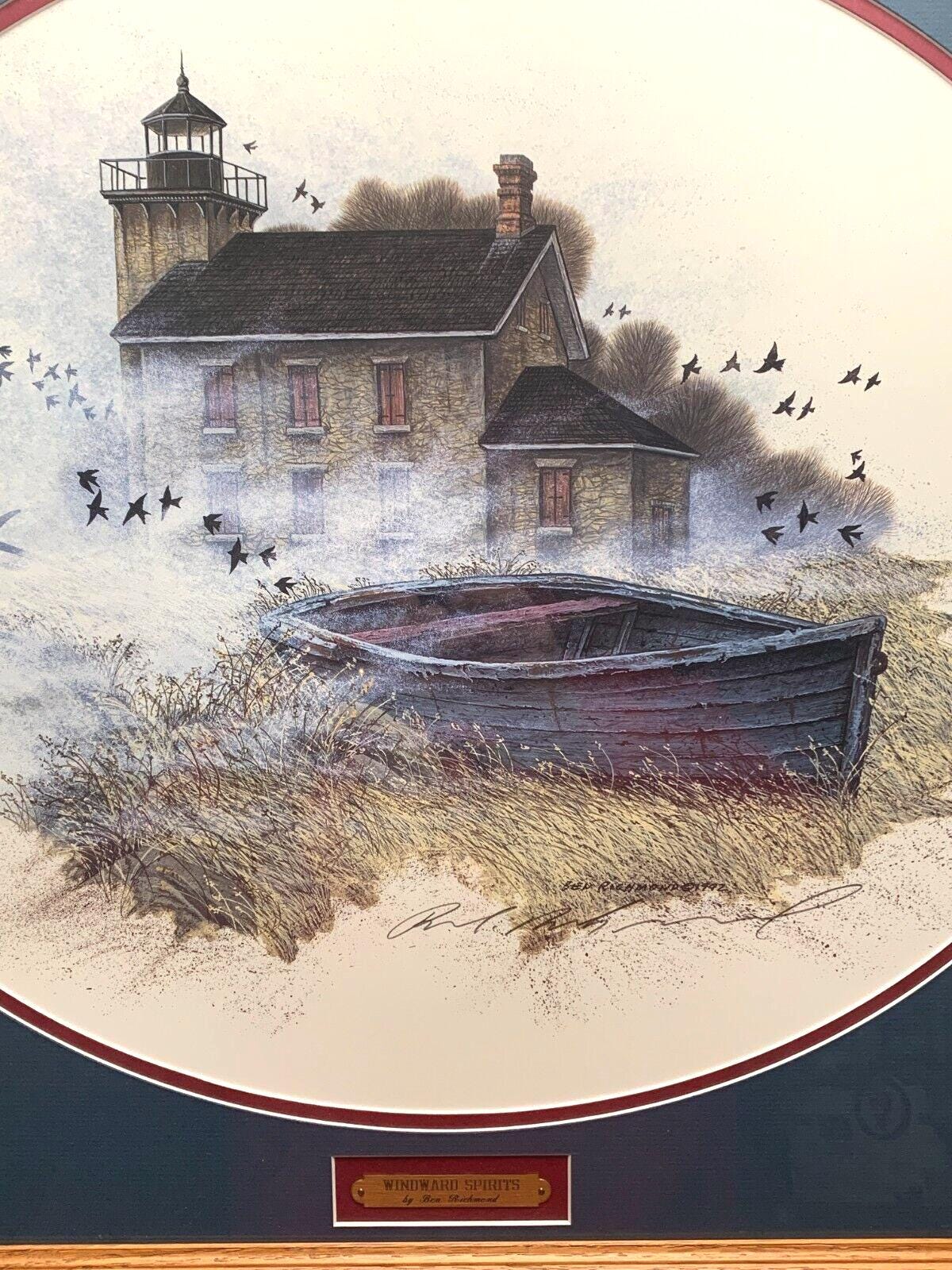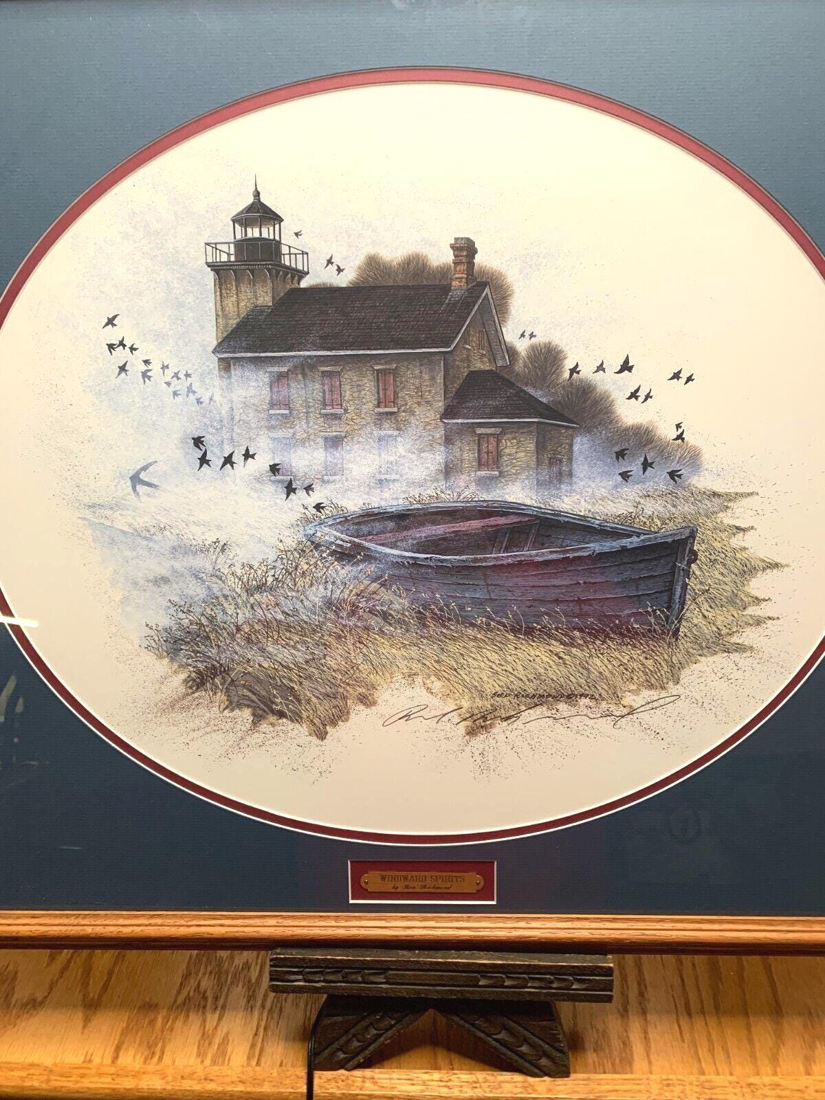 Professionally Framed Ben Richmond Winward Spirits Lake Erie Nautical Lithograph Hand Signed Under Glass From 1992 With COA
