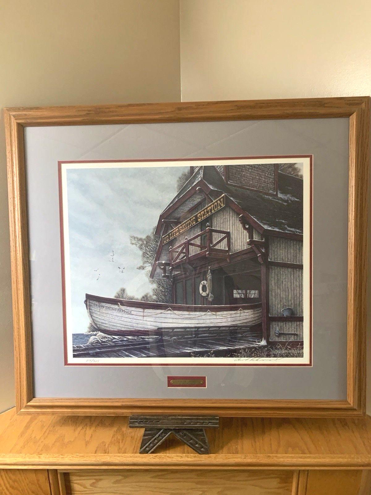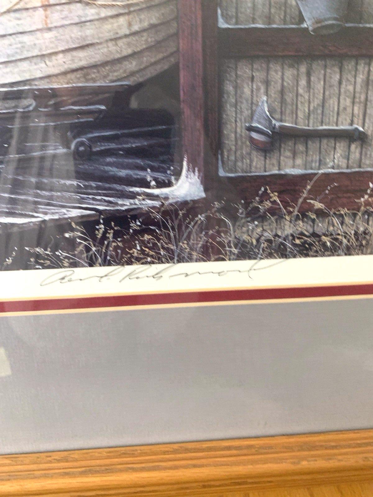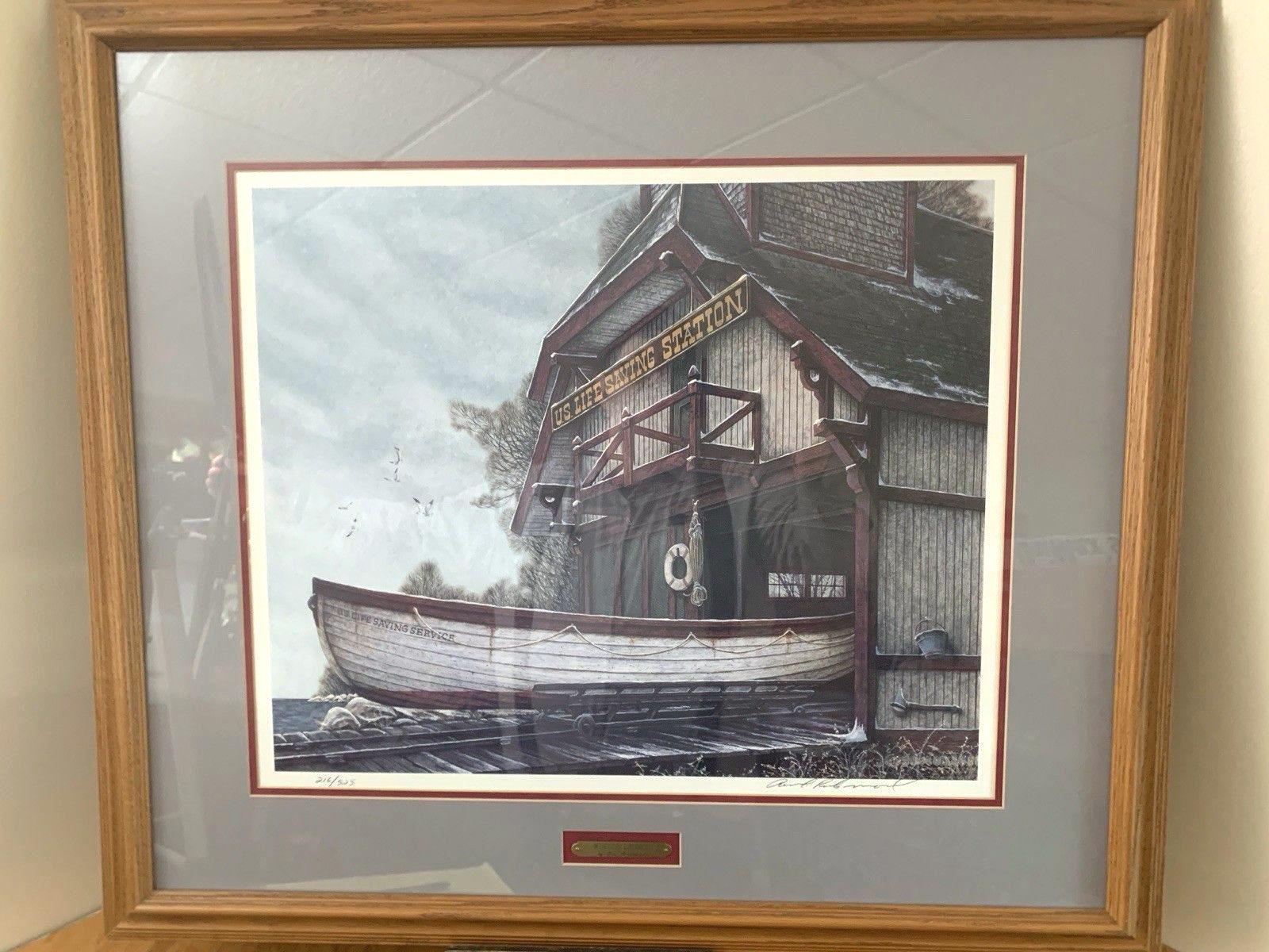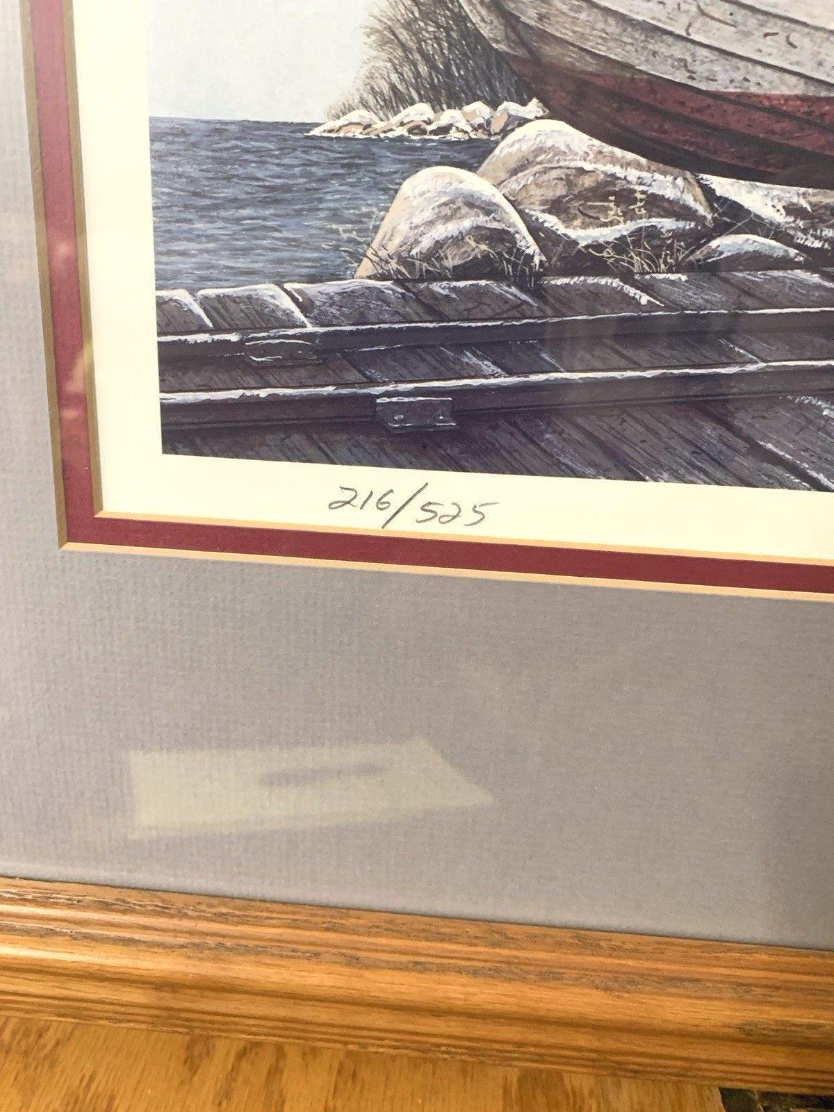 Professionally Framed Ben Richmond Winter Launch Lake Erie Nautical Lithograph LE 216/525 Hand Signed Conservation Glass From 1990 With COA
