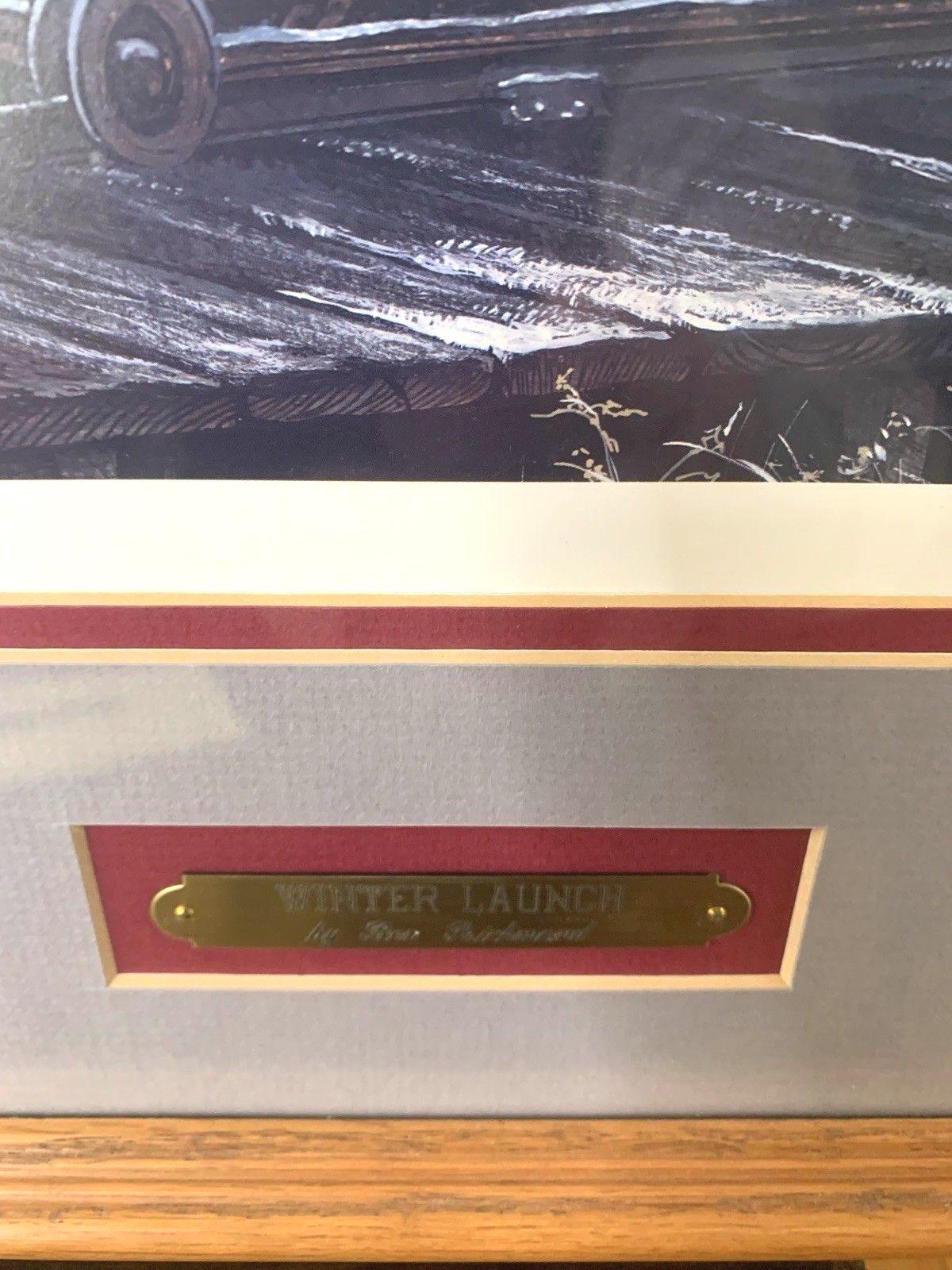 Discover the serene beauty of "Winter Launch" by Ben Richmond, a hand-signed and professionally framed lithography with a nautical and maritime theme that captures the essence of Lake Erie!