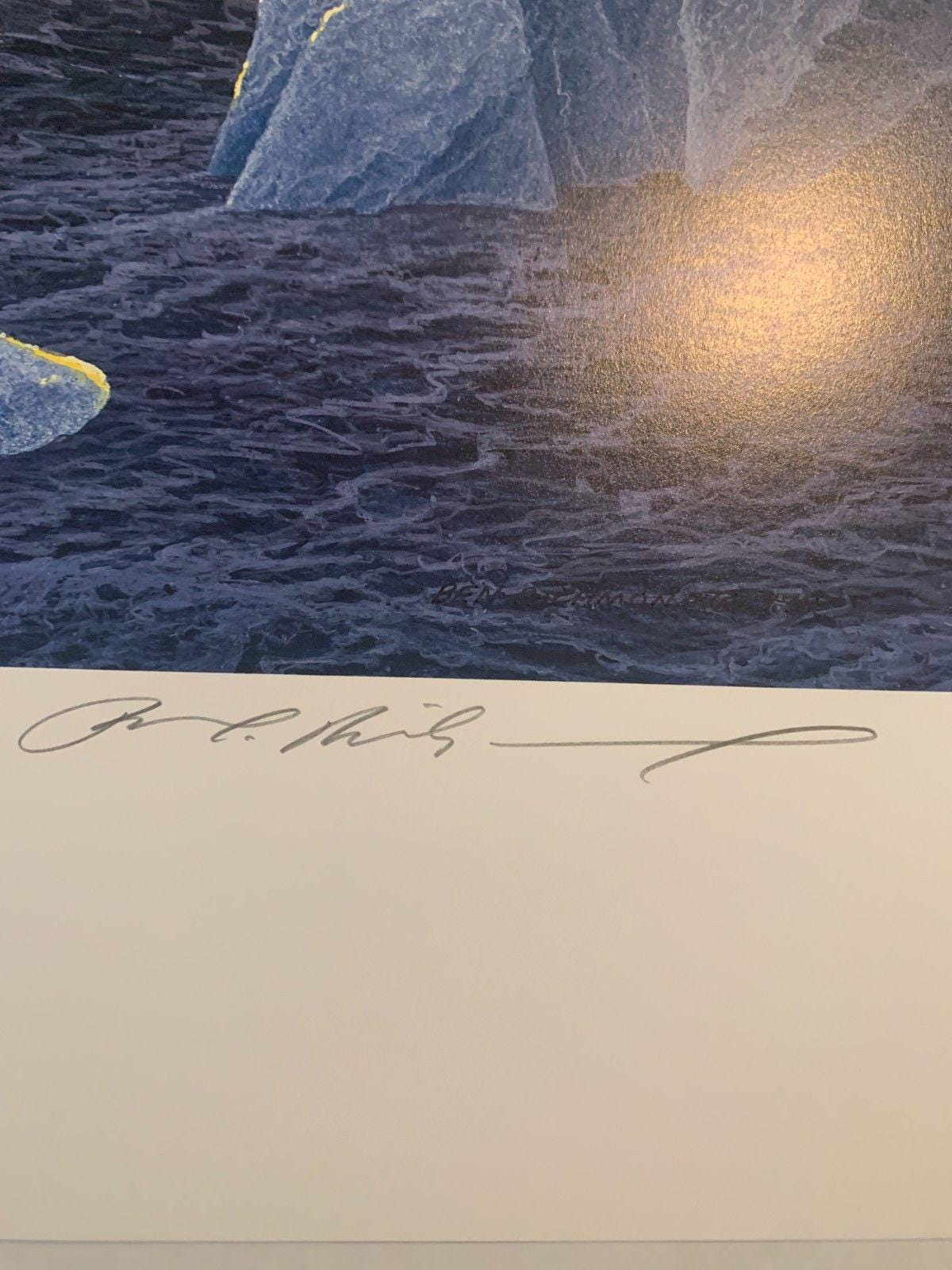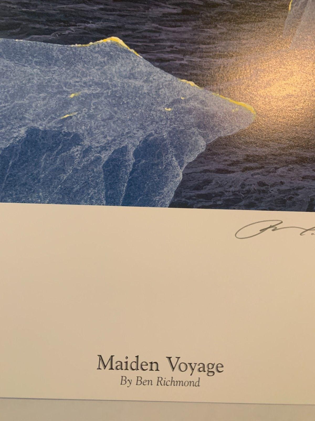 Discover the high seas of the first and only trip of the Titanic through the ice waters with "Maiden Voyage" by Ben Richmond. This hand-signed lithograph captures the essence of that first journey at sea!