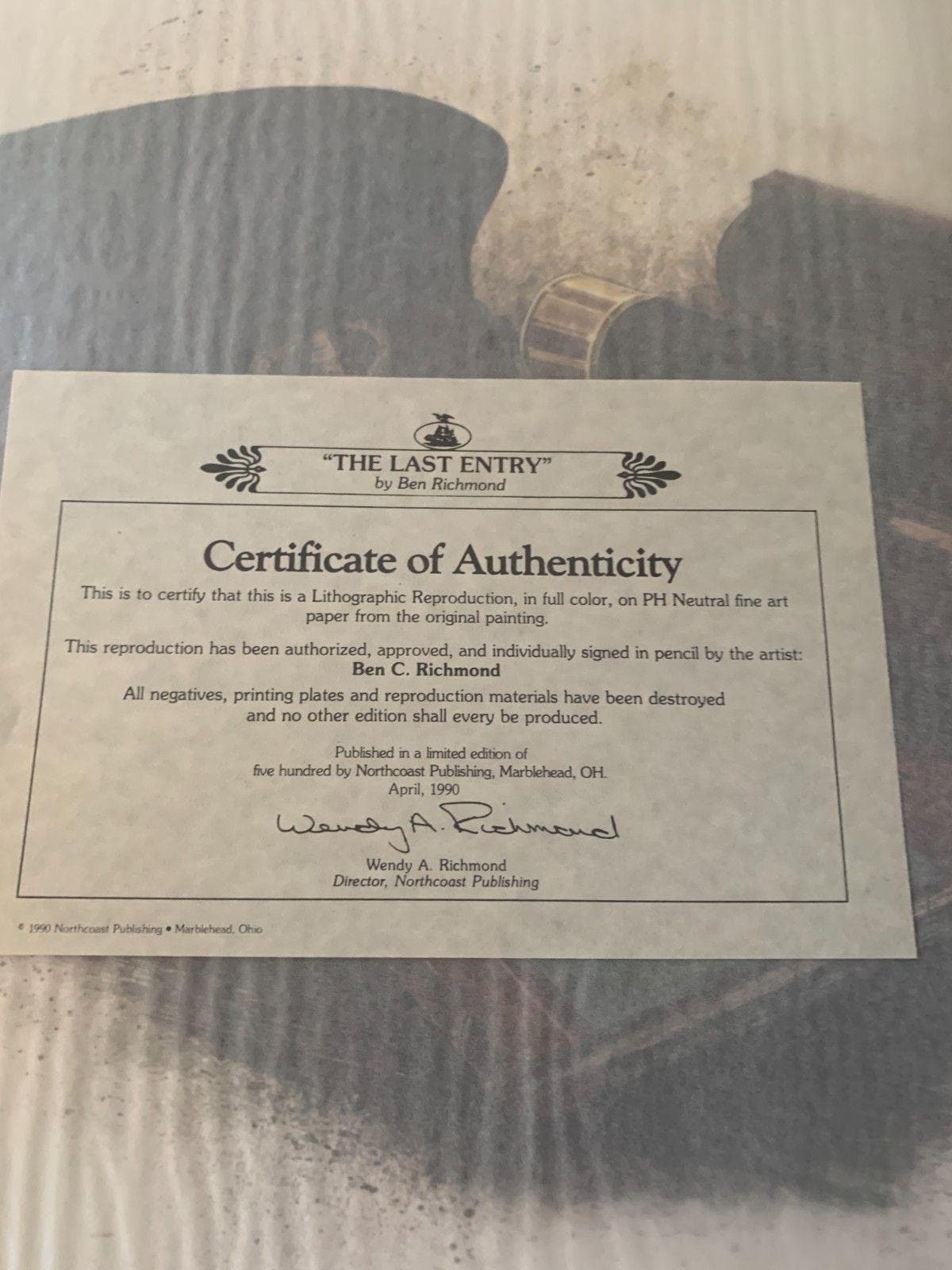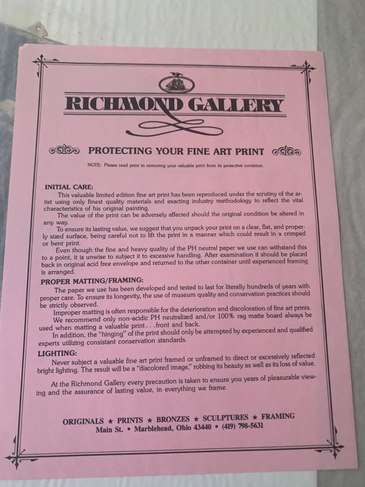 We are currently working with an extensive collection of Ben Richmond art from a private collection. We have numerous framed and unframed prints that will be listed soon. Contact us if you are looking for a specific print.