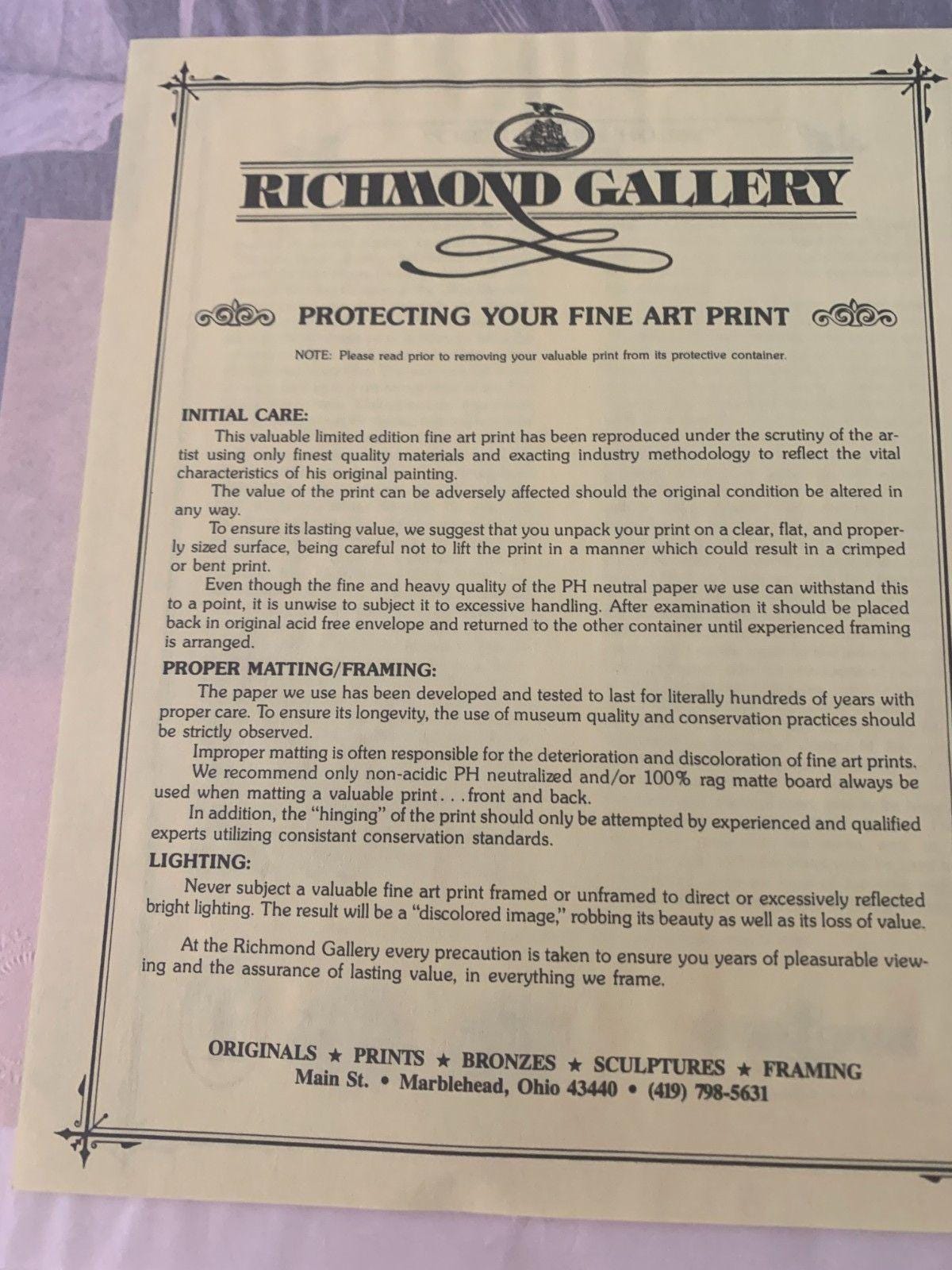 We are currently working with an extensive collection of Ben Richmond art from a private collection. We have numerous framed and unframed prints that will be listed soon. Contact us if you are looking for a specific print.