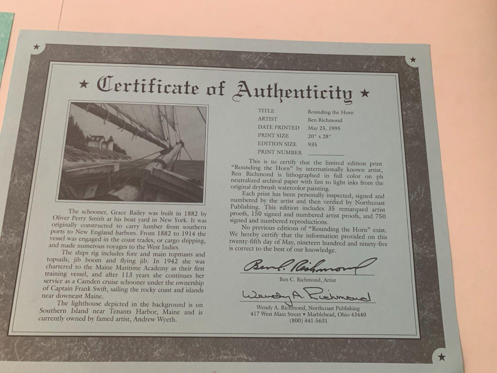 We are currently working with an extensive collection of Ben Richmond art from a private collection. We have numerous framed and unframed prints that will be listed soon. Contact us if you are looking for a specific print.