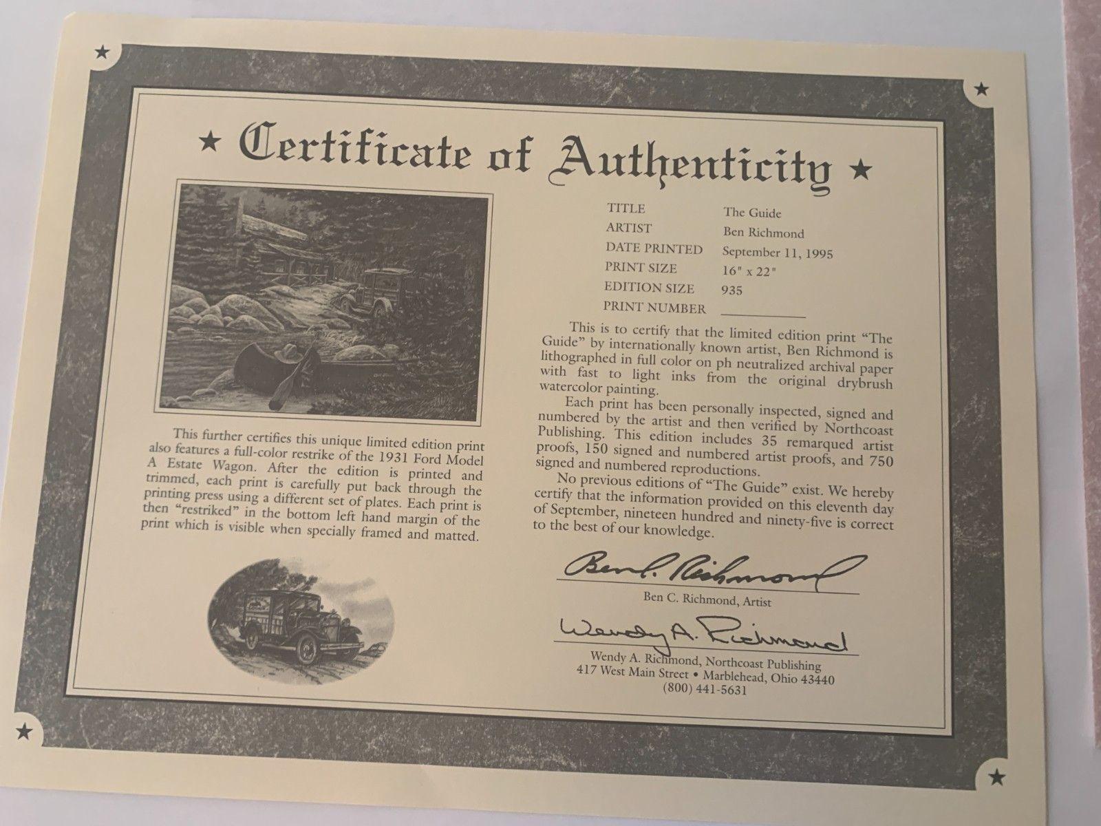 We are currently working with an extensive collection of Ben Richmond Art from a private collection. We have numerous framed and unframed prints that will be listed soon. Contact us if you are looking for a specific print.