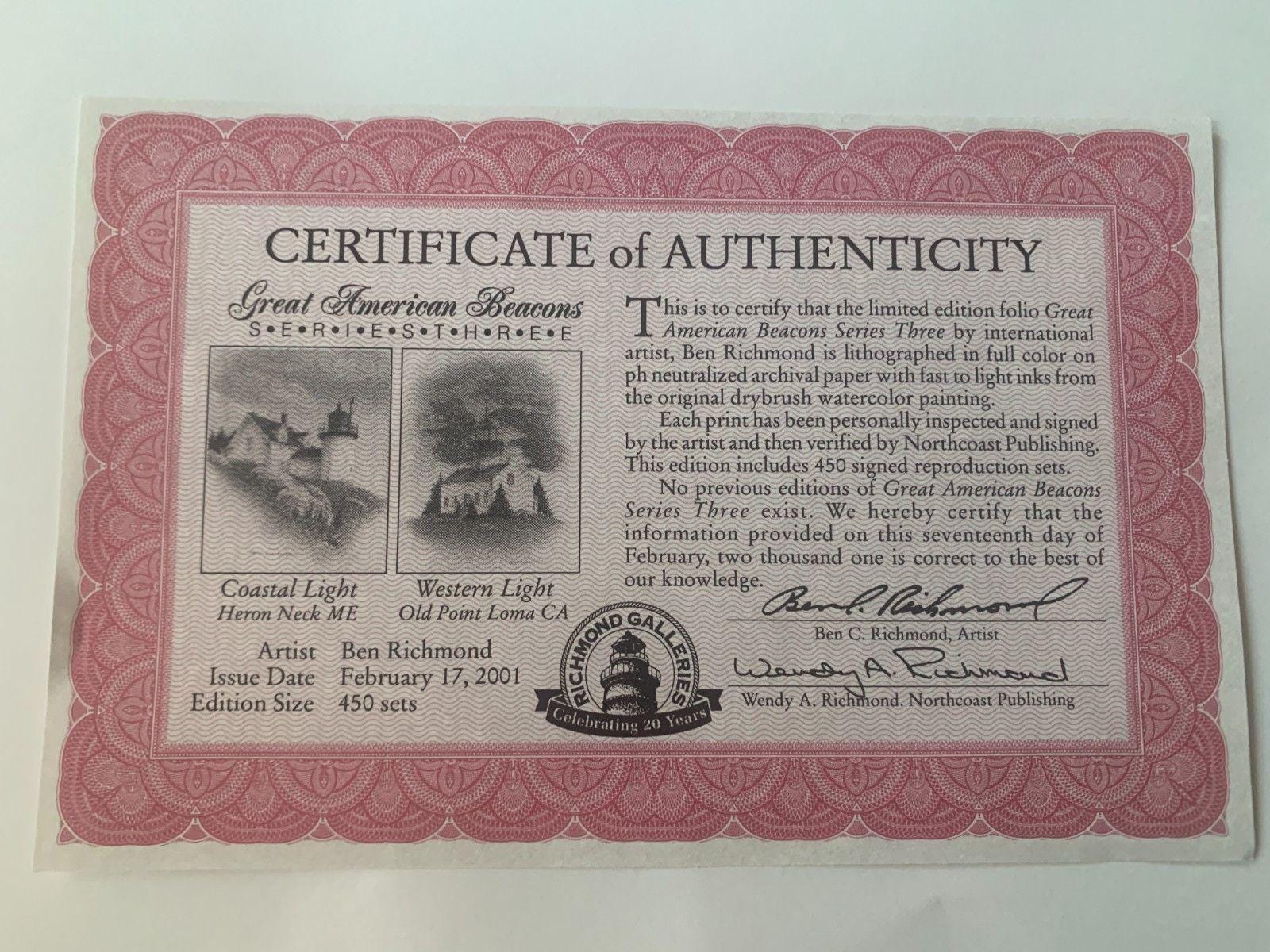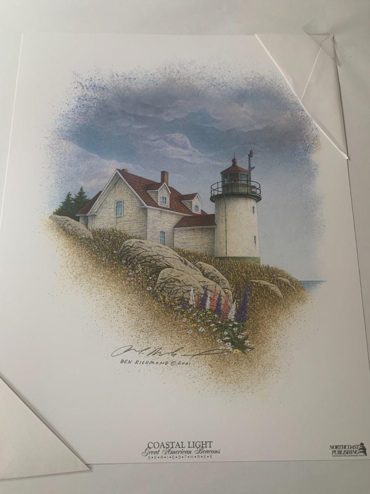 Capturing the rustic lighthouse on each coast of the United States is captured in The Great American Beacon Series by Ben Richmond. This pair of hand-signed lithographs captures the essence and beauty of the lighthouse in its natural setting.