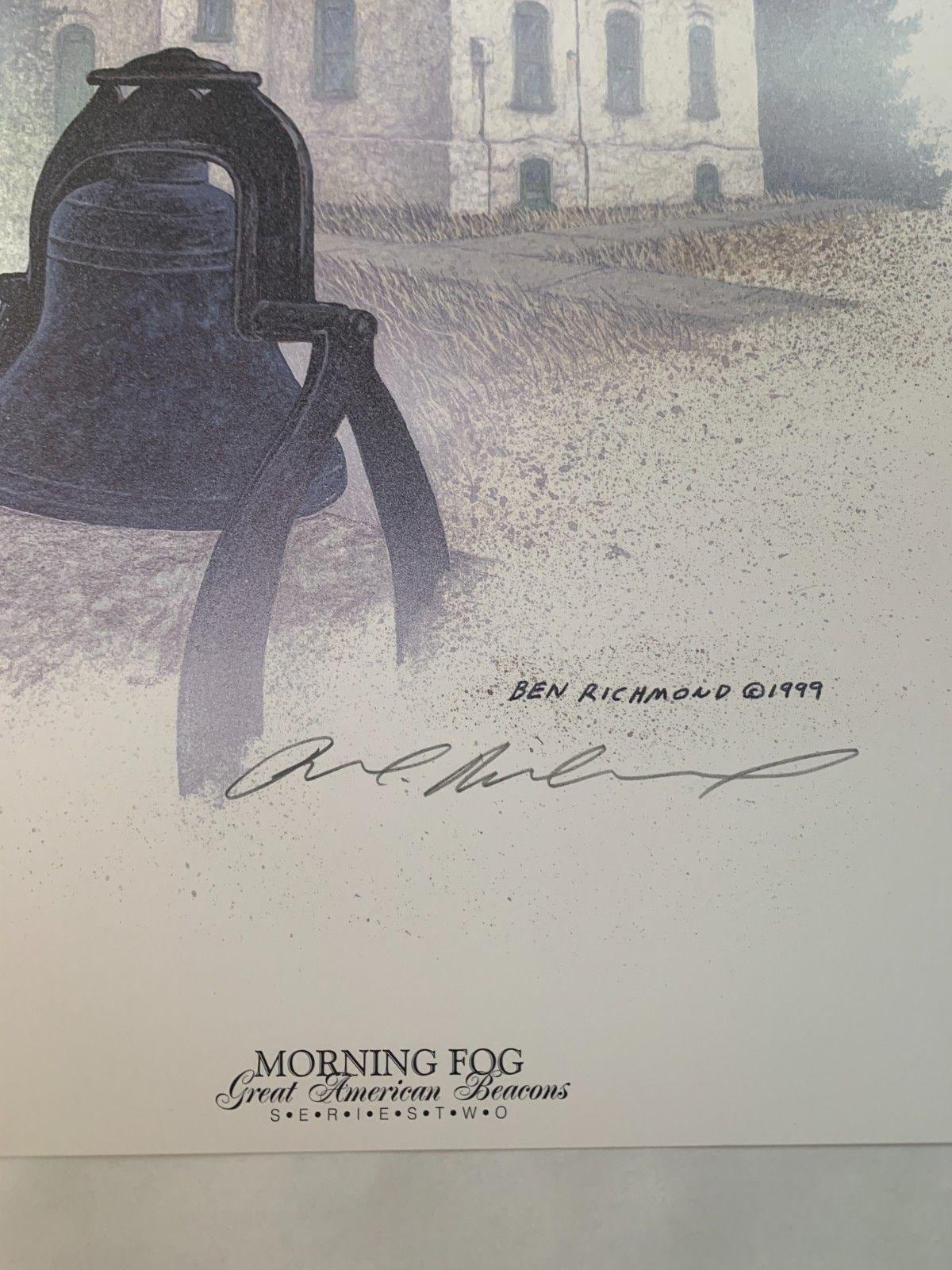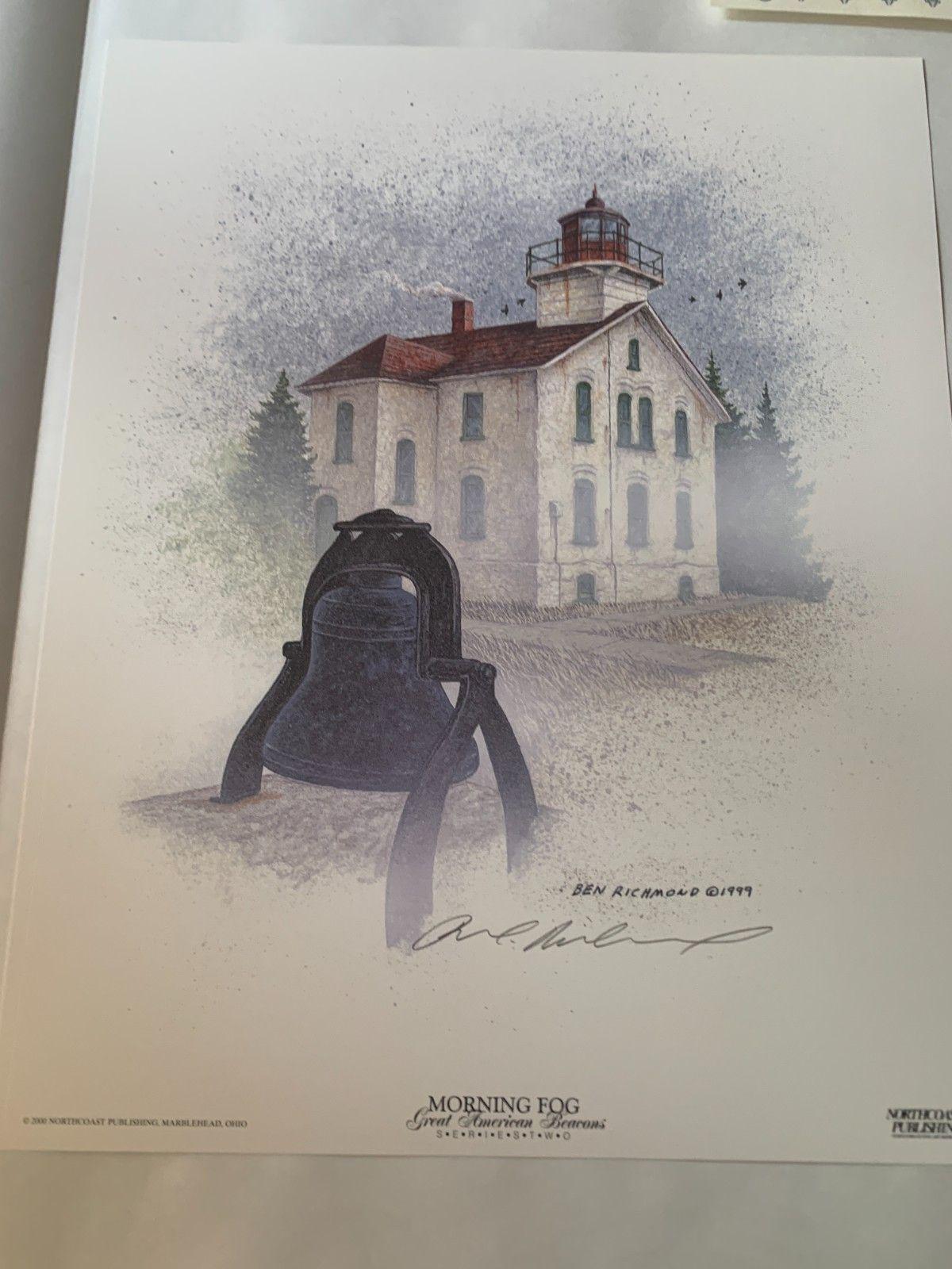 "Morning Fog Grand Traverse Michigan" Limited Edition to 450 Sets Hand Signed Unframed Lithograph Lighthouse Wall Art Nautical Rustic Artwork
