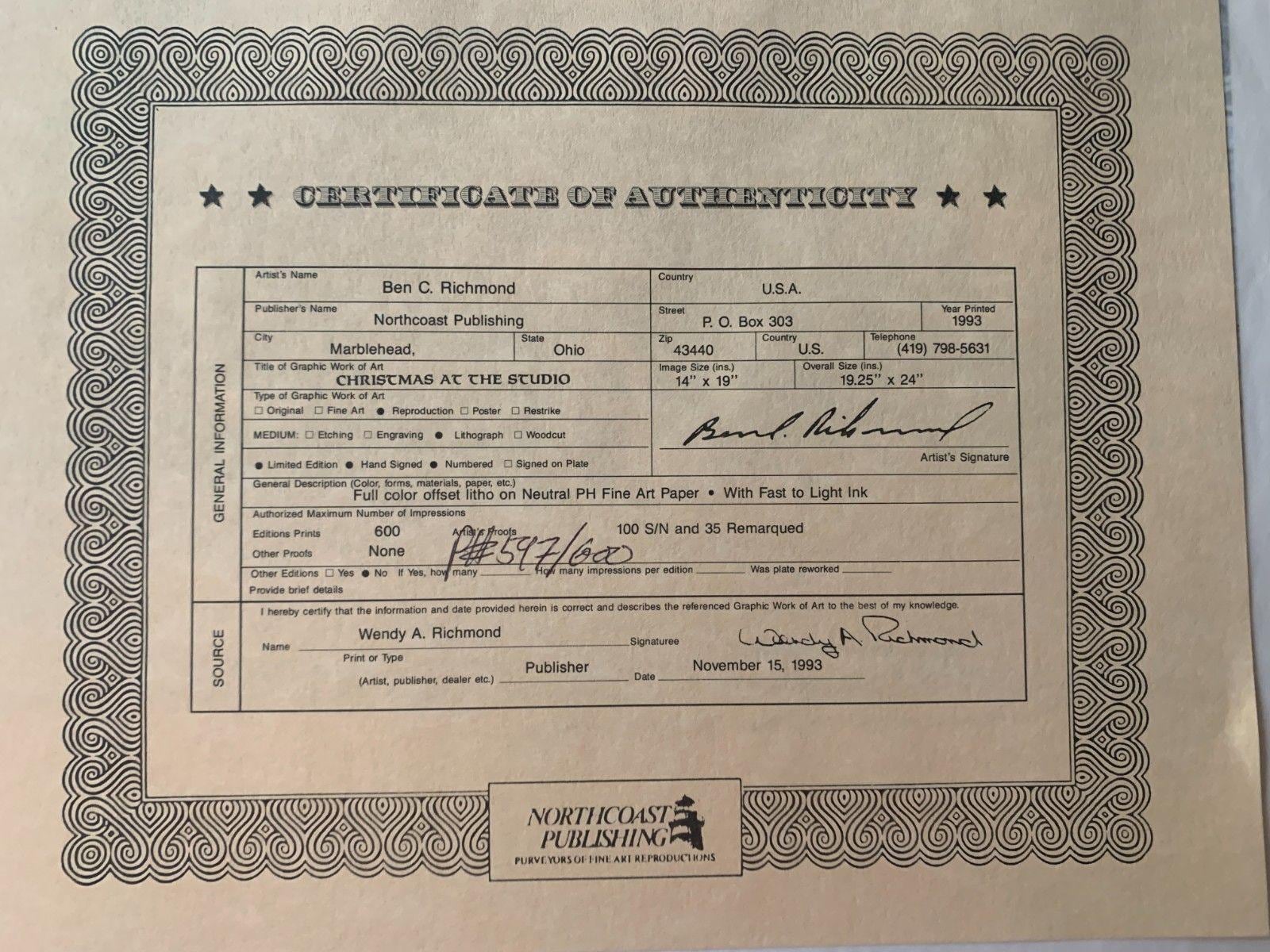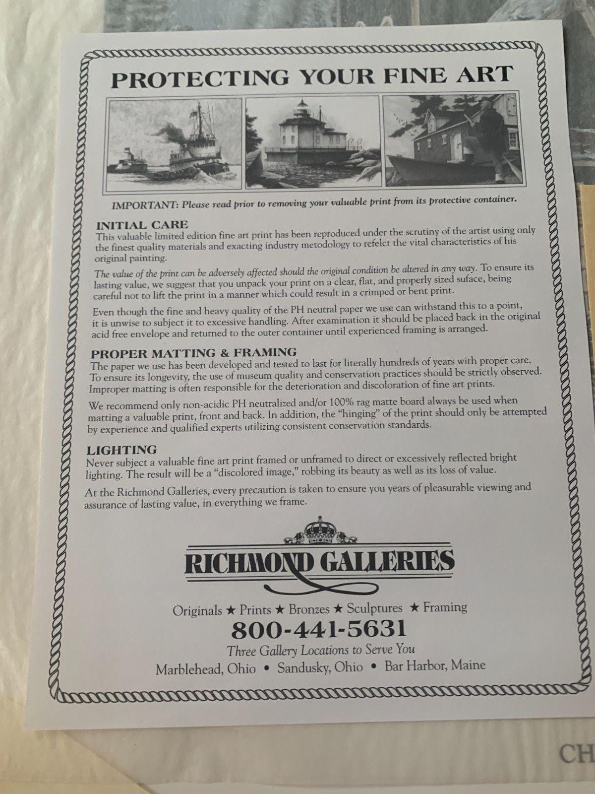 We are currently working with an extensive collection of Ben Richmond Art from a private collection. We have numerous framed and unframed prints that will be listed soon. Contact us if you are looking for a specific print.