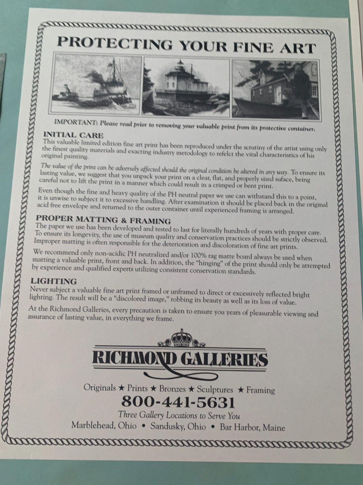We are currently working with an extensive collection of Ben Richmond Art from a private collection. We have numerous framed and unframed prints that will be listed soon. Contact us if you are looking for a specific print.