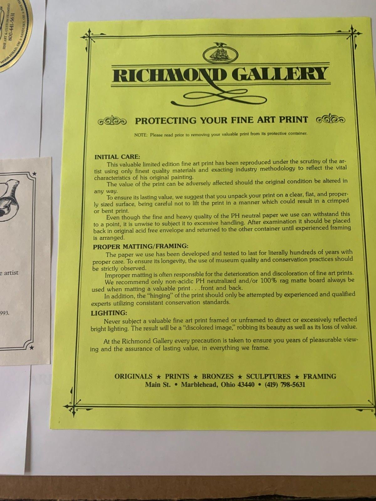 We are currently working with an extensive collection of Ben Richmond Art from a private collection. We have numerous framed and unframed prints that will be listed soon. Contact us if you are looking for a specific print.