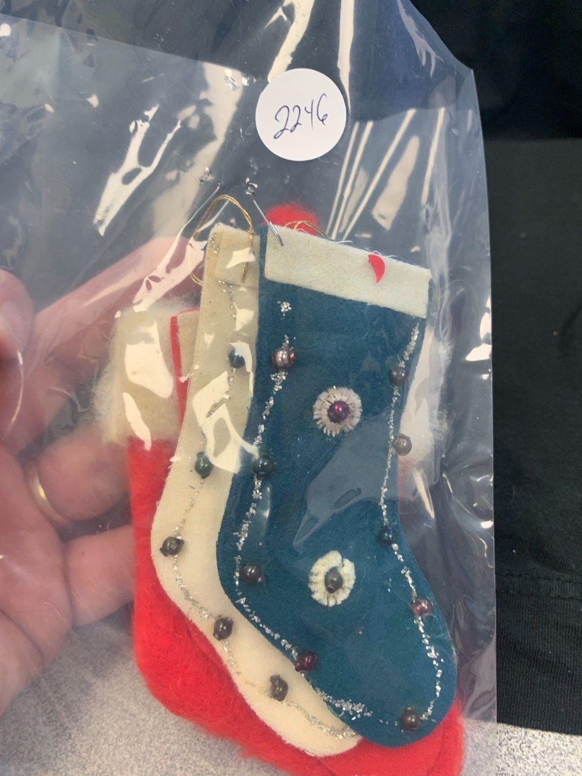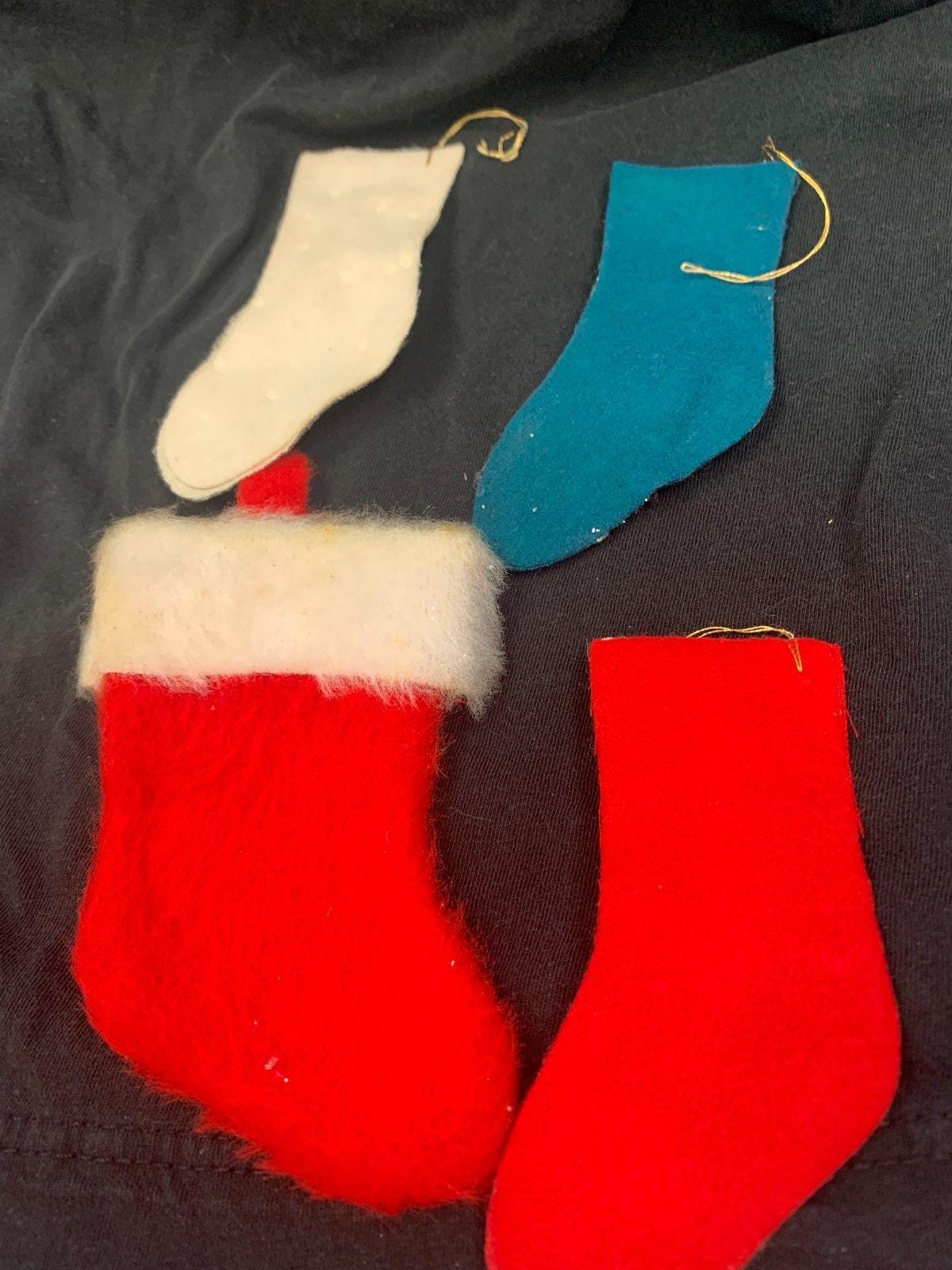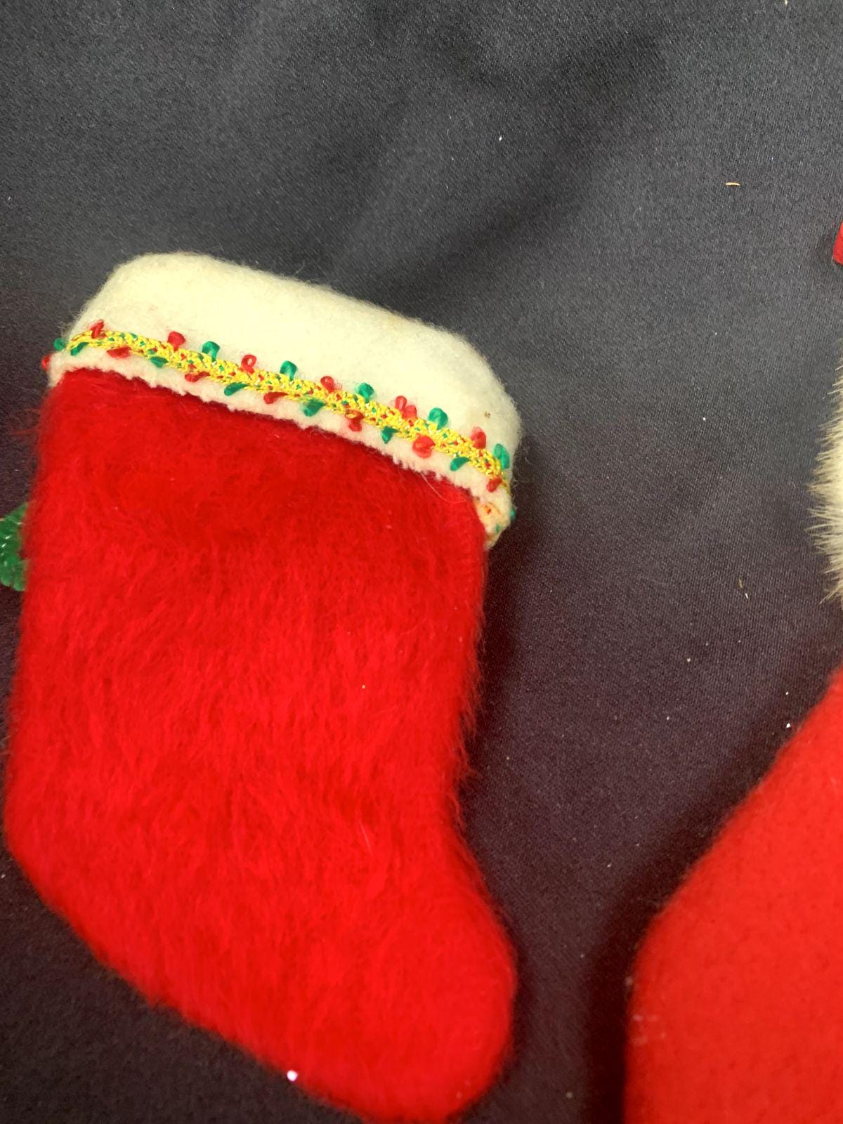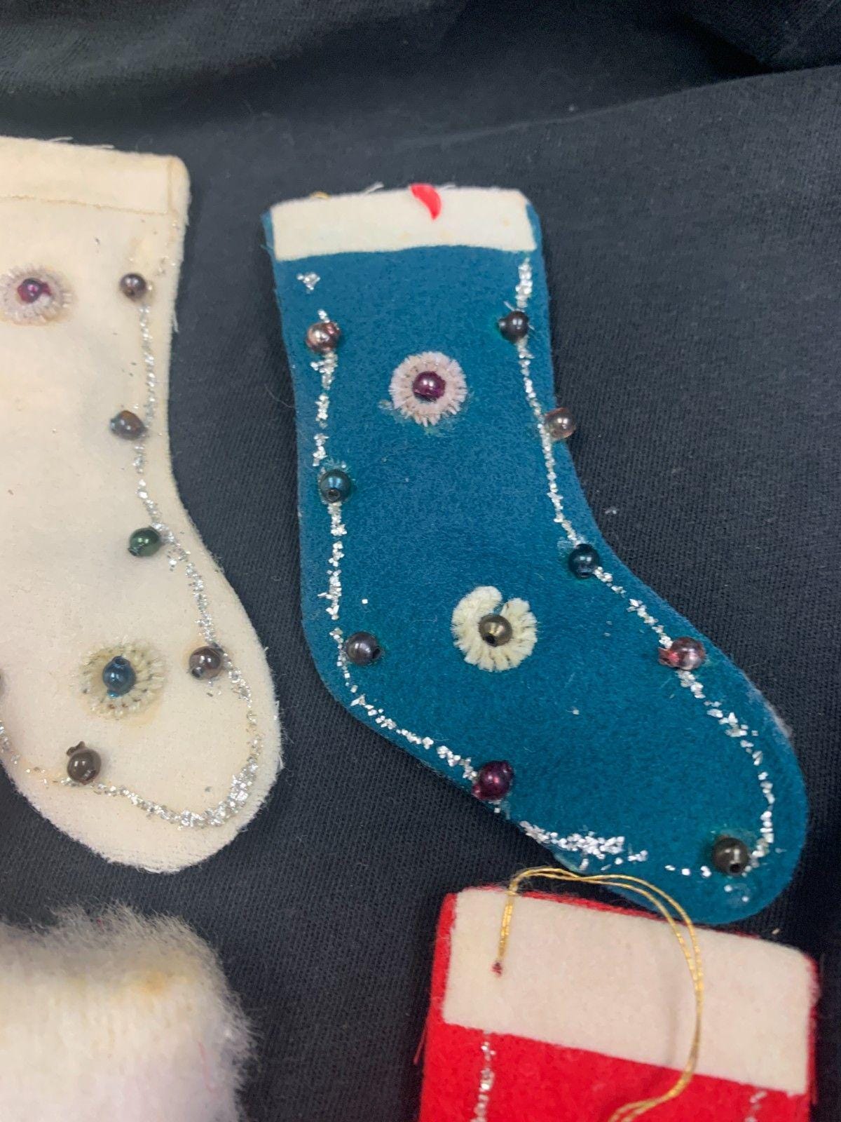 Total of nine stockings - all are miniature-sized - fur or felt - some with accents and can be used as tree ornaments or for decorating!