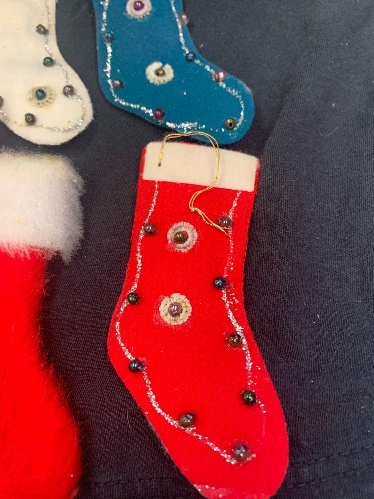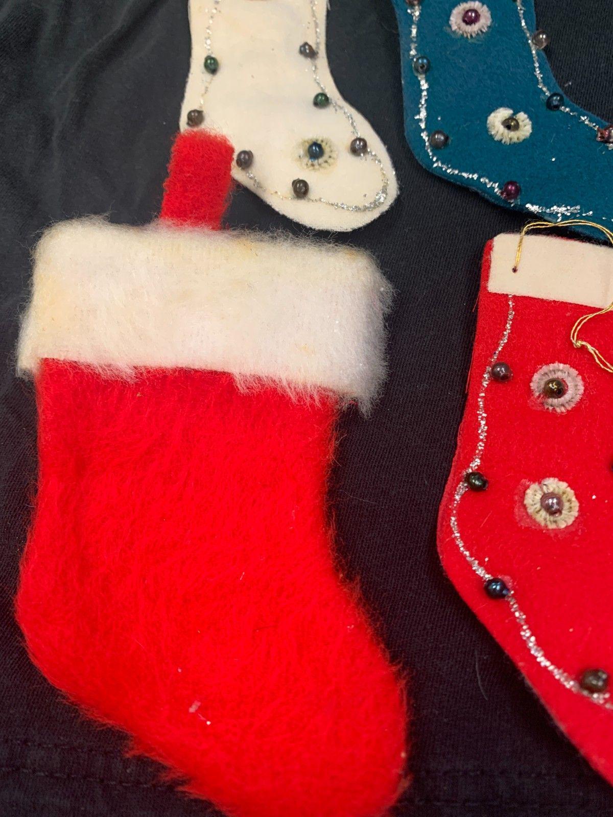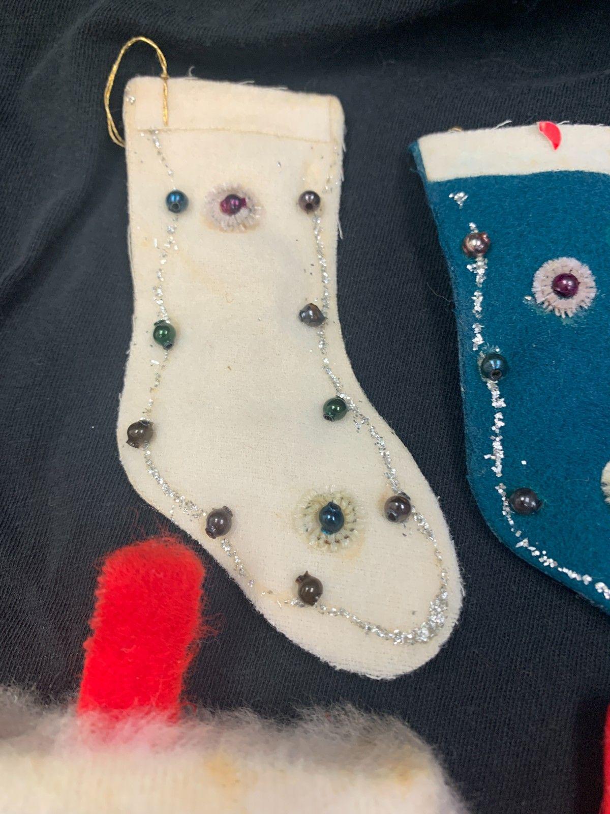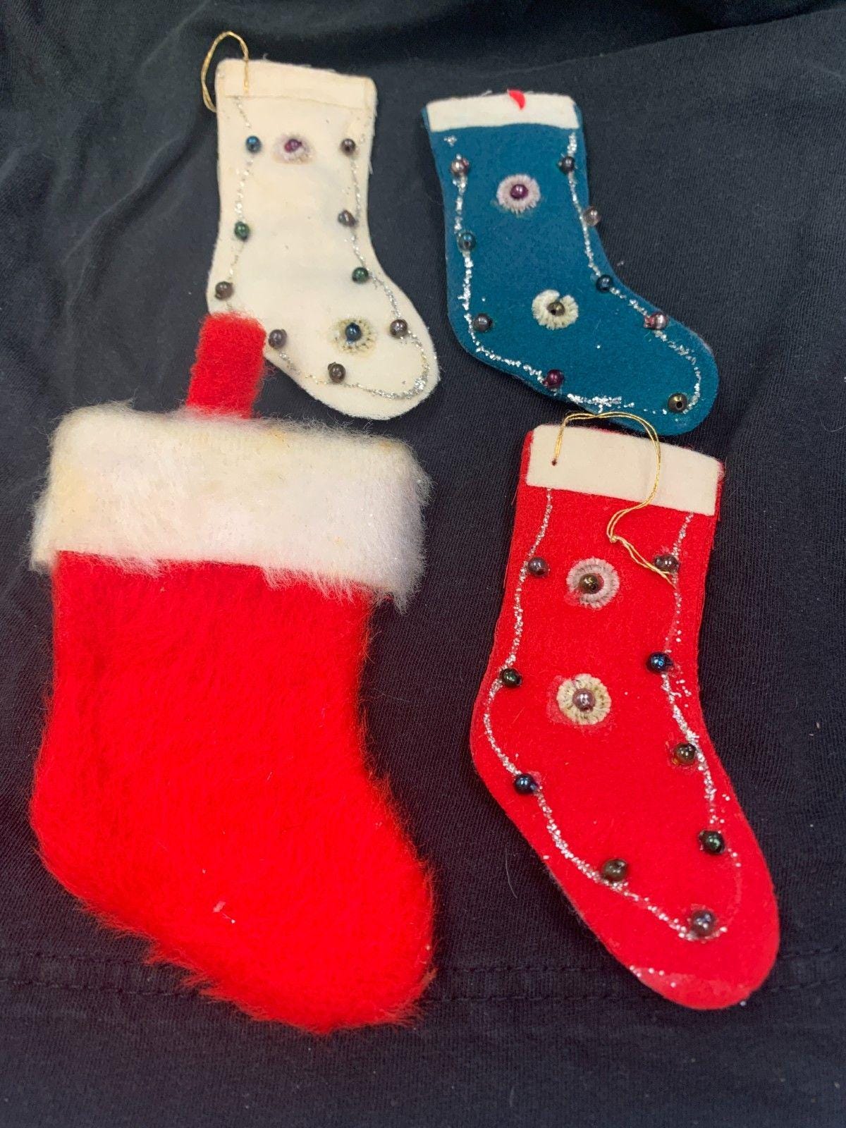 Total of nine stockings - all are miniature-sized - fur or felt - some with accents and can be used as tree ornaments or for decorating!