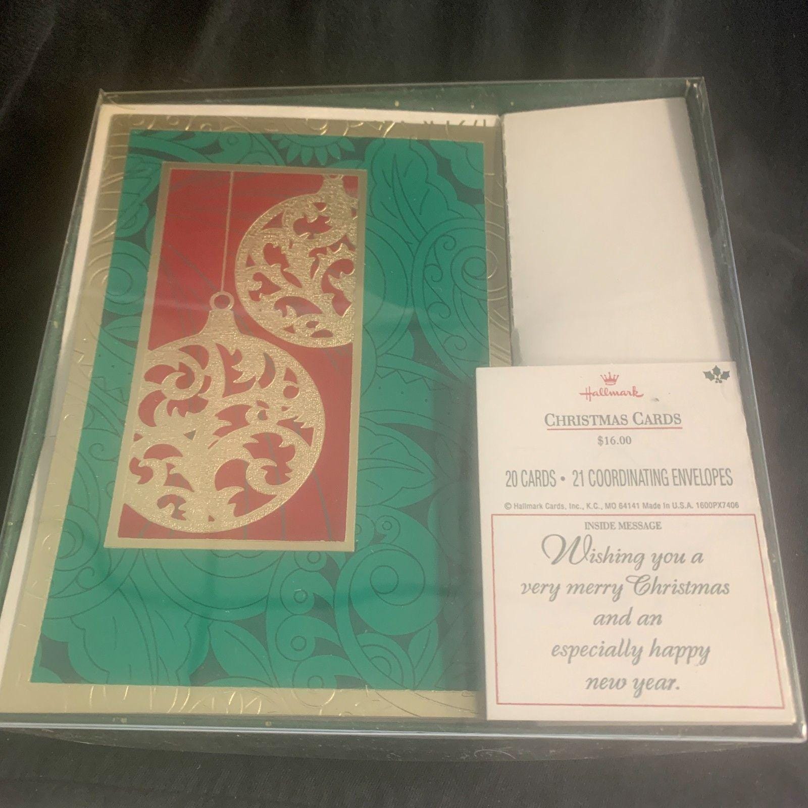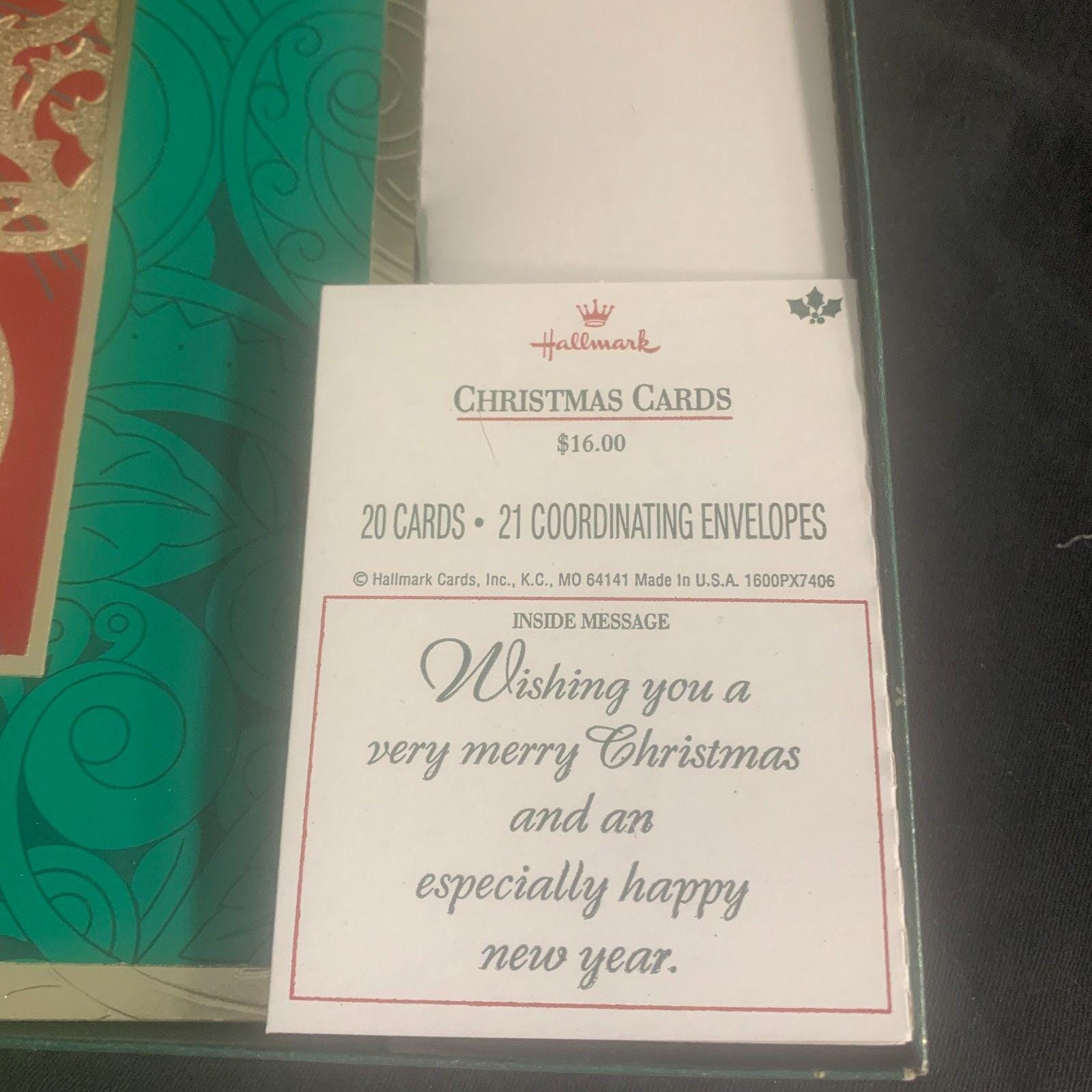 Message inside: "Wishing you a very merry Christmas and an especially happy new year." Made in U.S.A. by Hallmark Cards, Inc., Kansas City, MO.