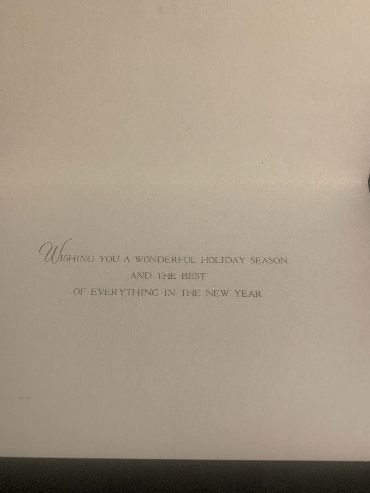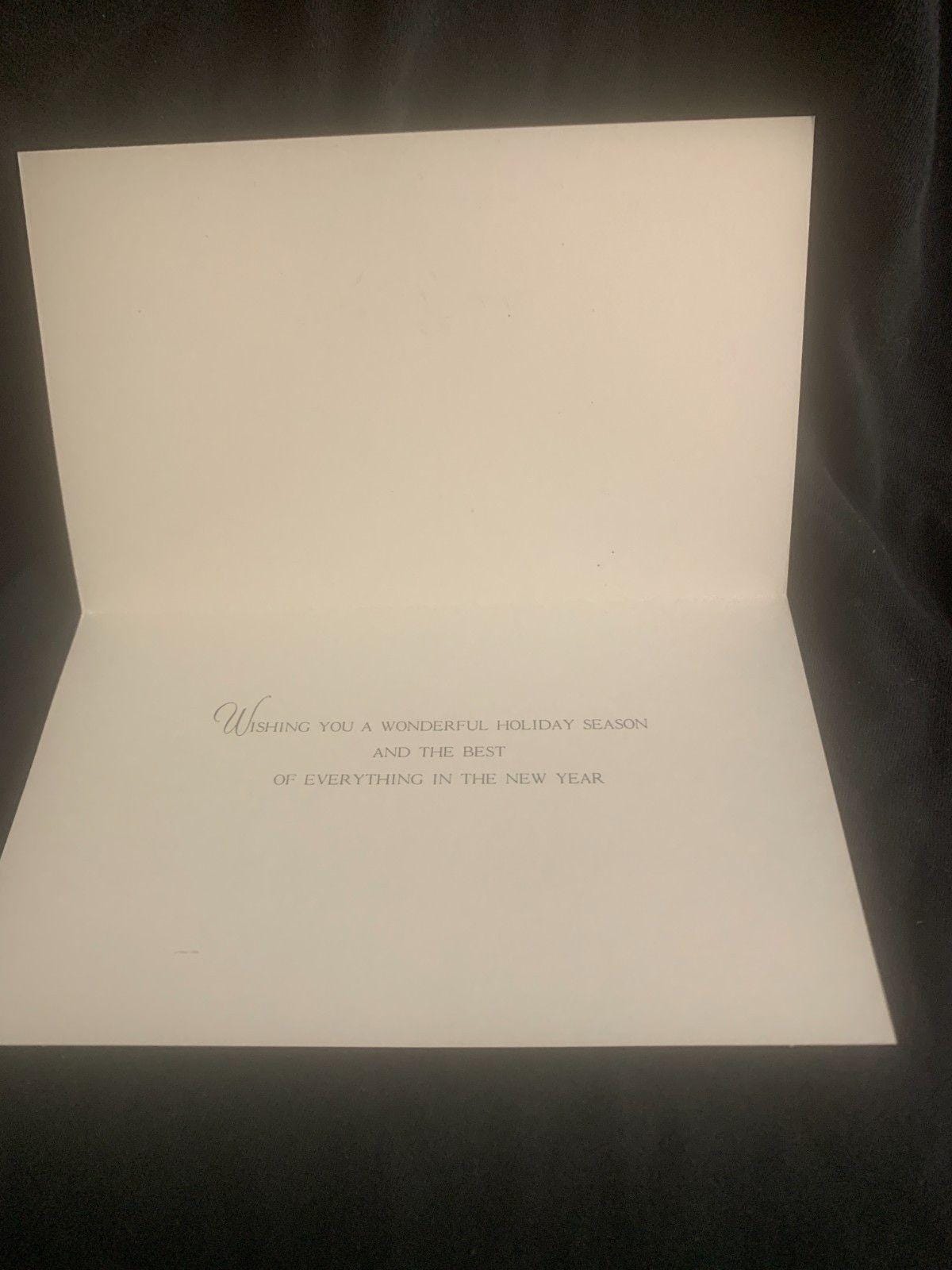 Message inside: "Wishing you a wonderful holiday season and the best of everything in the New Year".