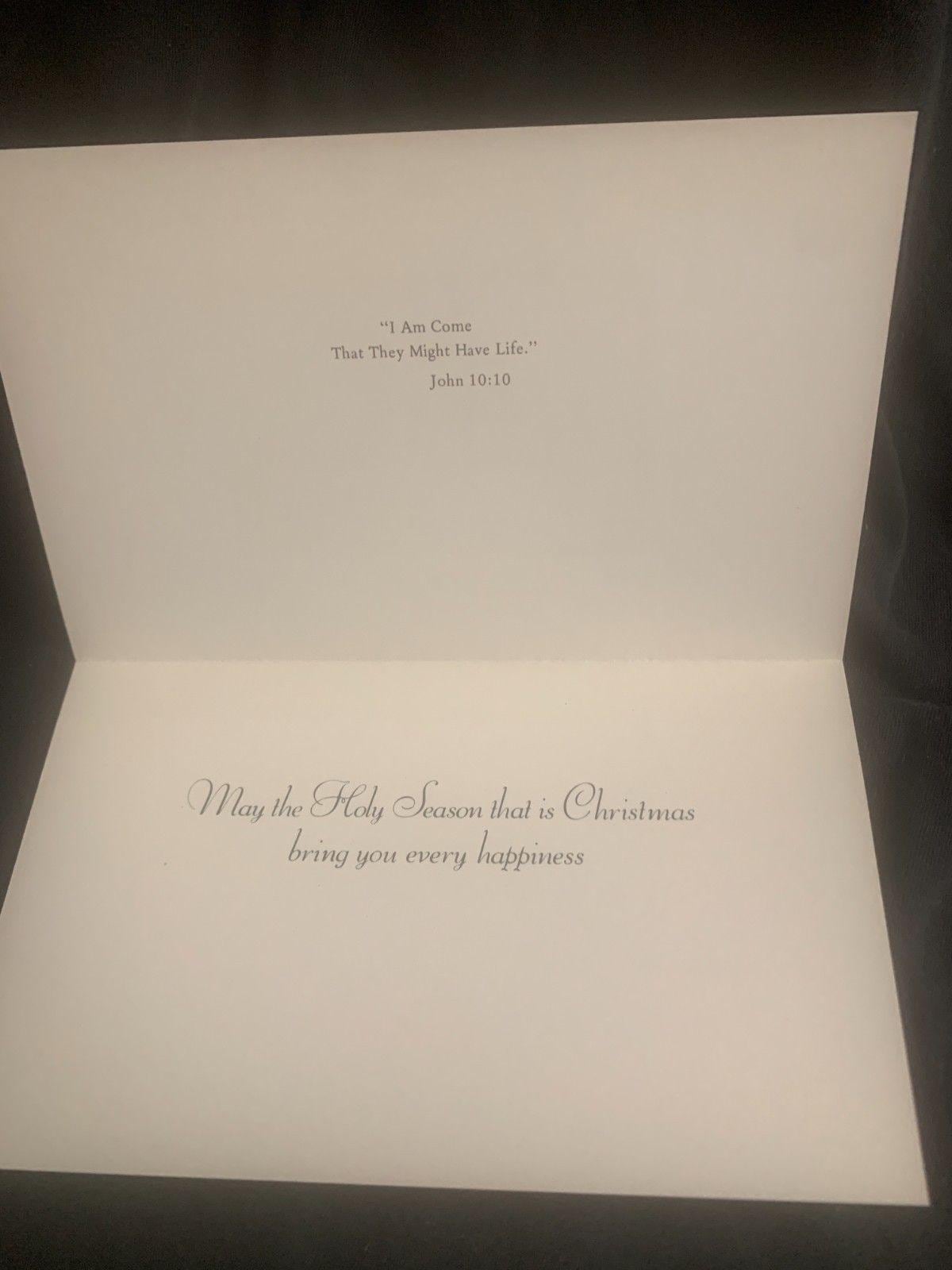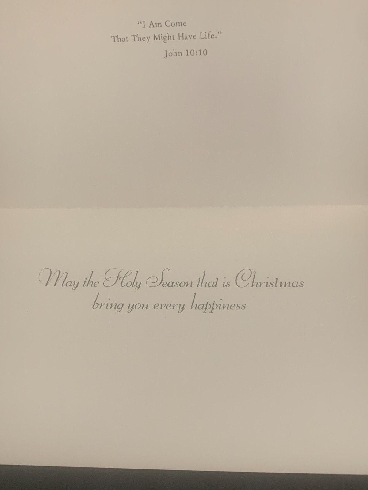 Message inside: "May the Holy Season that is Christmas bring you every happiness."
