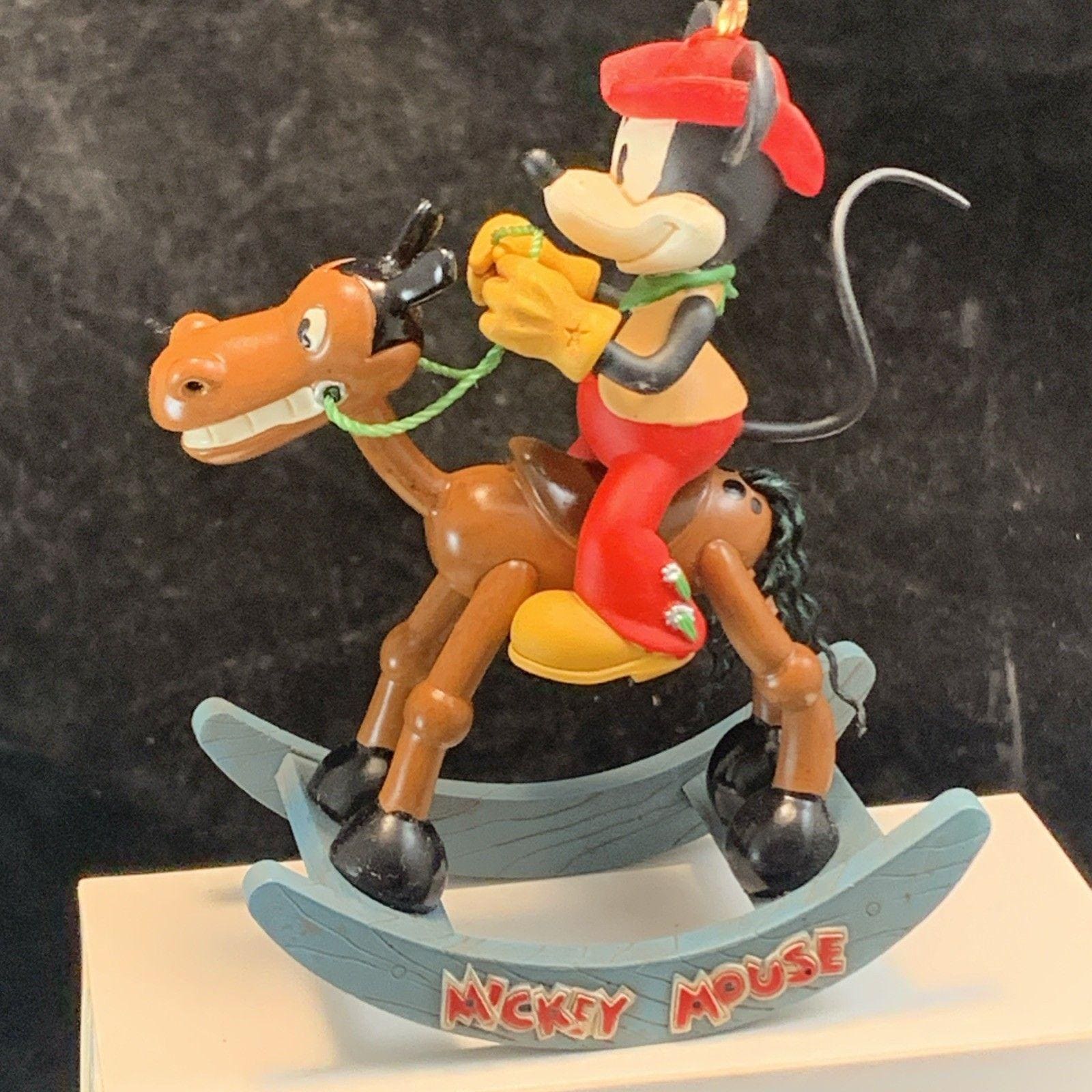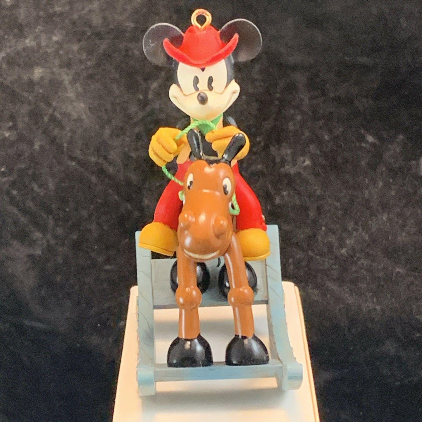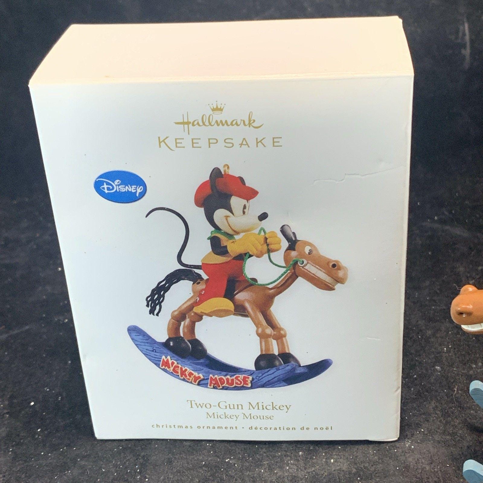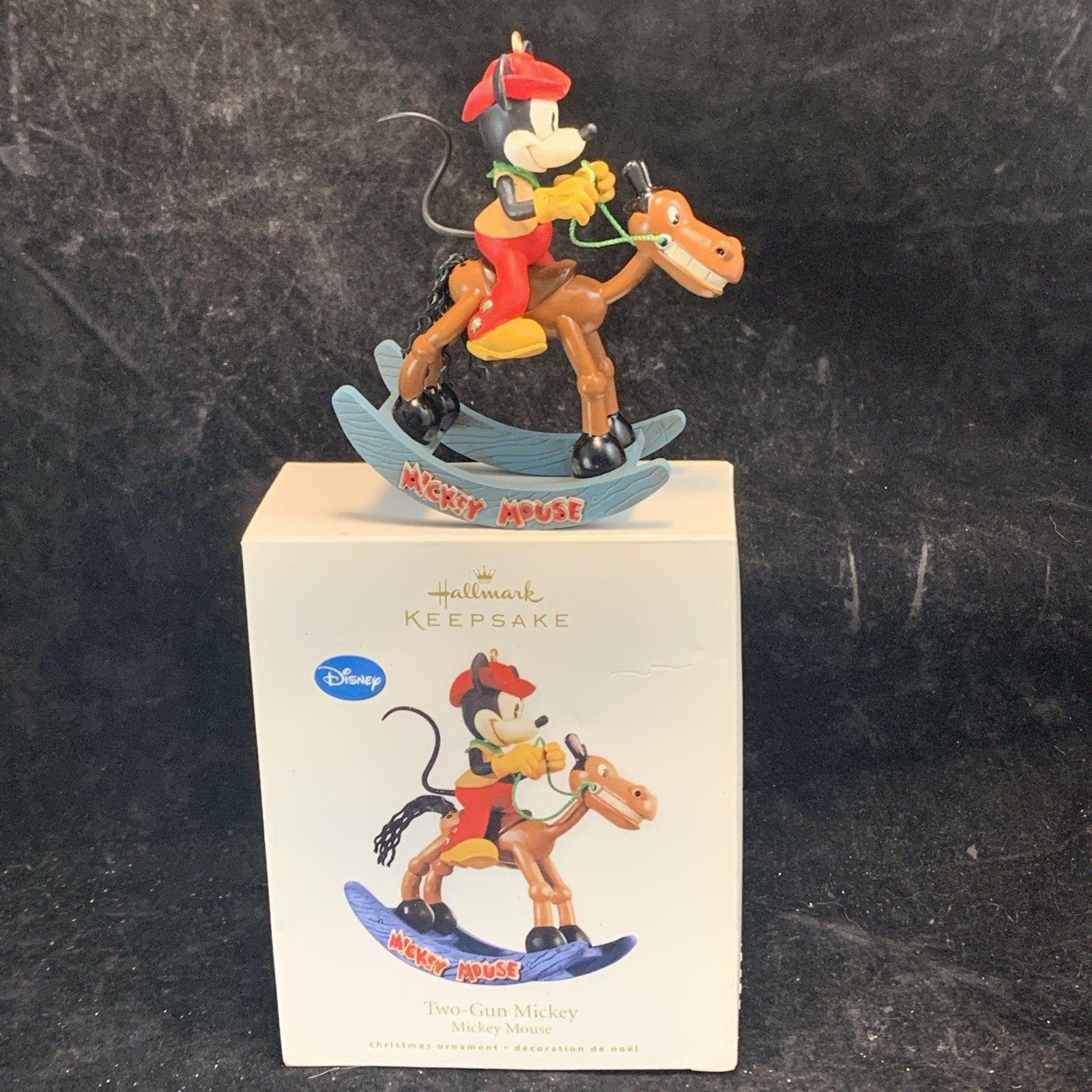 This two-gun Mickey Hallmark ornament is a throwback to the 1934 cartoon of Mickey Mouse as a cowboy riding a rocking horse, and is part of the hero sets.