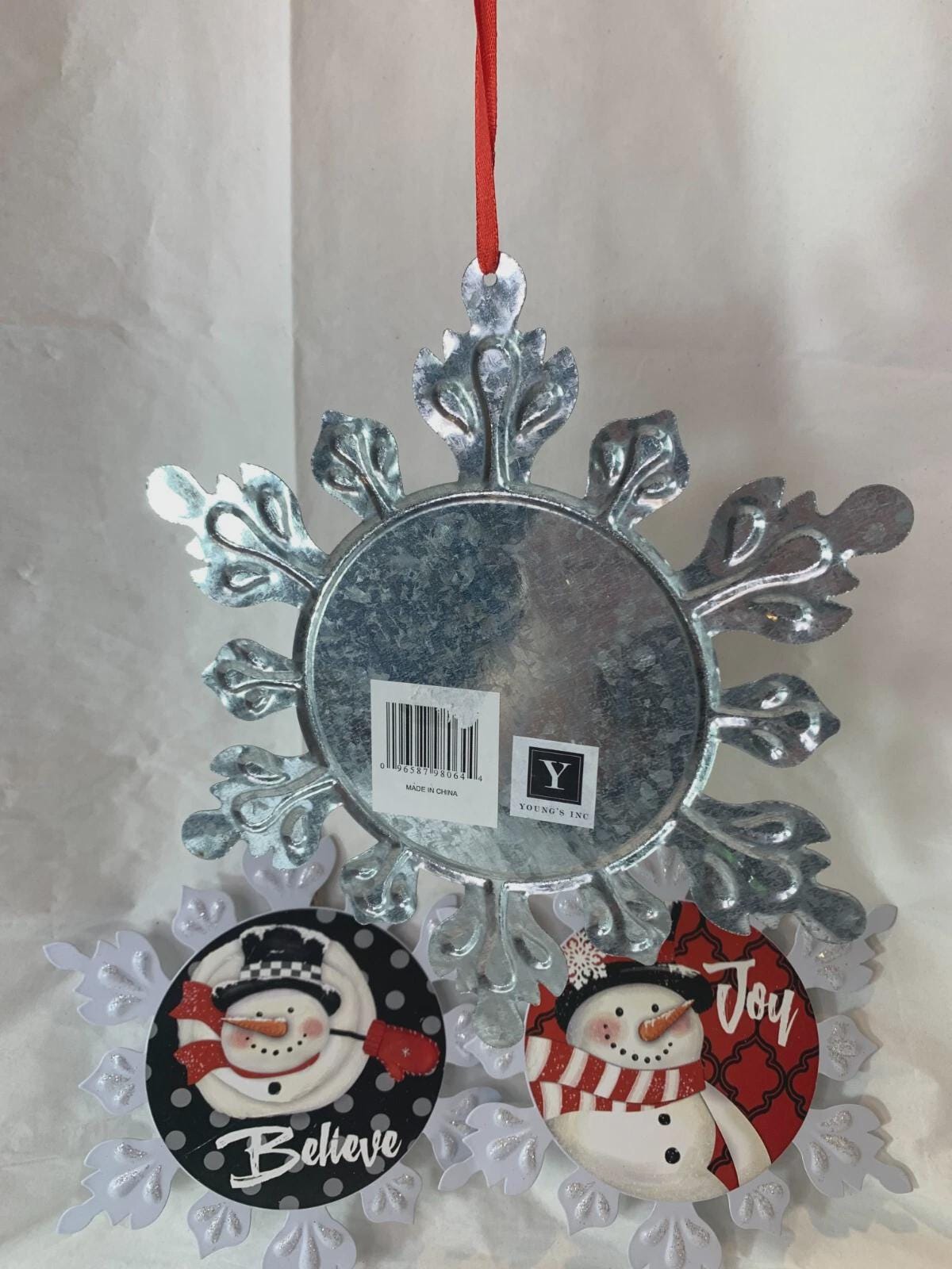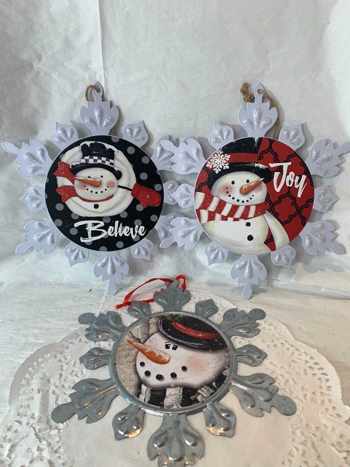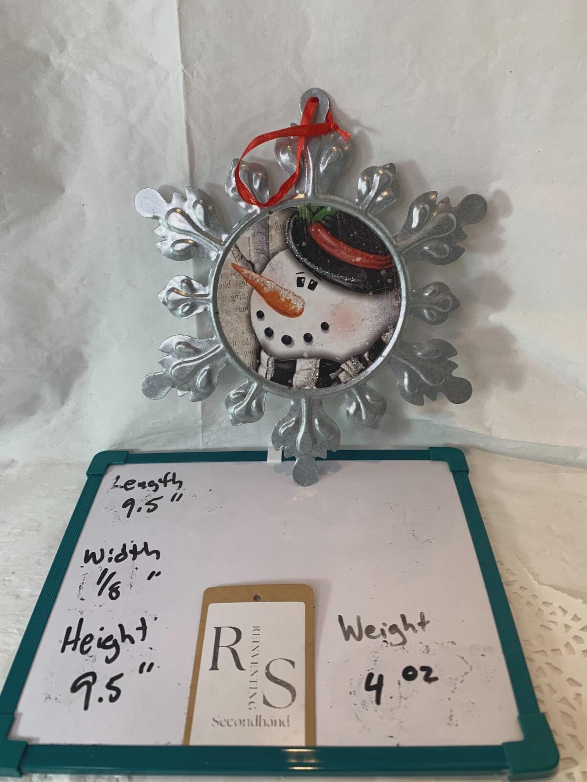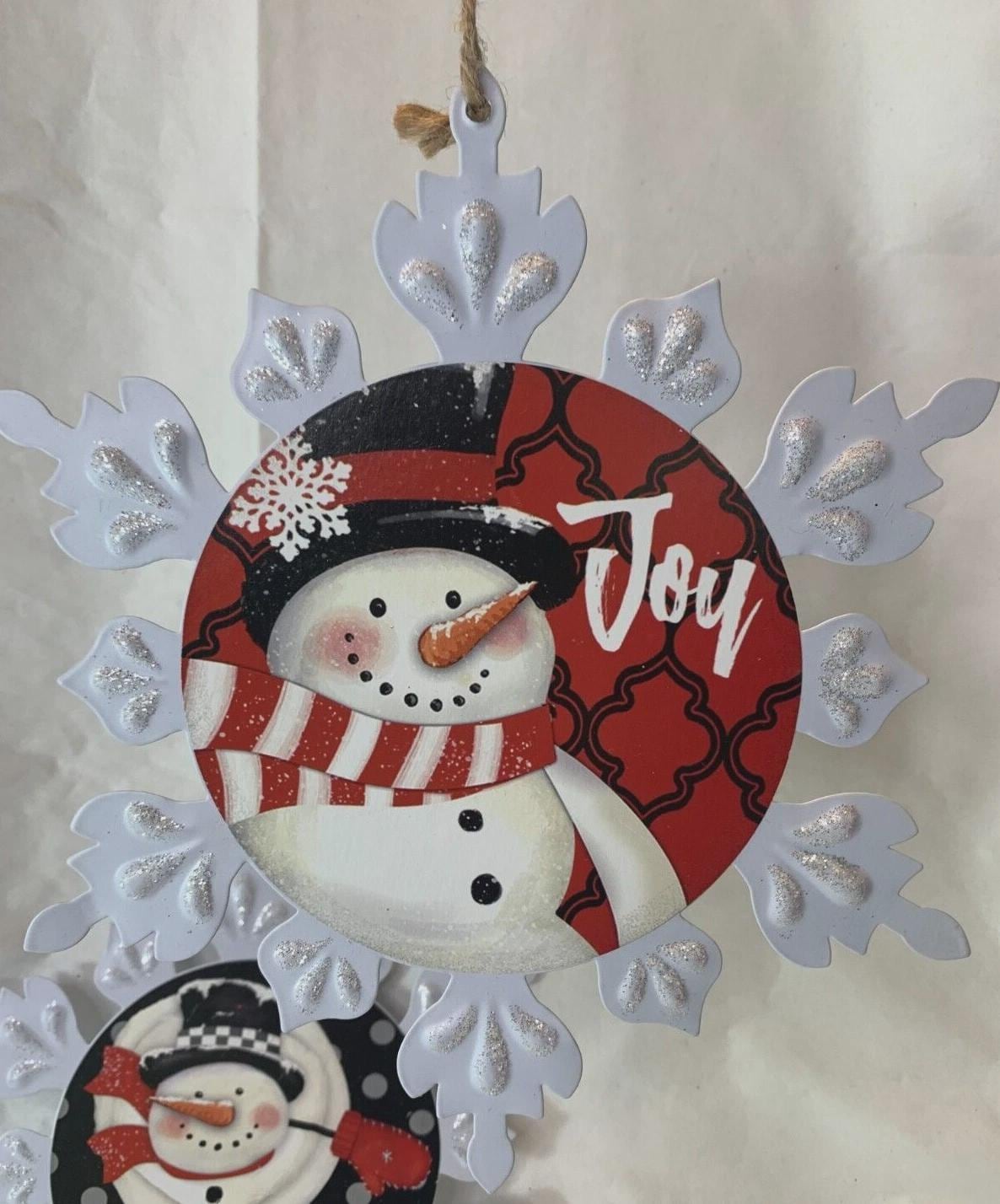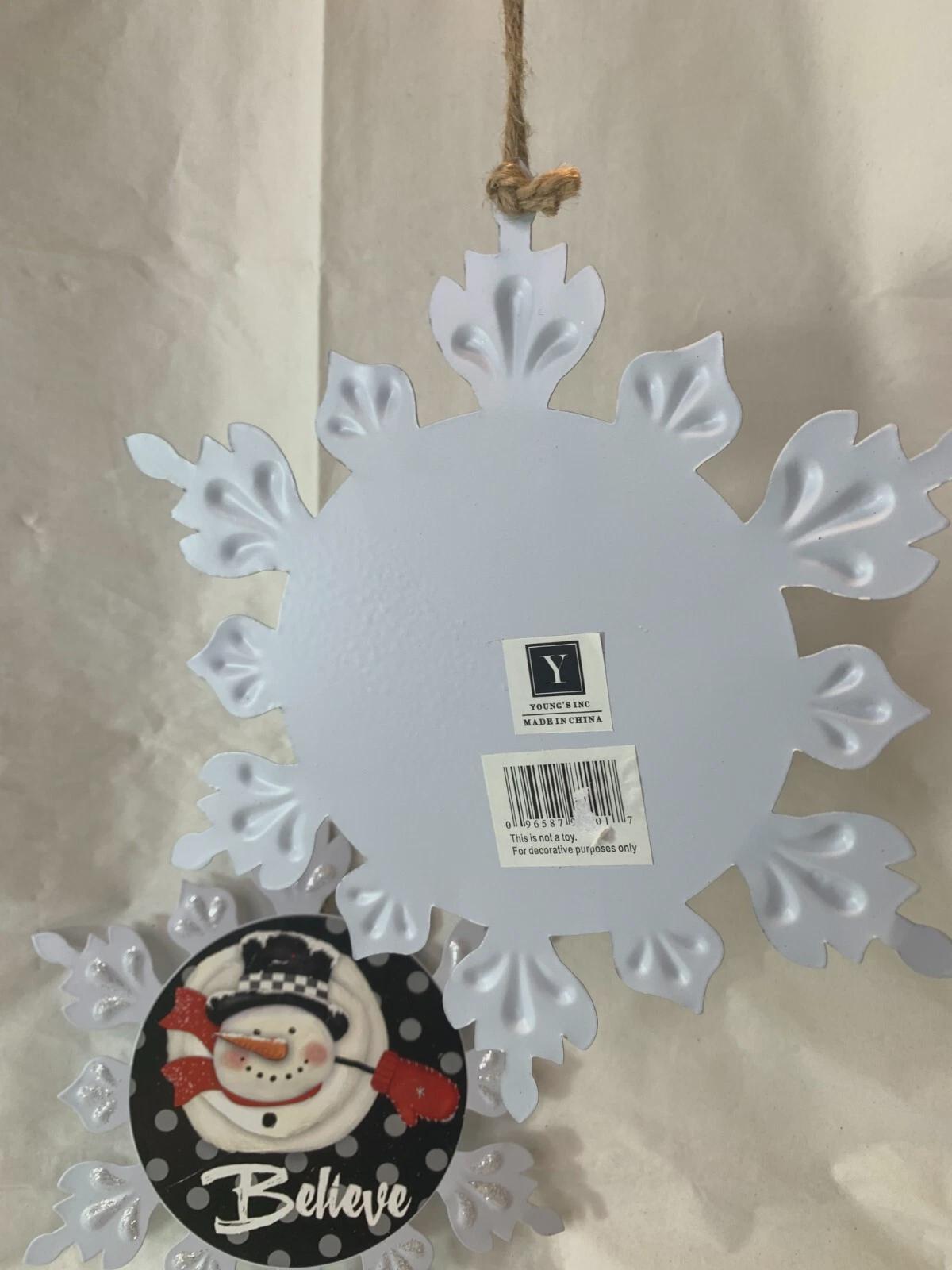 Metal Snow Flake Snowman Christmas Ornament Decorations 9.5" New By Youngs