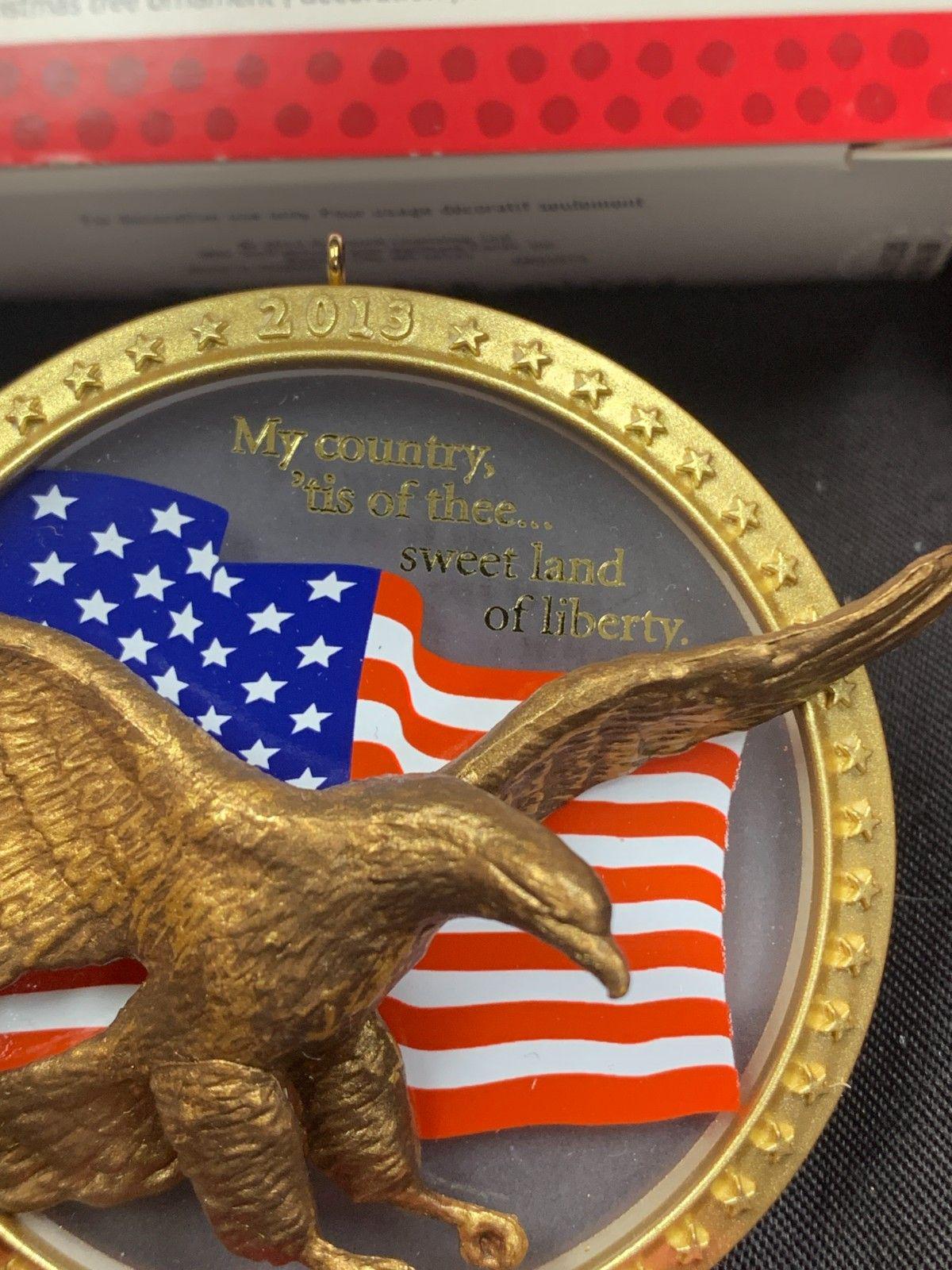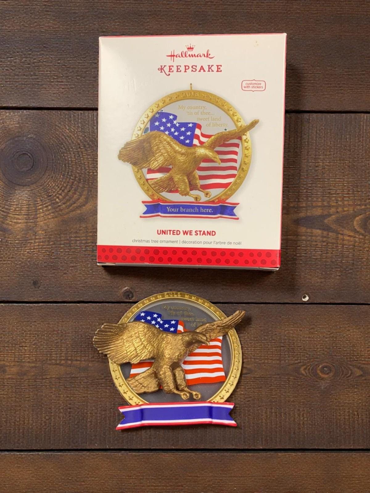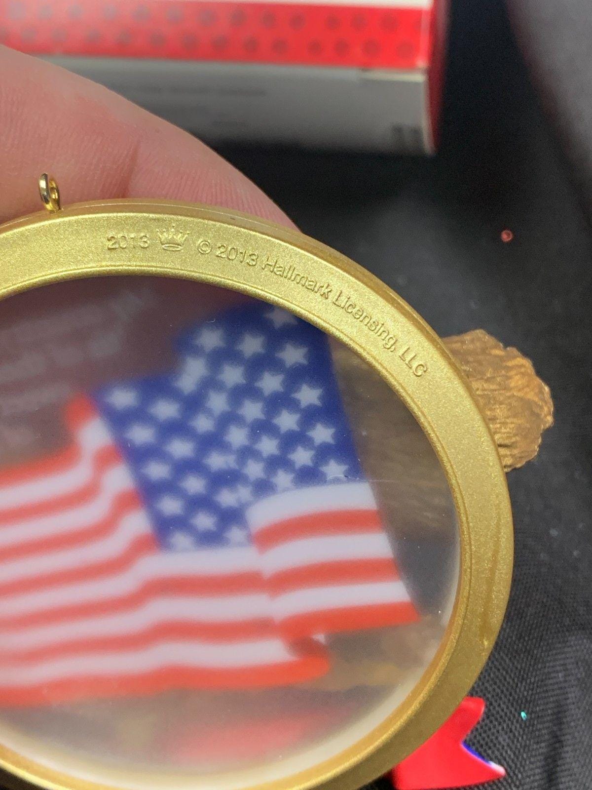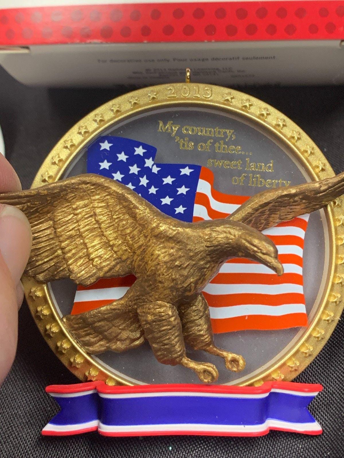 * Features a golden eagle with an American flag background within a gold ring.