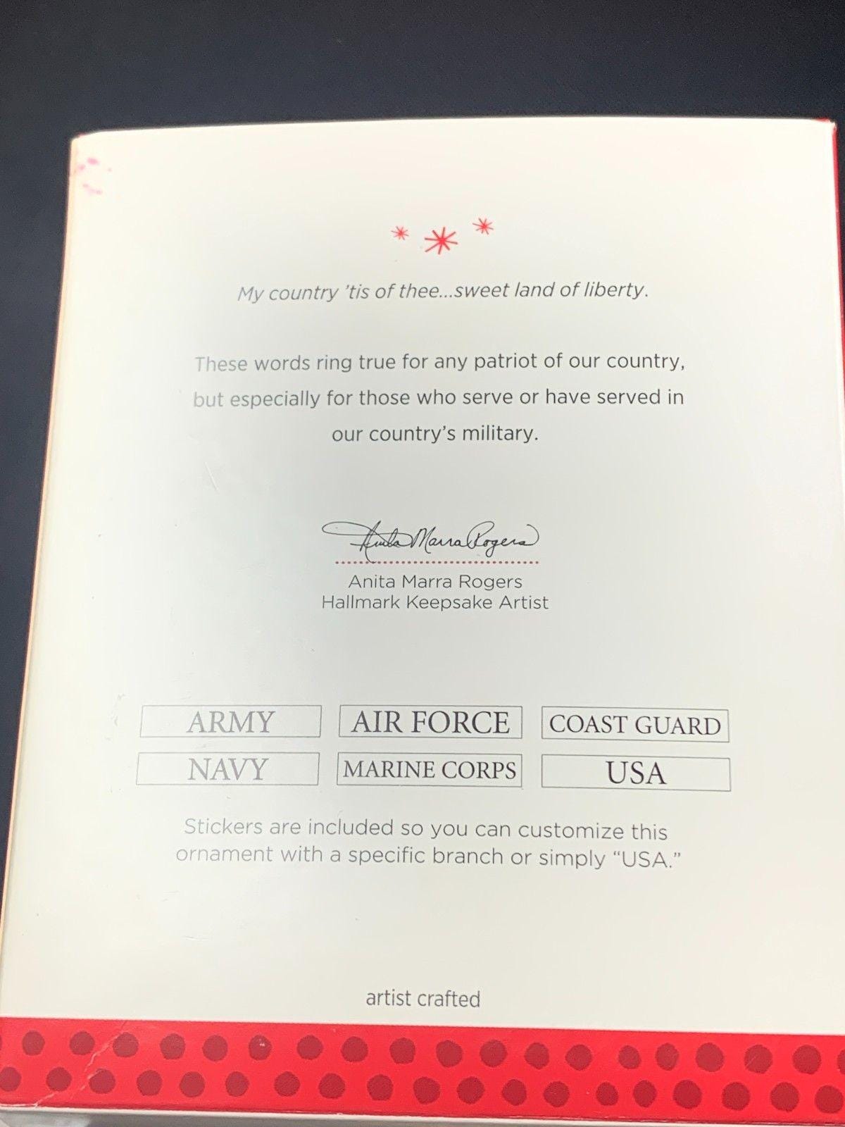 * Customization: The ornament can be customized with "USA" or a specific military branch (Army, Navy, Air Force, Marine Corps, Coast Guard (not provided in our shop).