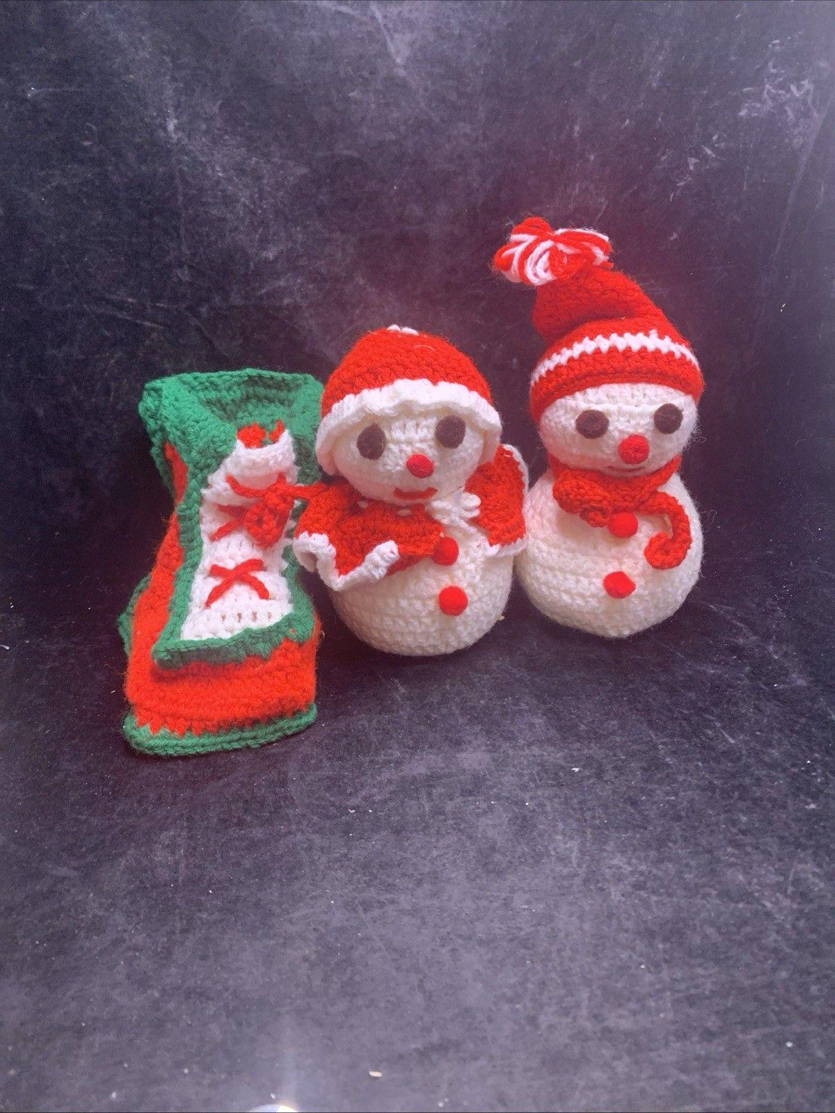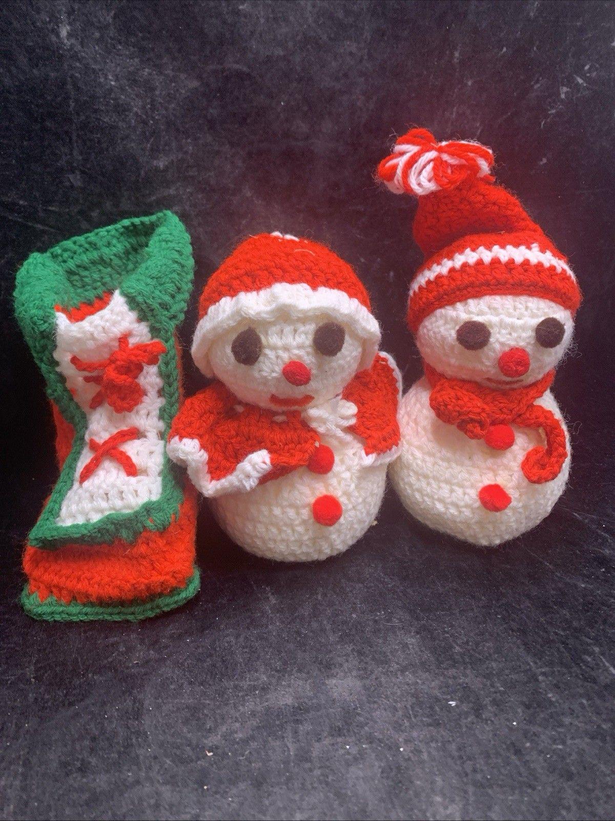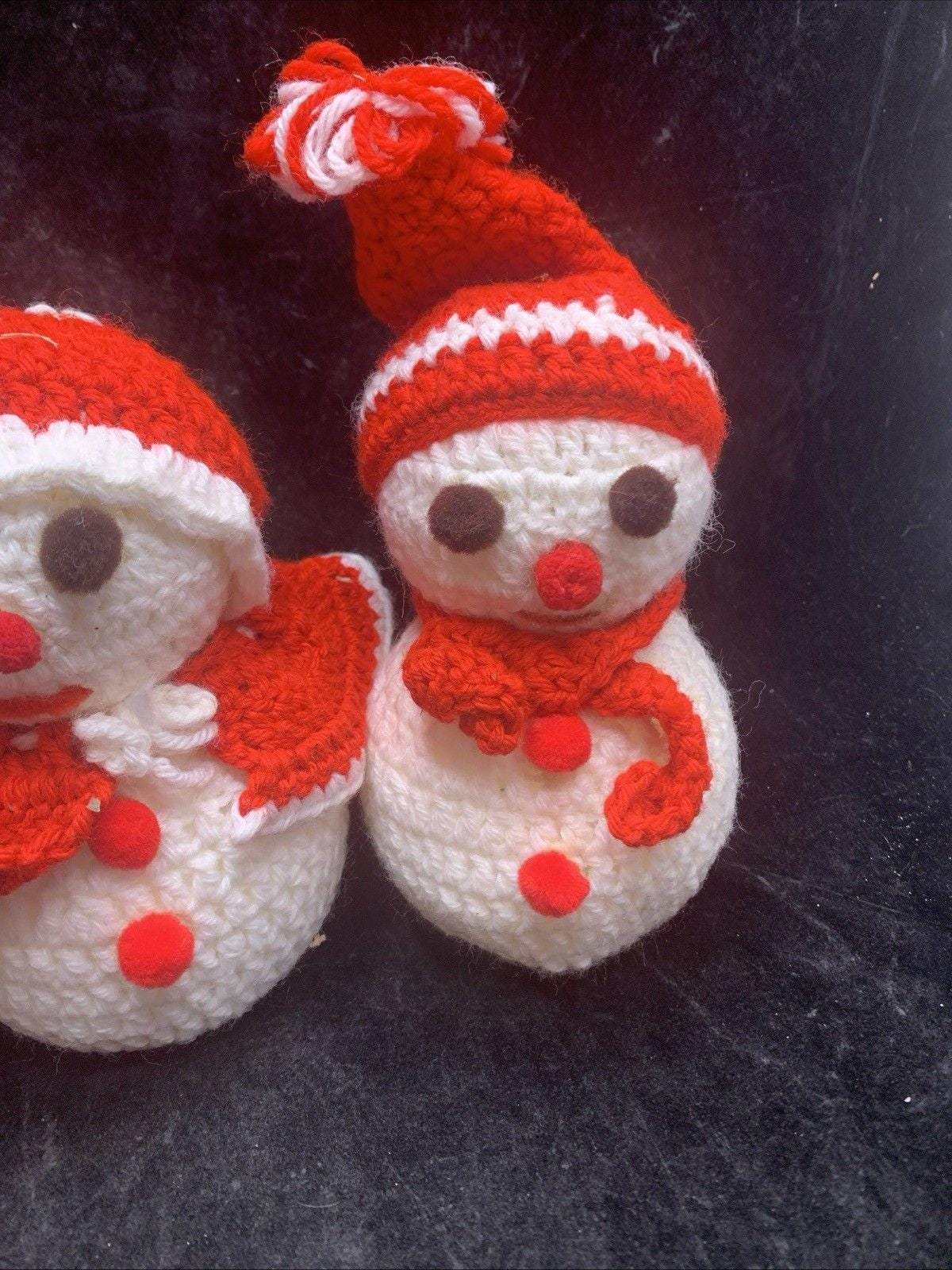 Measurements: Snowman 8" x 5" x 5"Ssnowwoman 6" x 5" x 5" Stocking 6" x 5" x 3"