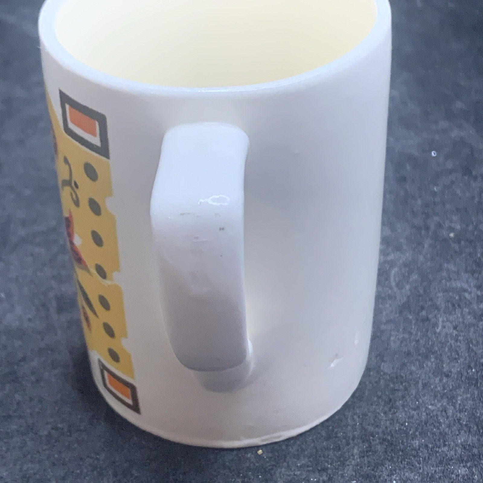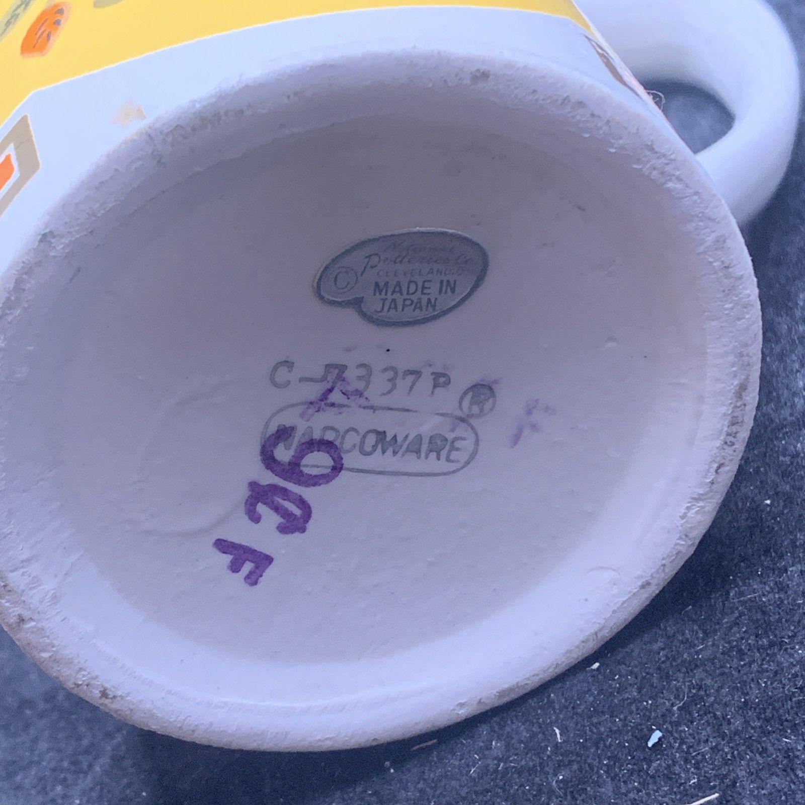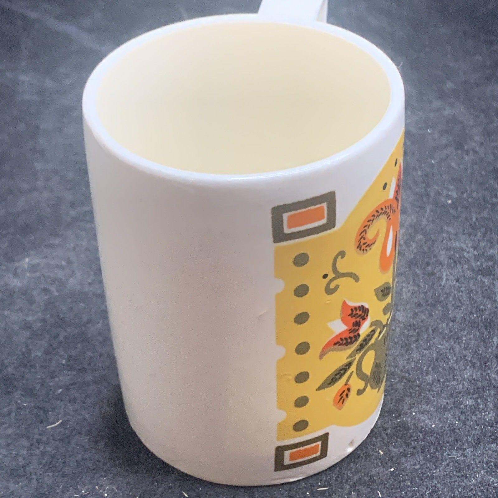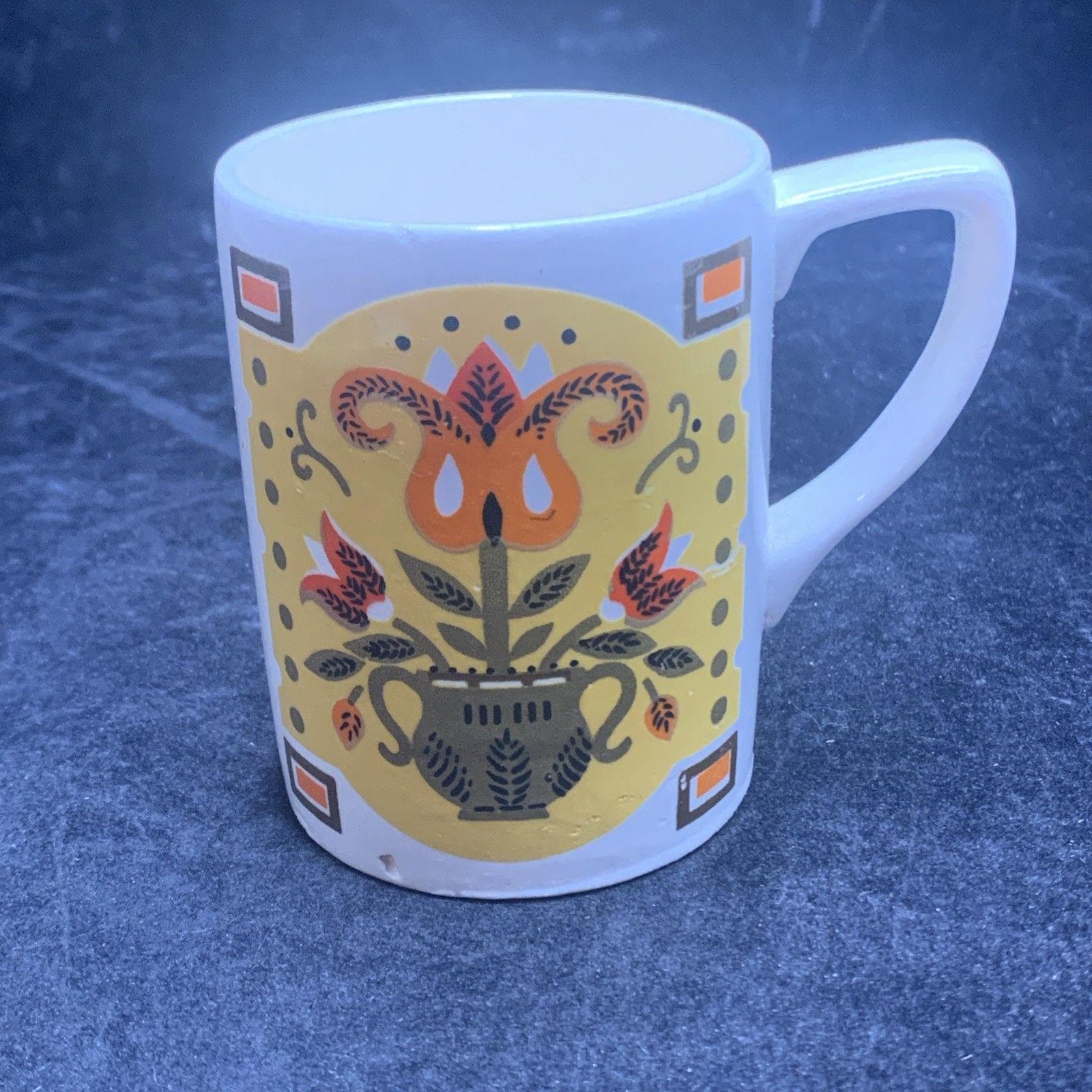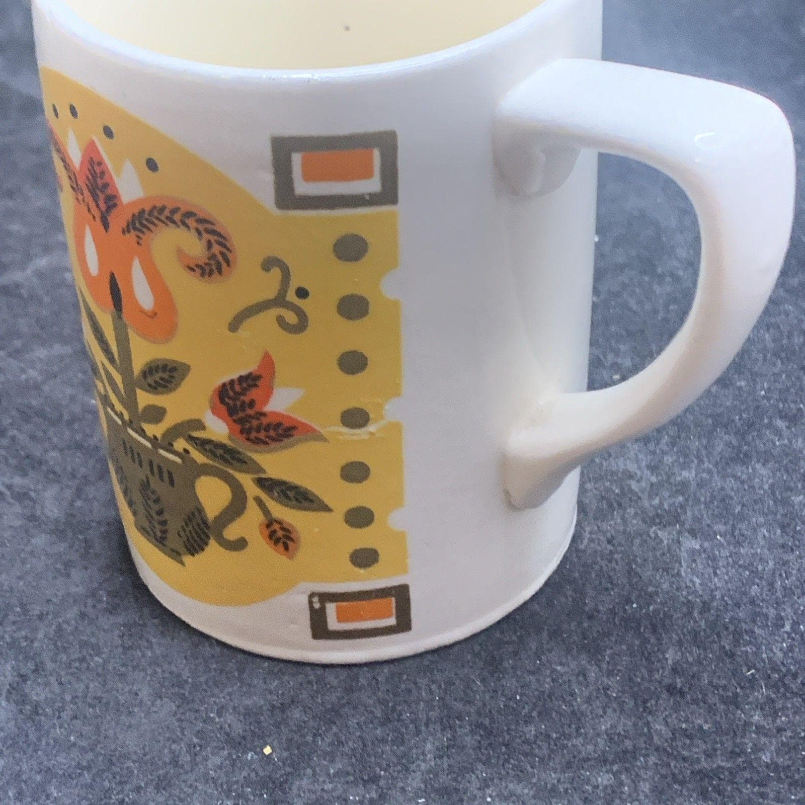 Made of ceramic, this round mug has a unique vintage appeal and is a perfect addition to any collection. Hand-wash only to maintain its beauty, this unisex coffee mug is a timeless 1960s treasure, crafted in Japan by Napco.