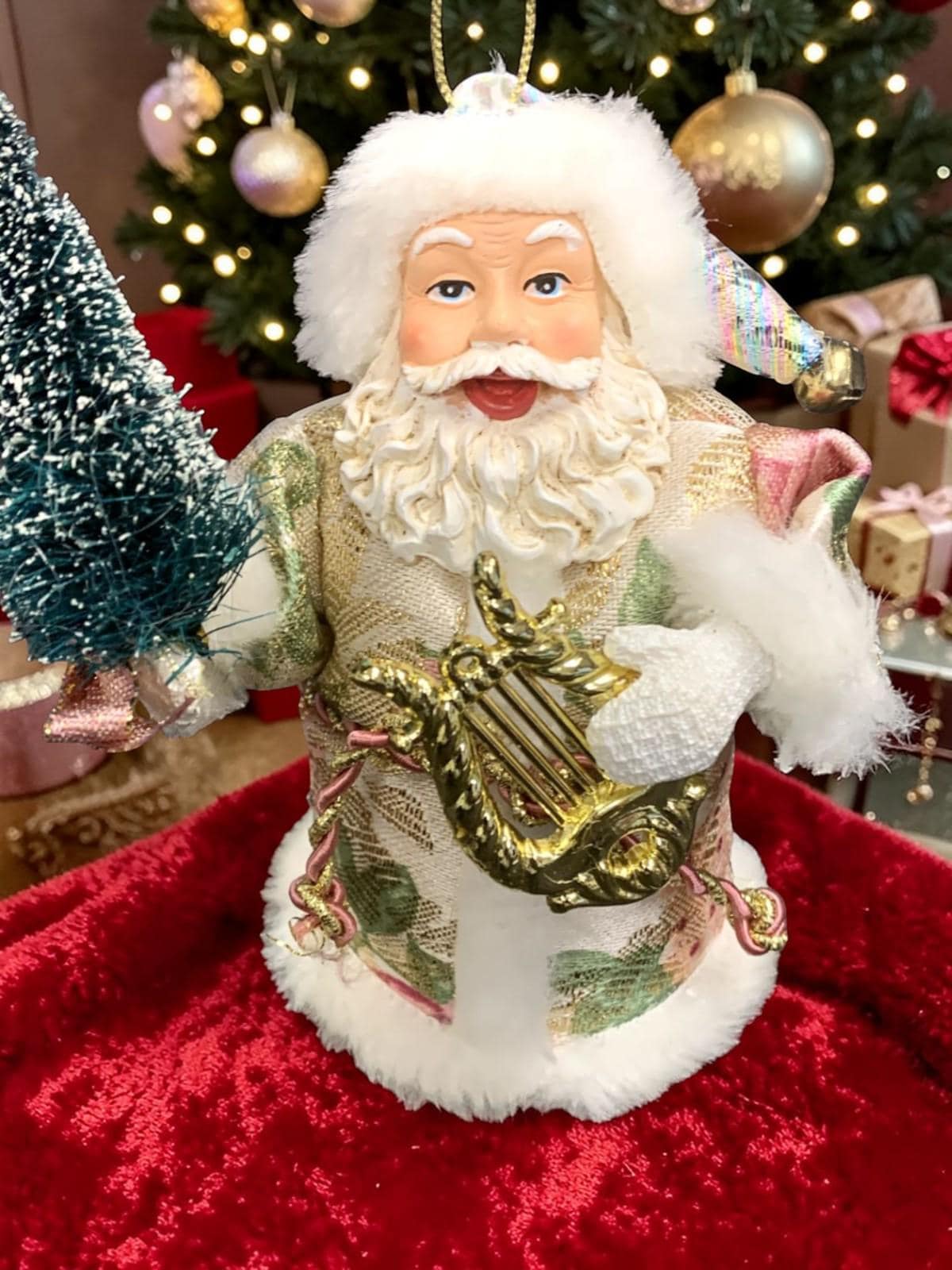 Father Christmas, with a harp and a bottlebrush tree!